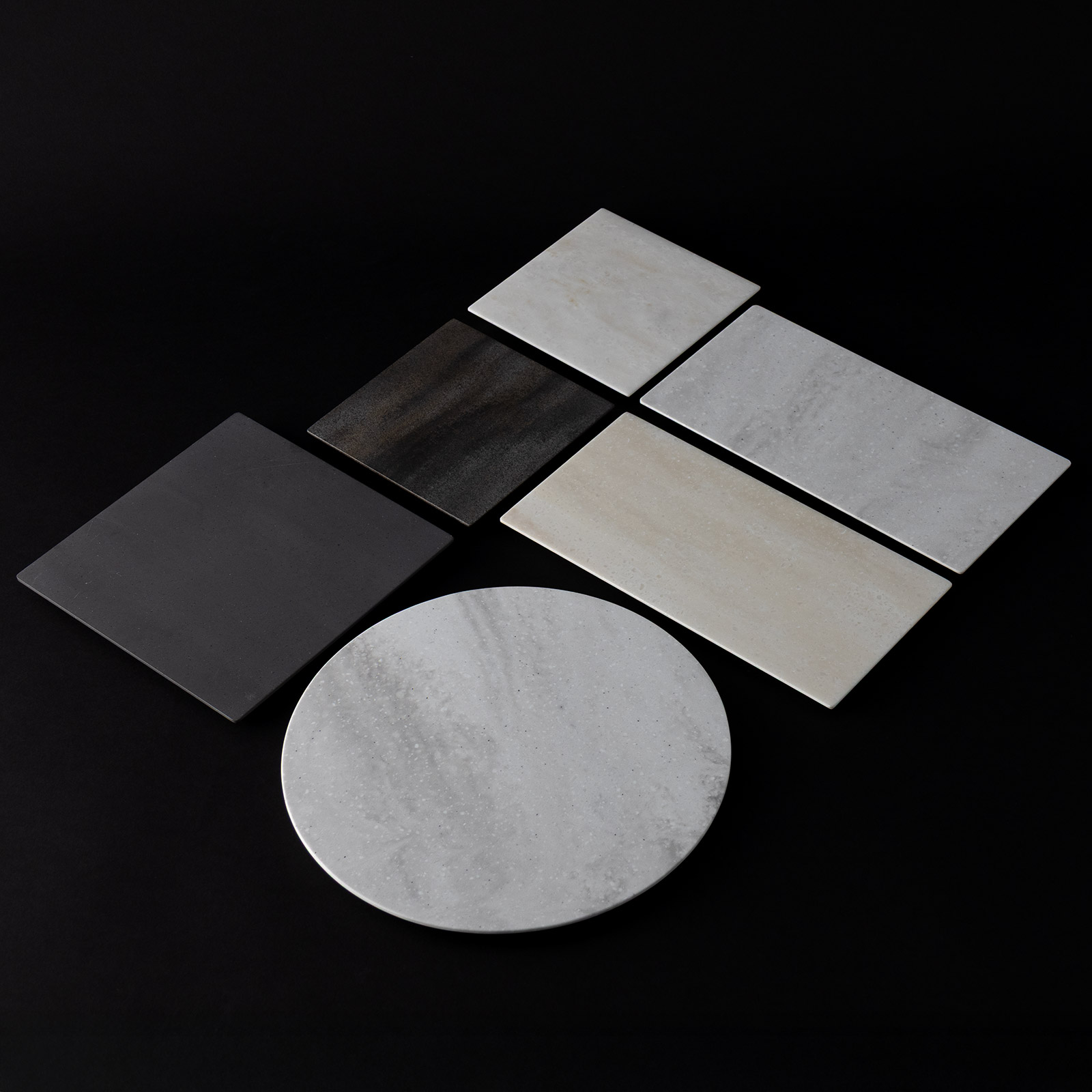 人工大理石長方形皿 白&グレー 24cm