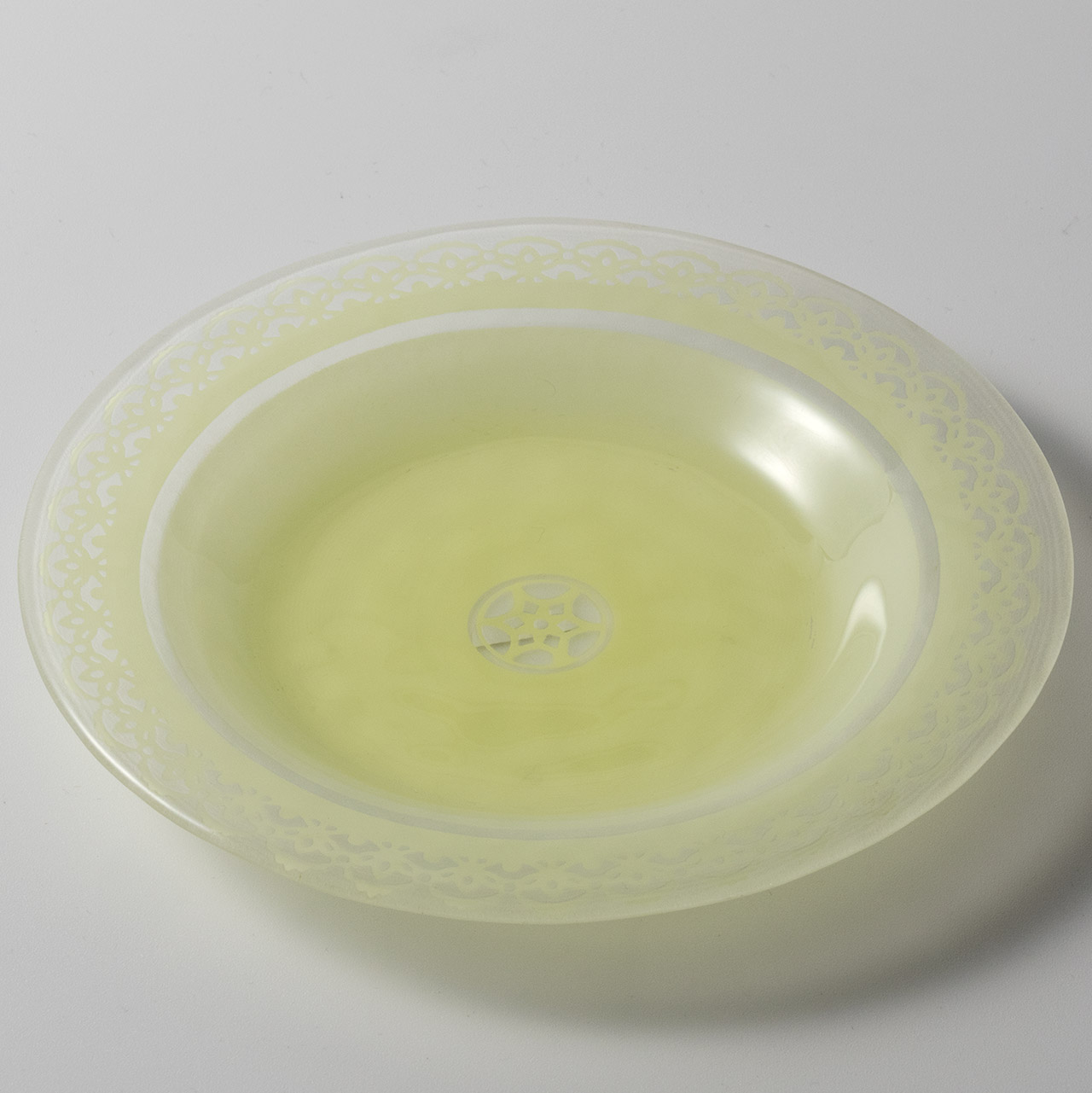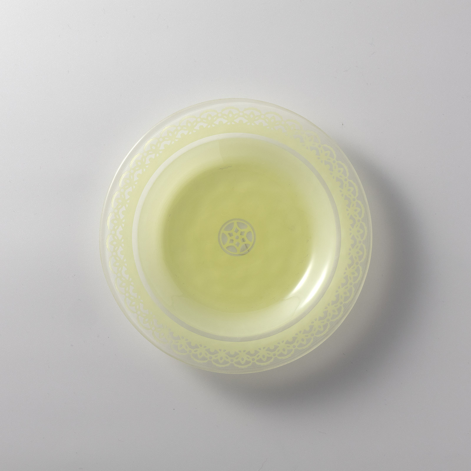 ガラス皿 黄色レース模様