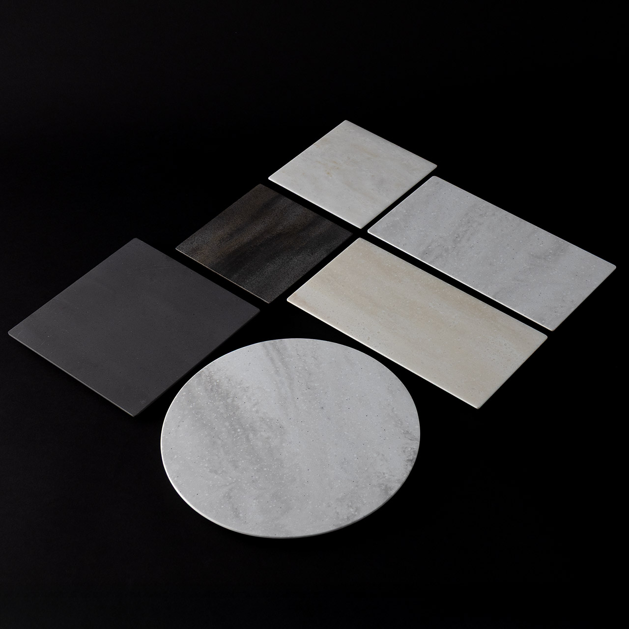 人工大理石ラウンド皿 白&グレー 24cm
