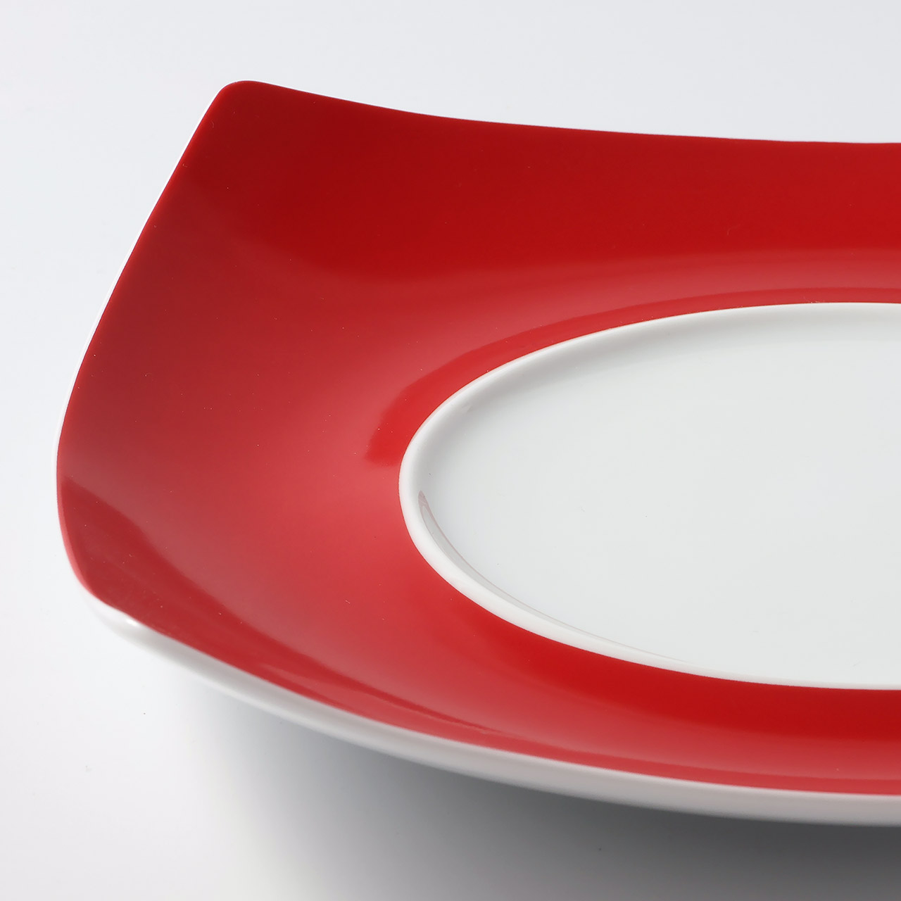 スクエア皿赤 センター白丸 Motenashi(大)