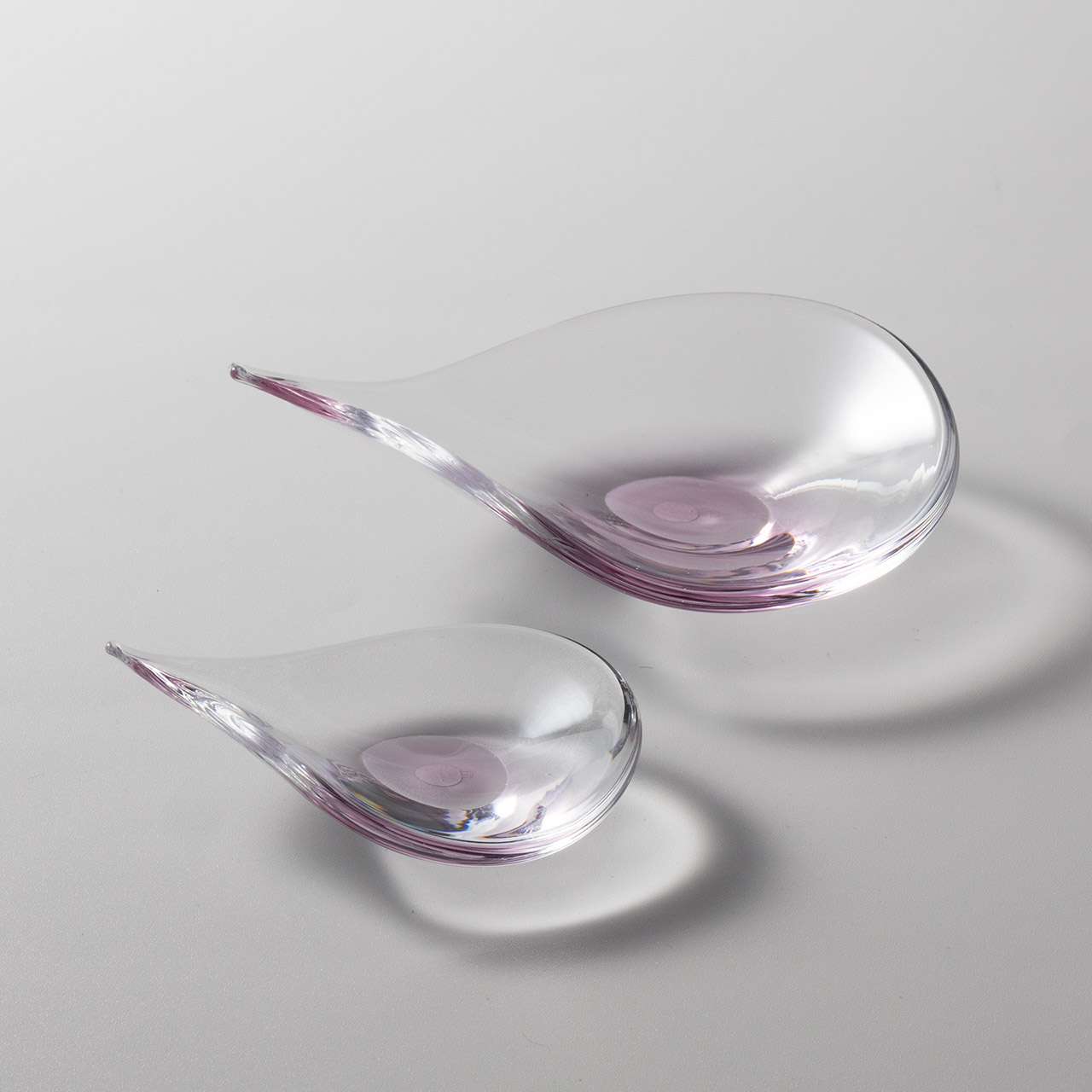 ガラス しずく型小皿ピンク M
