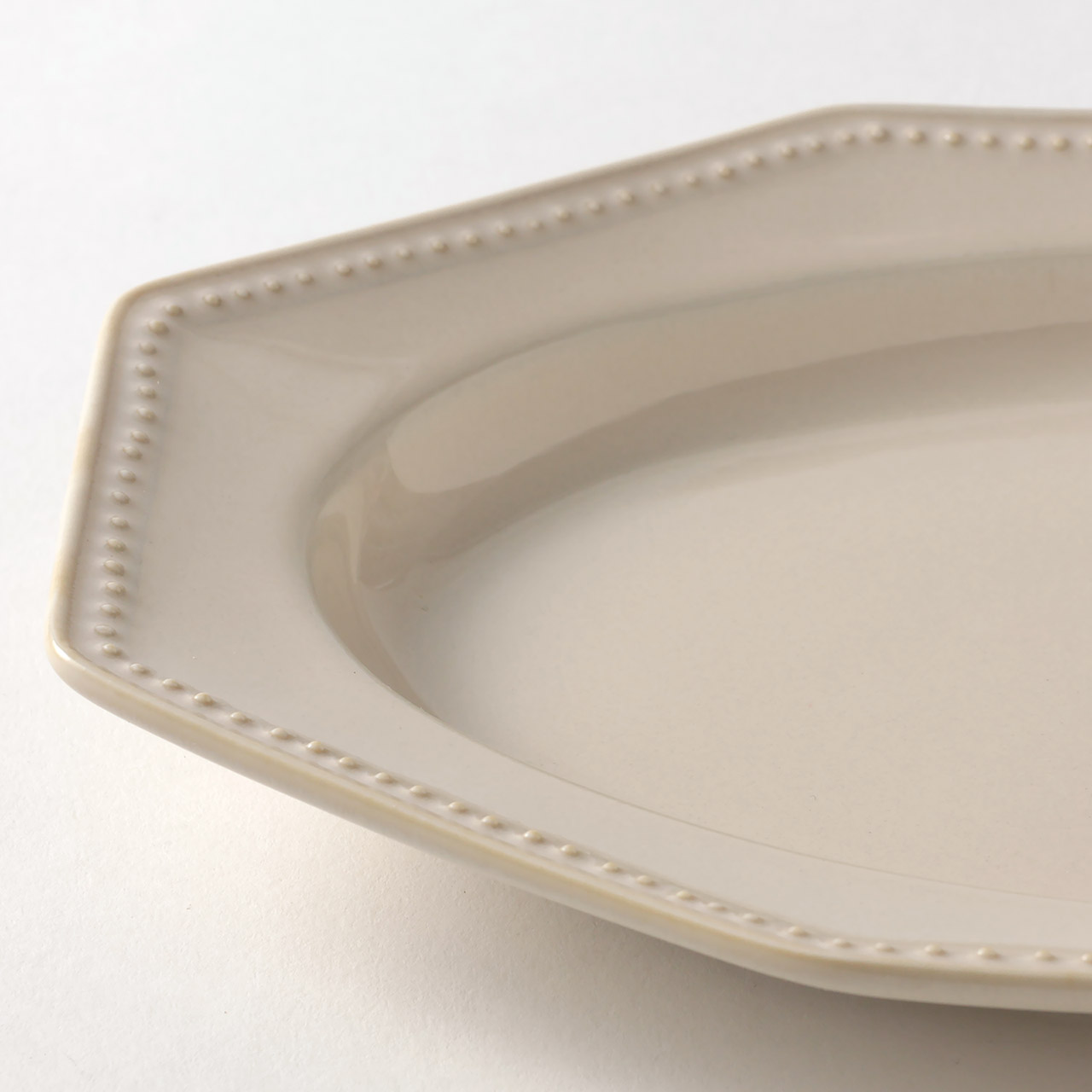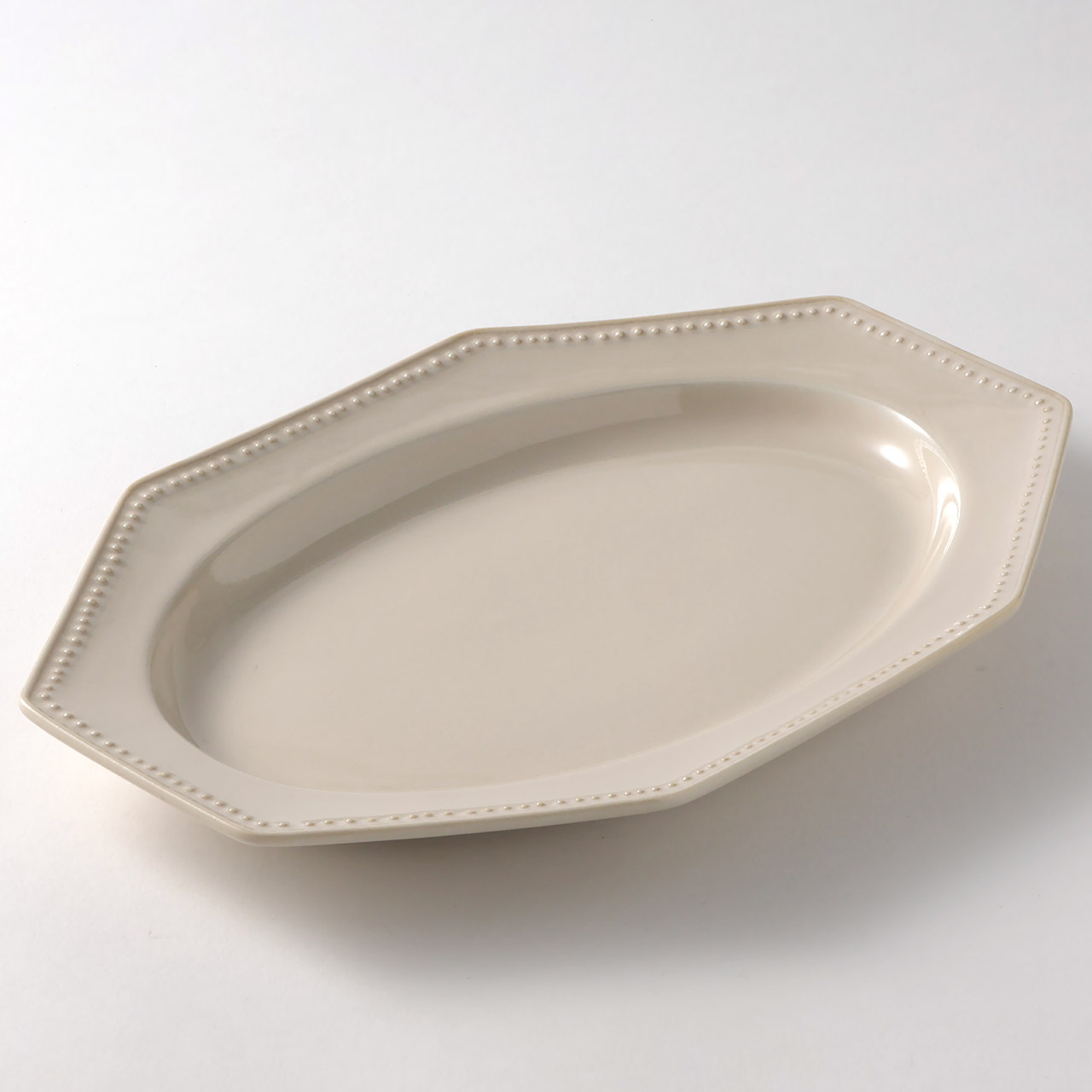 リムプチドット八角長プレート 27cmベージュ