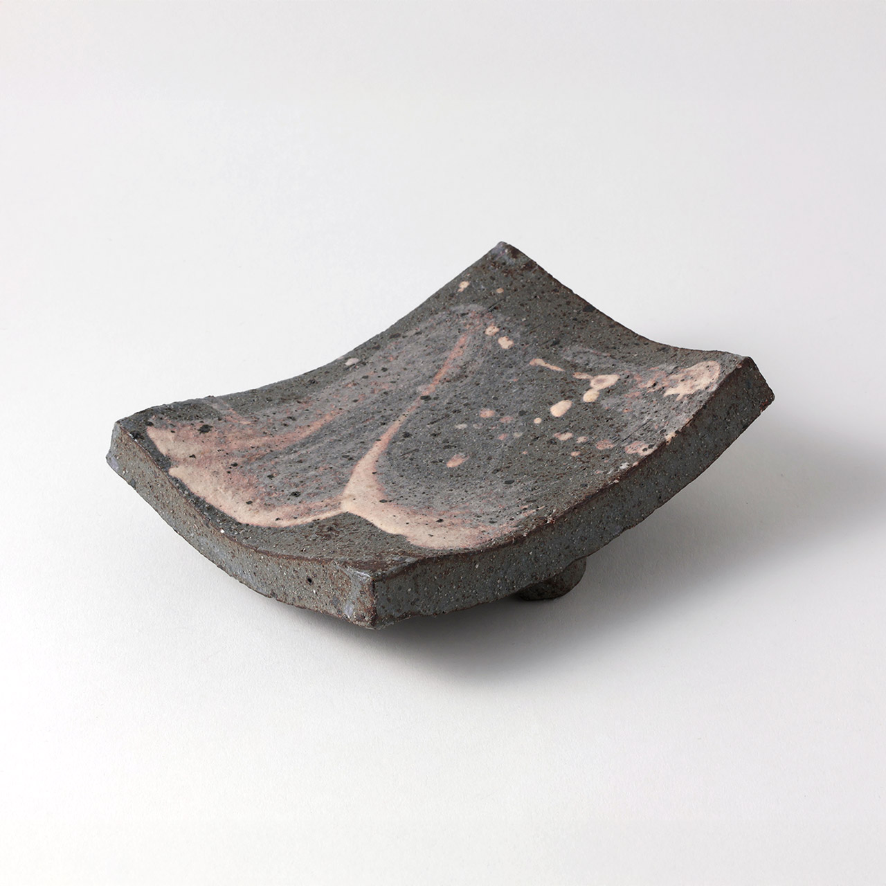 信楽焼 長皿瓦脚付き グレー