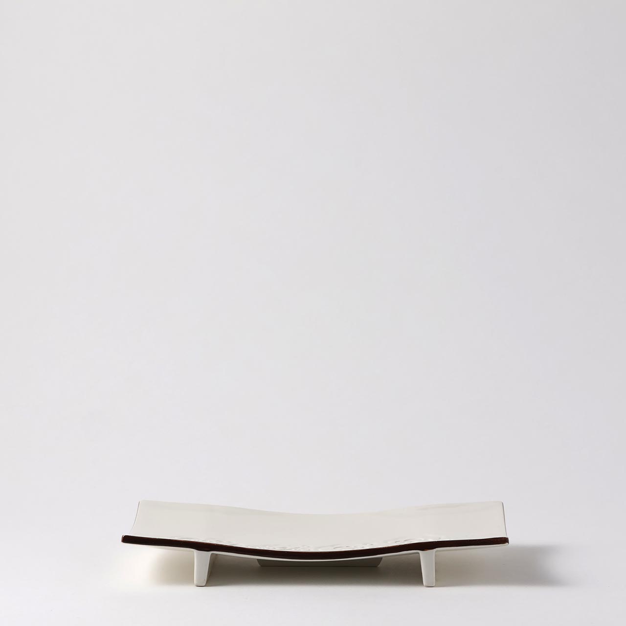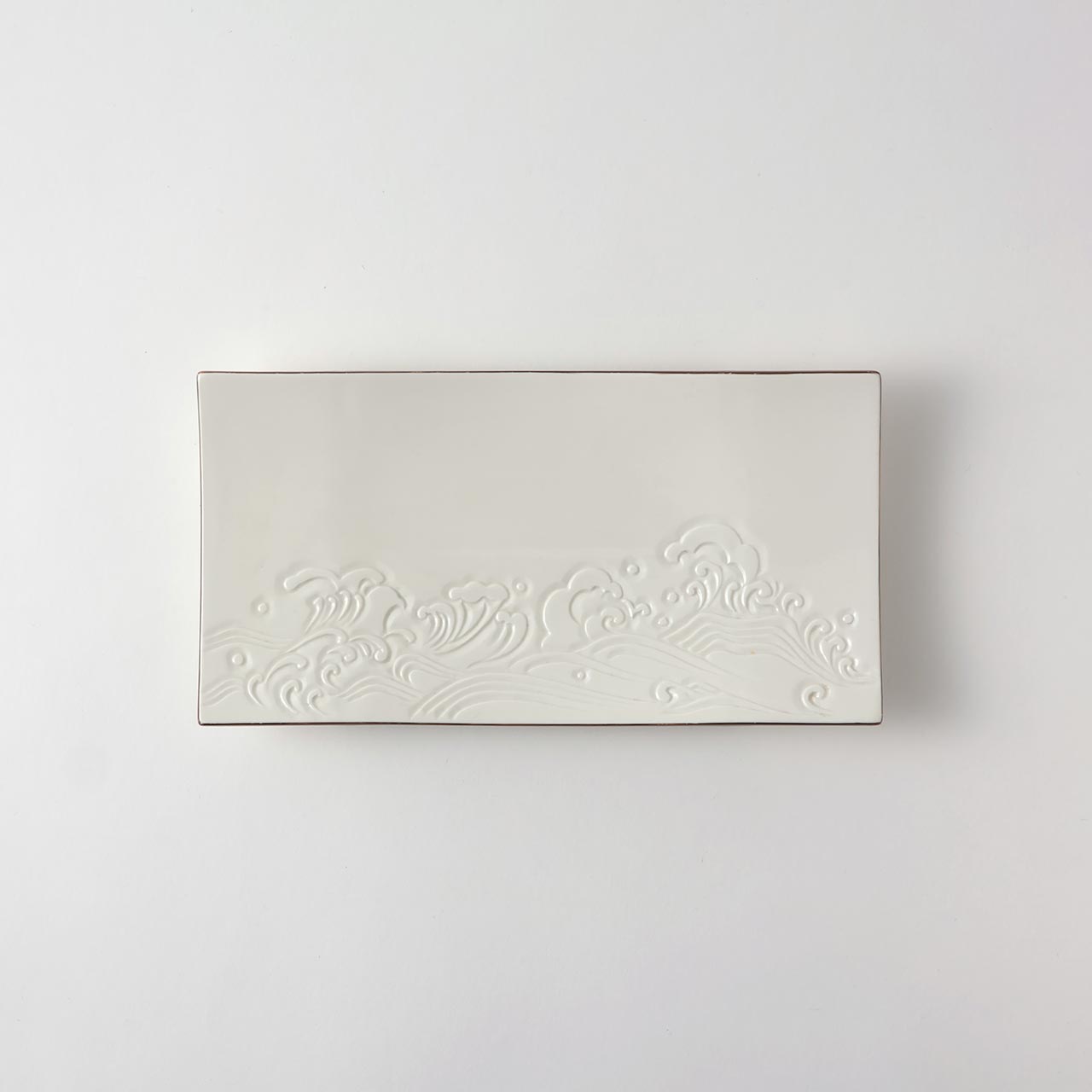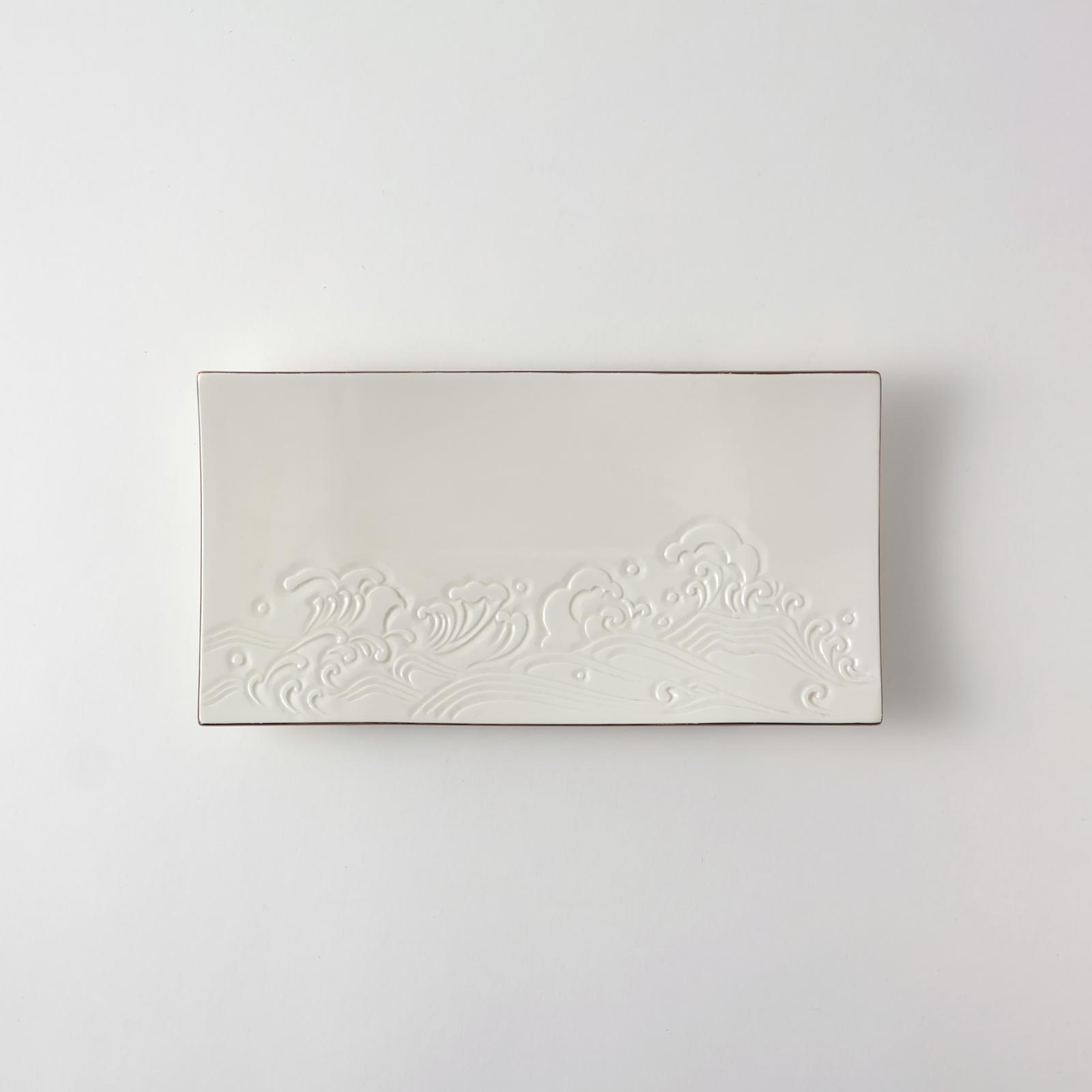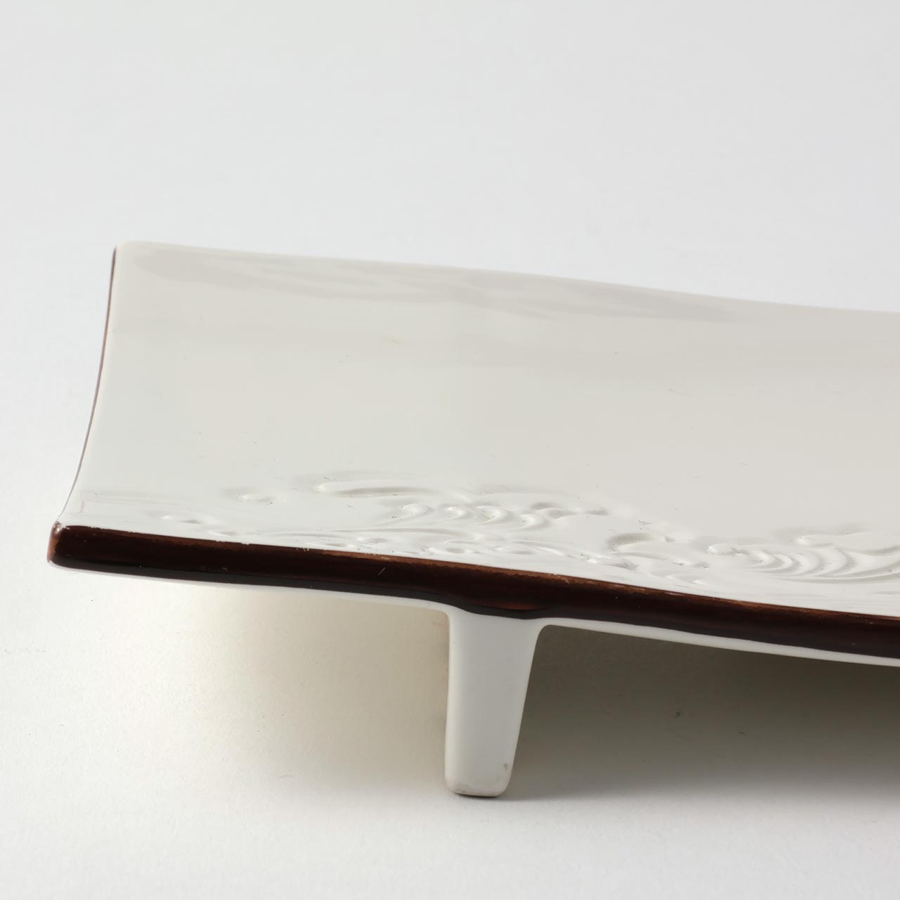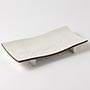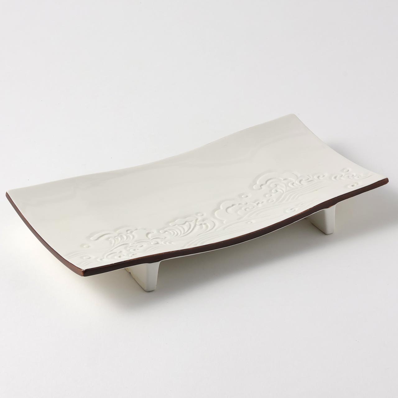 足付波彫長角皿 白
