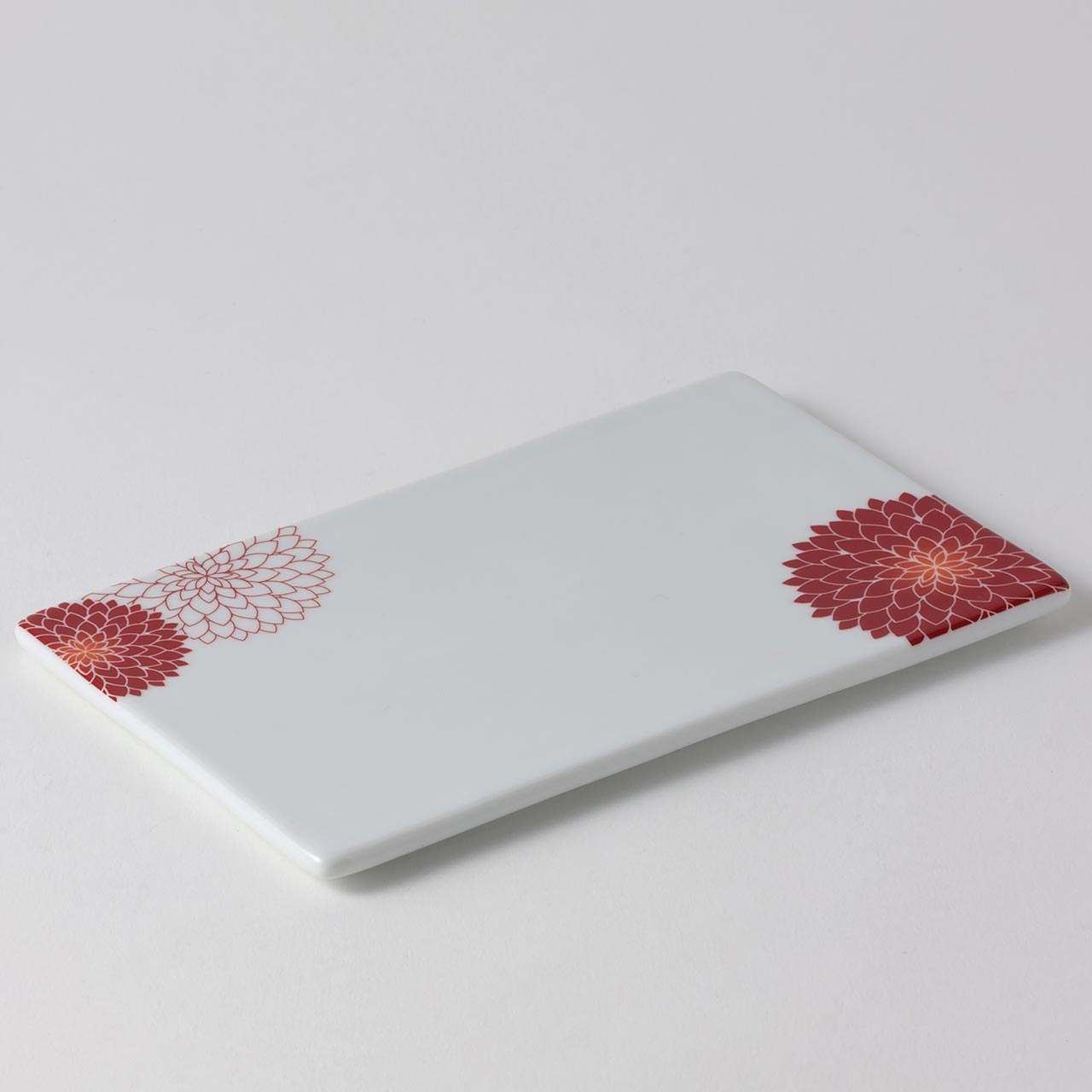 マム 長角皿 白地赤の花 18×11.5