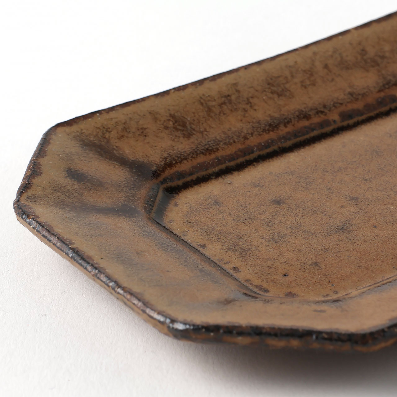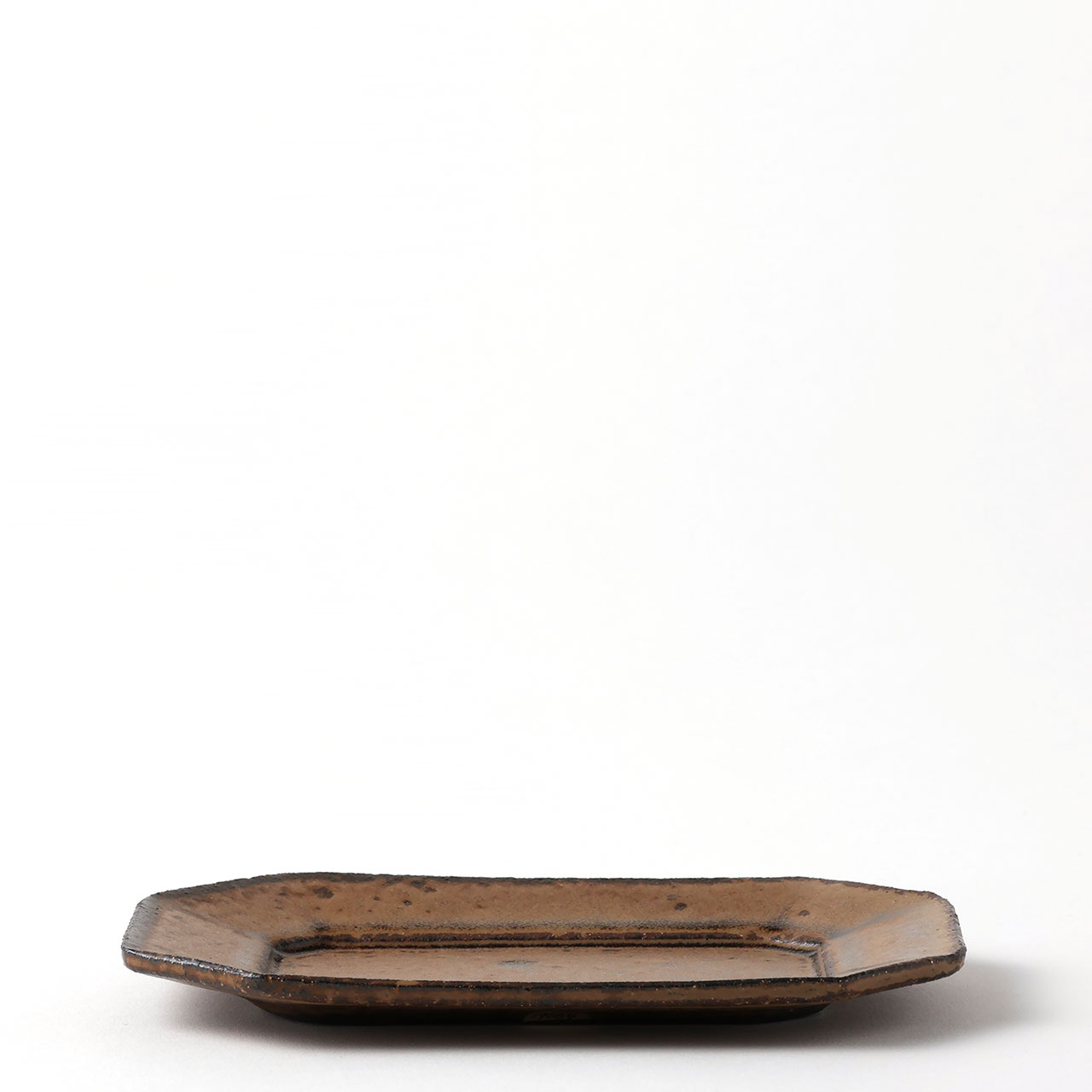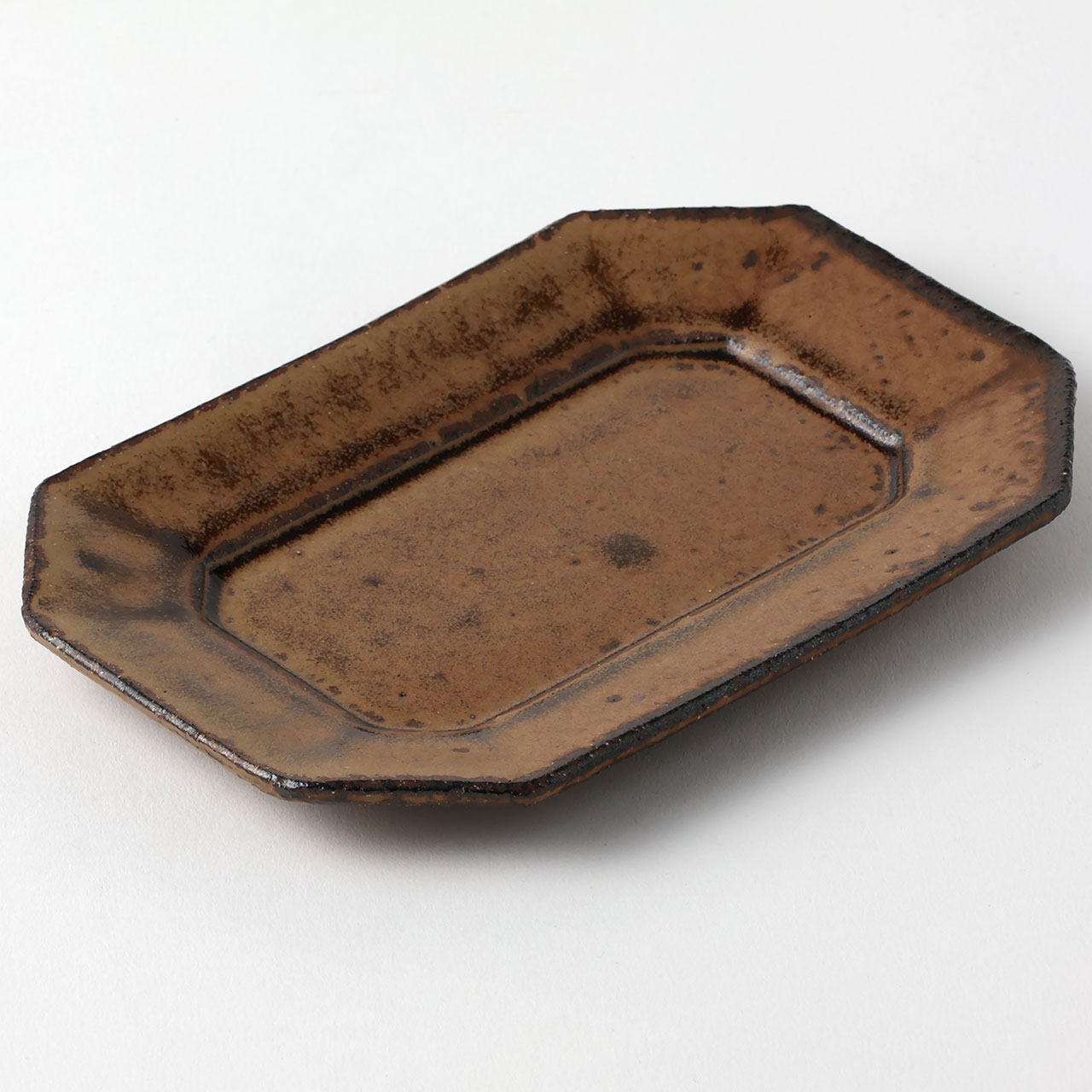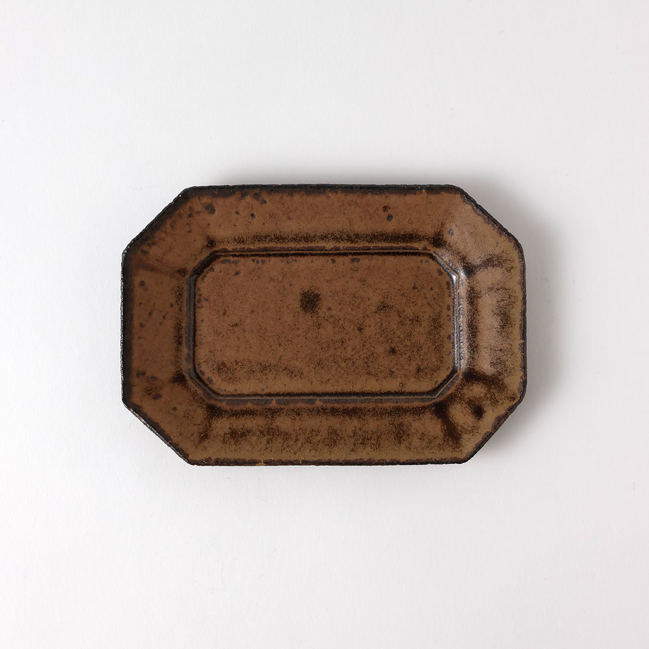 中川紀男 長方形四隅折皿 茶
