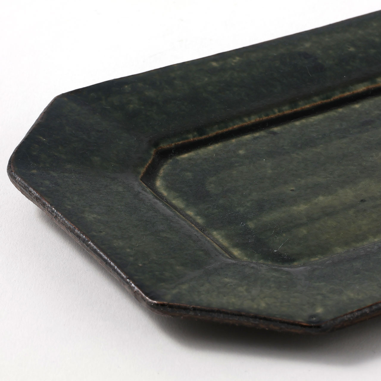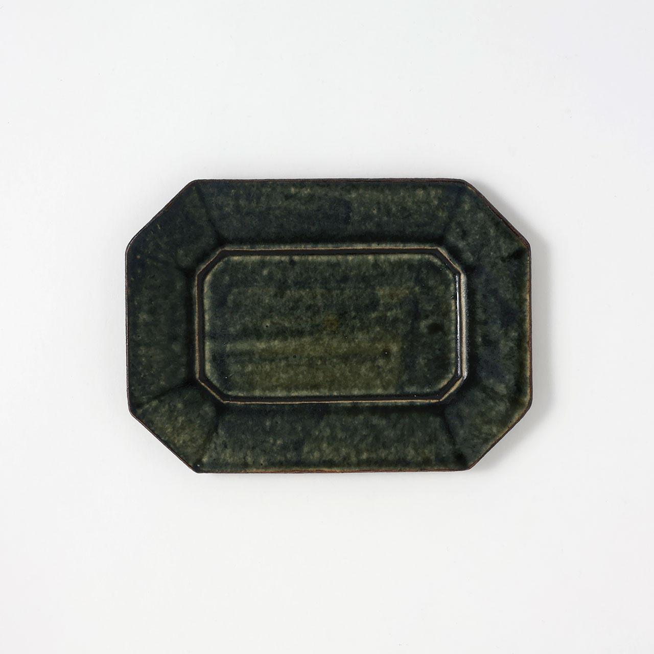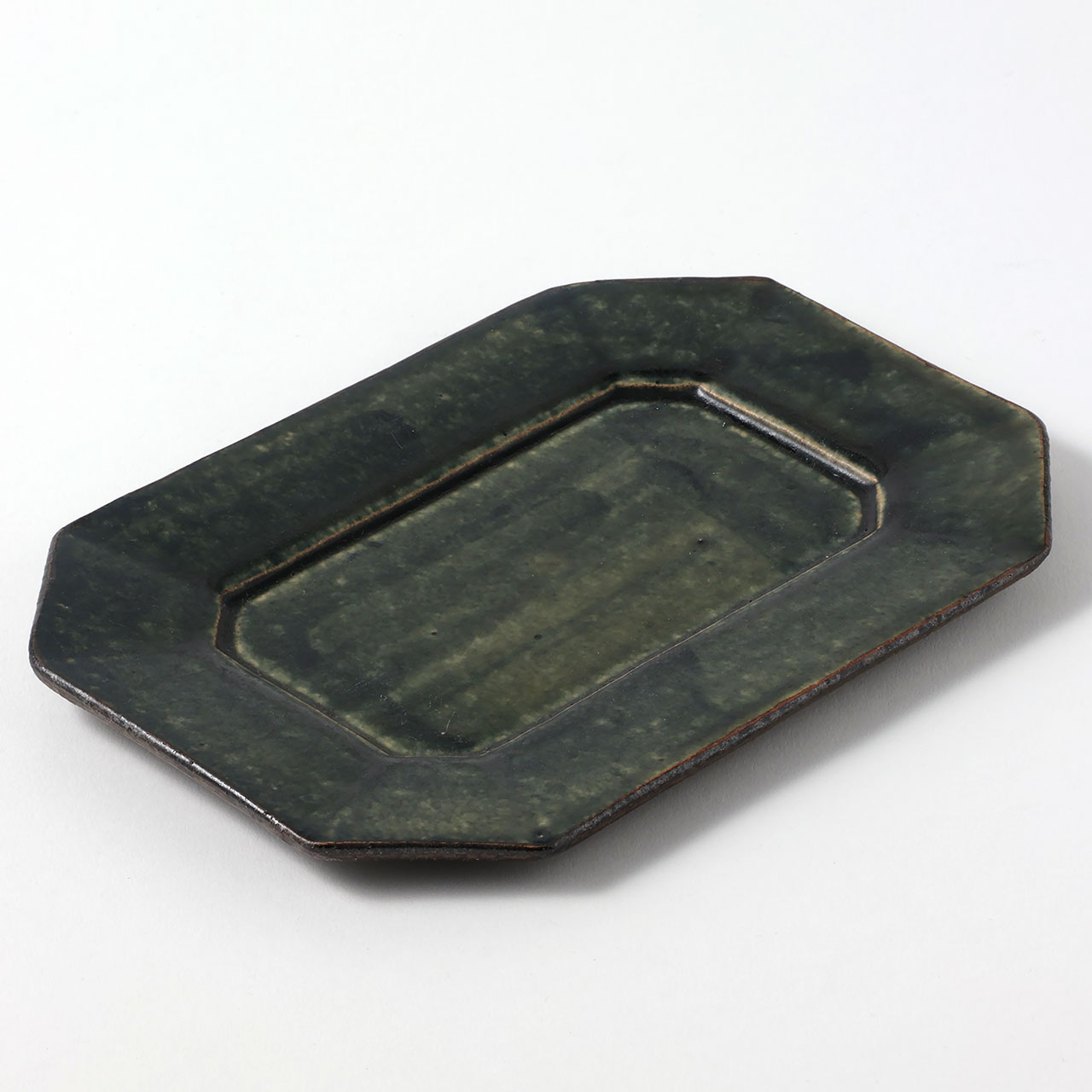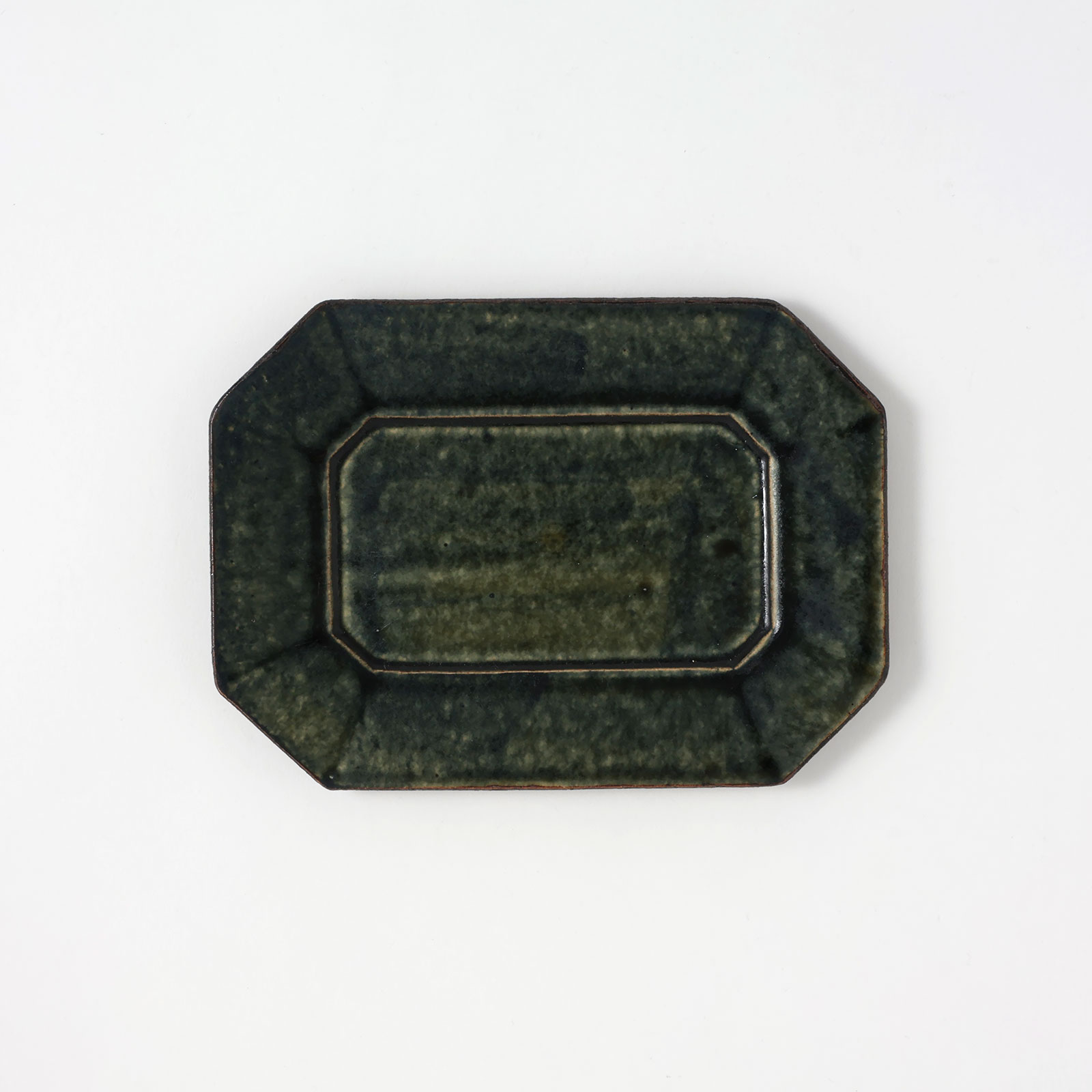 中川紀男 長方形四隅折皿 緑