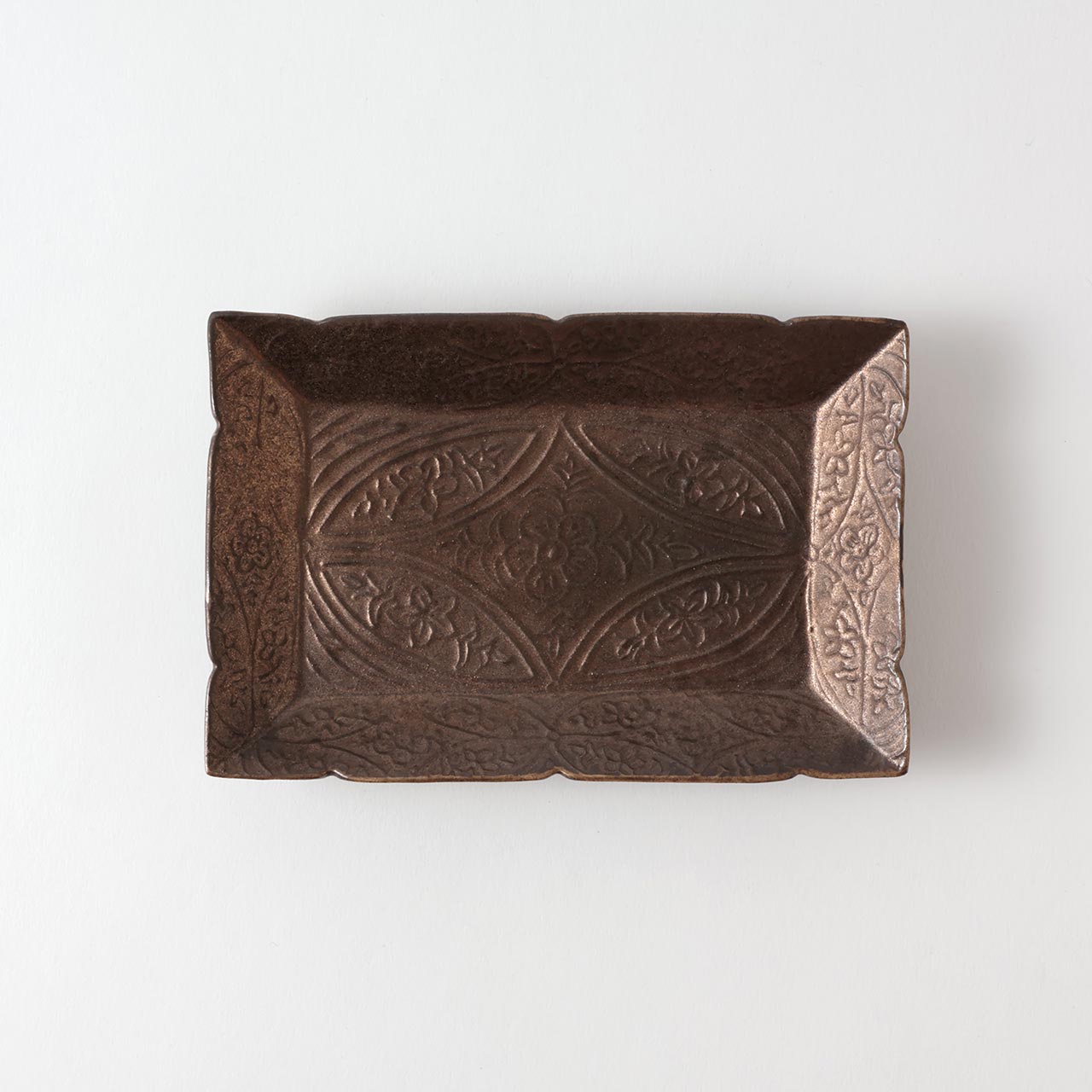 前田麻美 ブロンズ花七宝長角皿