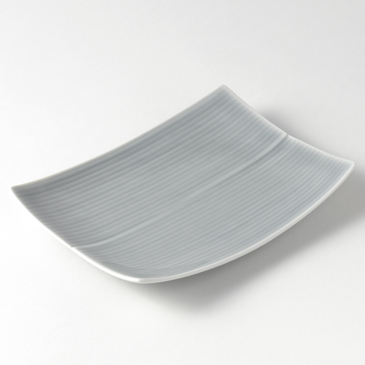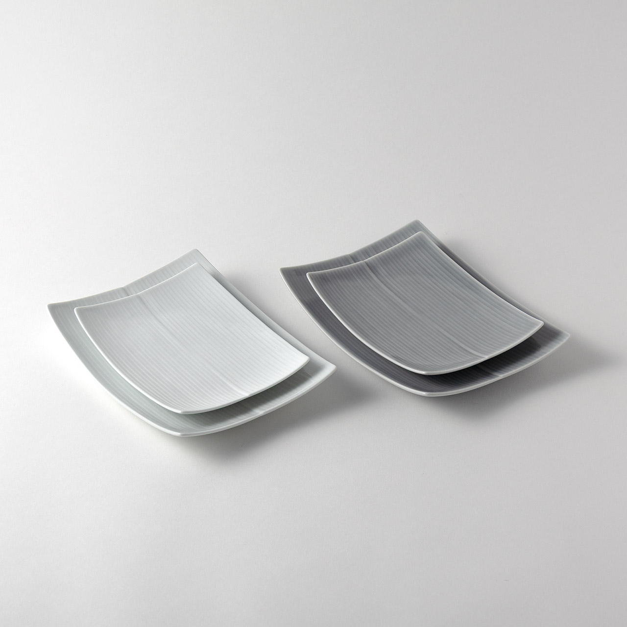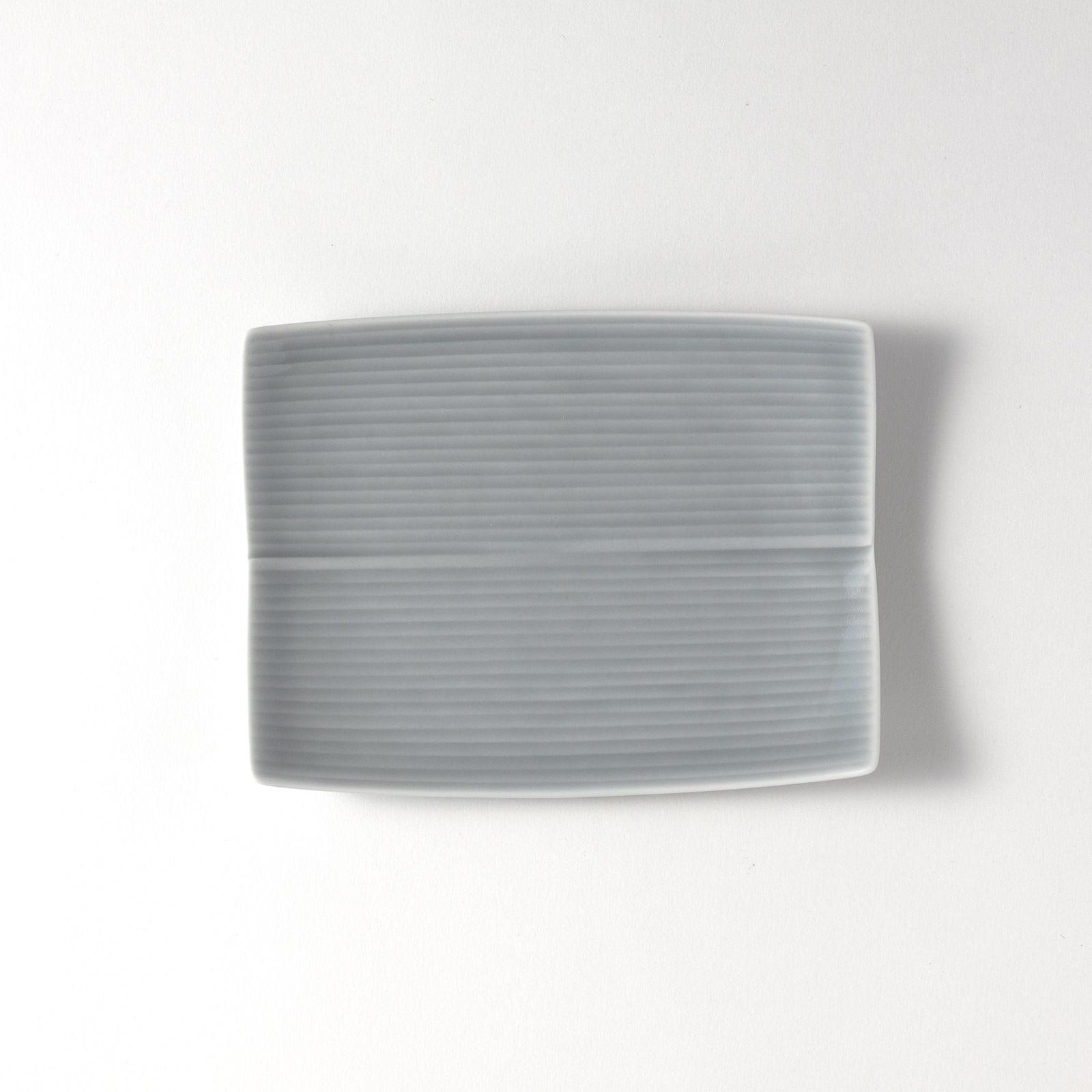 白磁ストライプ長角皿 グレー 16×12.5