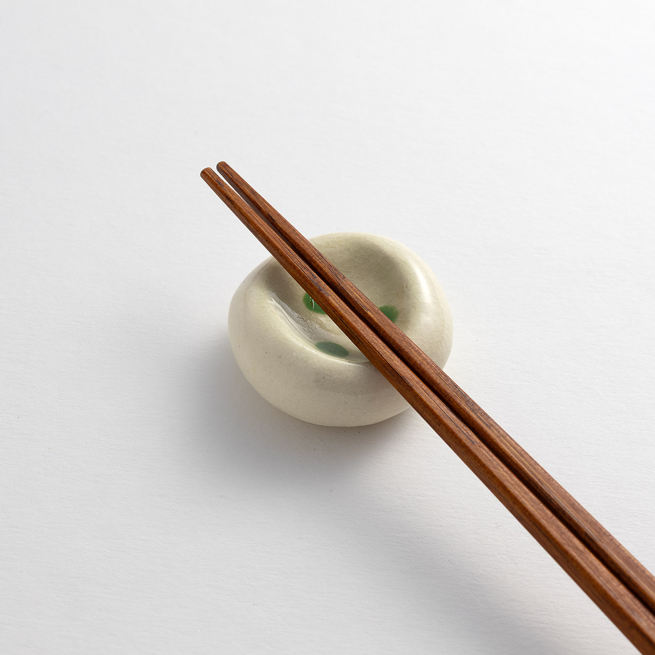 箸置 クリーム地緑ドット