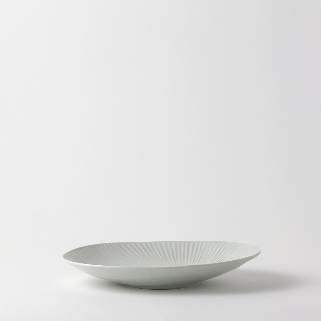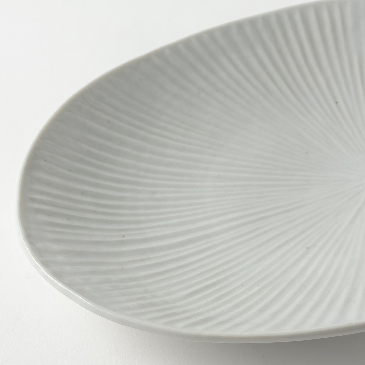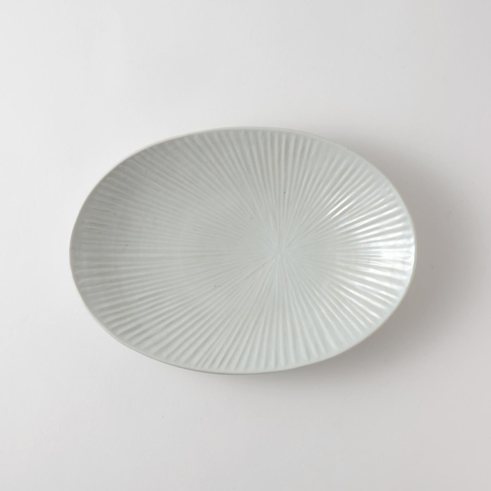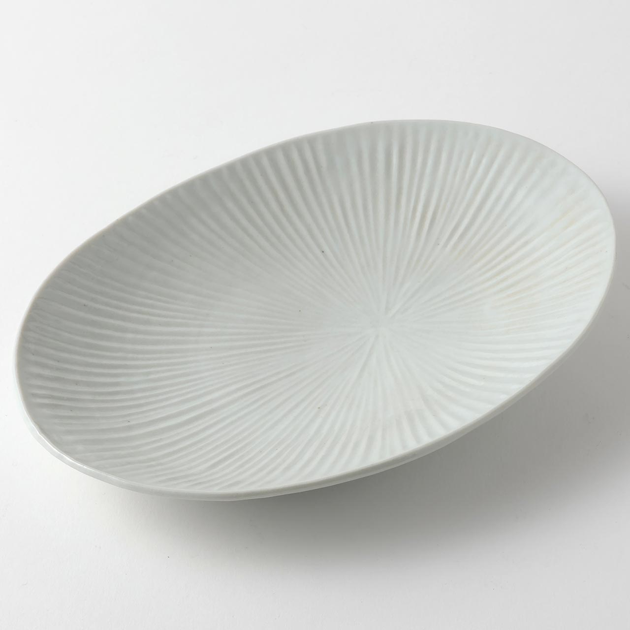 九谷焼窯 白磁内しのぎ楕円皿 中