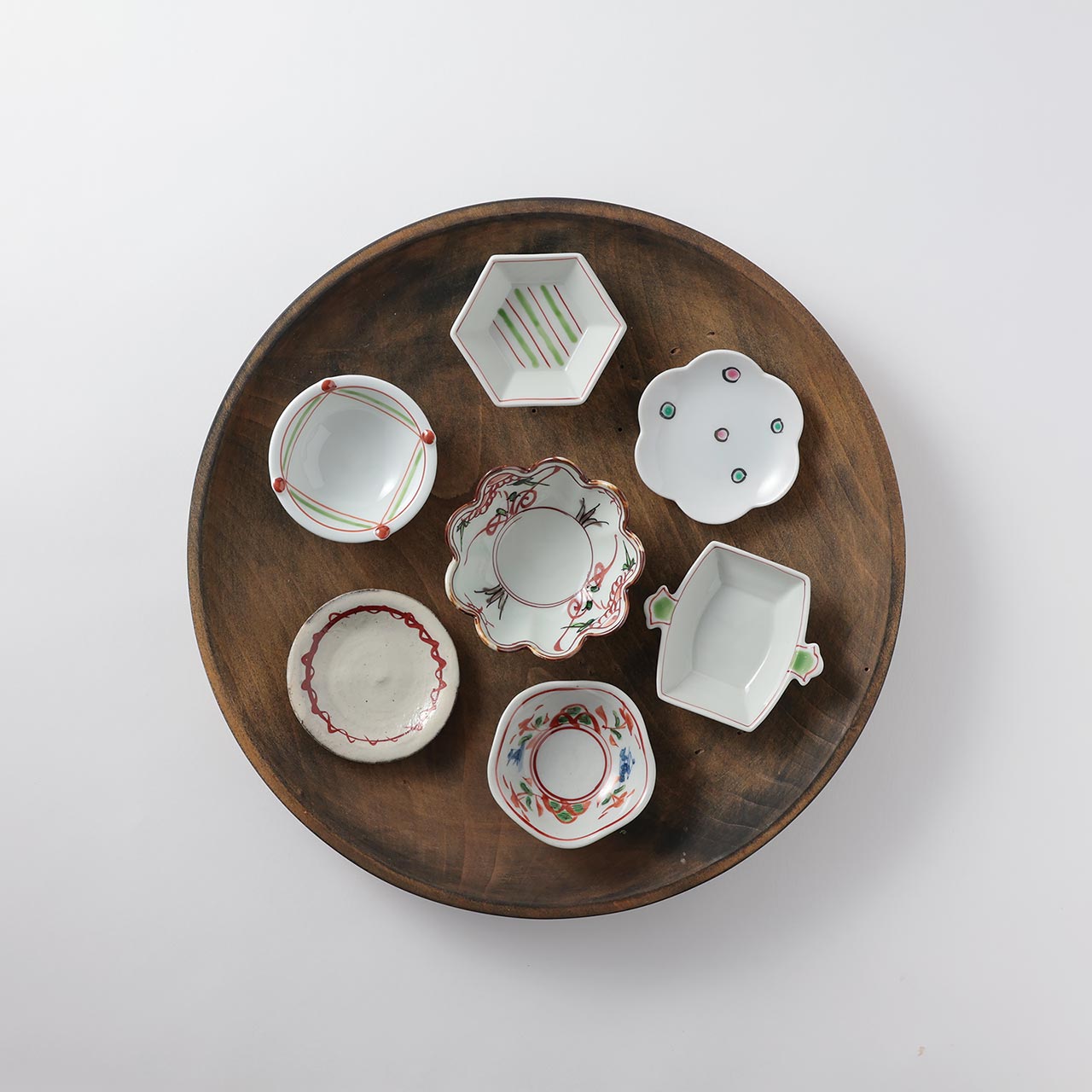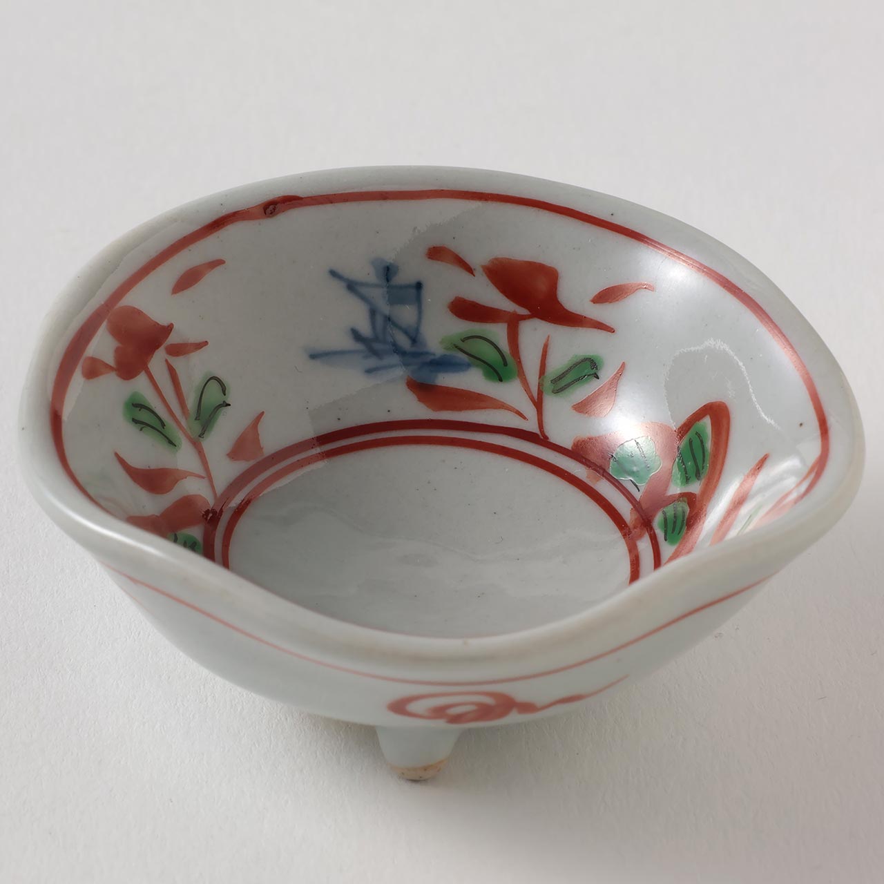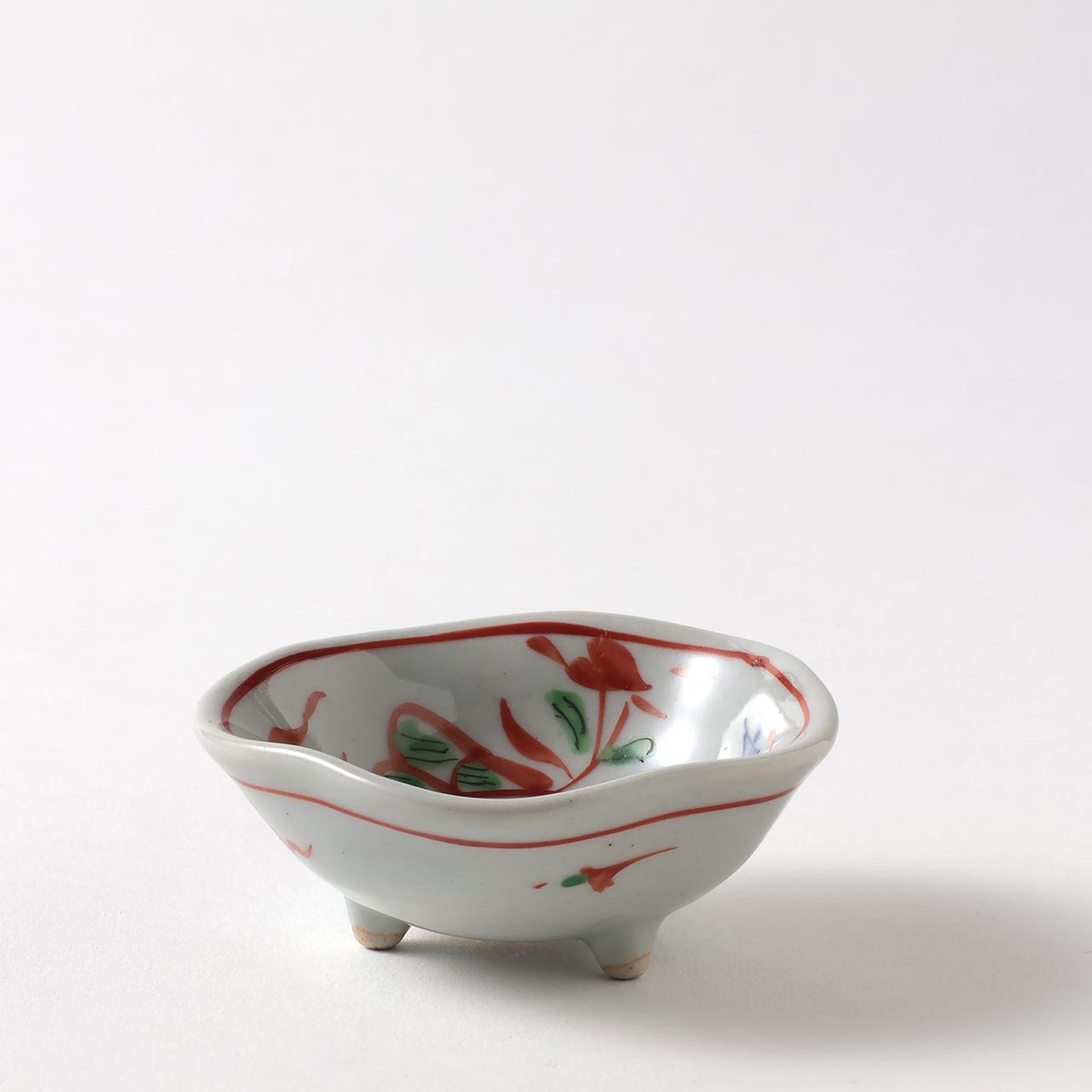 山水万暦三ッ足 赤絵豆小鉢