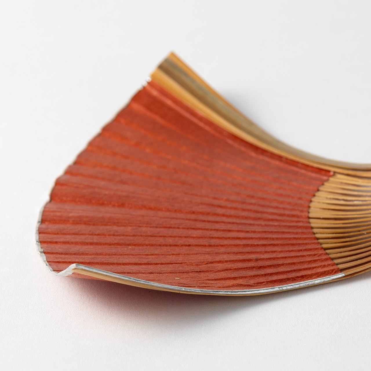 竹和紙張り扇形銘々皿 赤