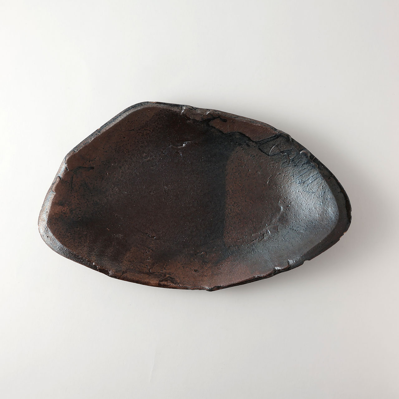和)Hiyo 茶 変形楕円大皿