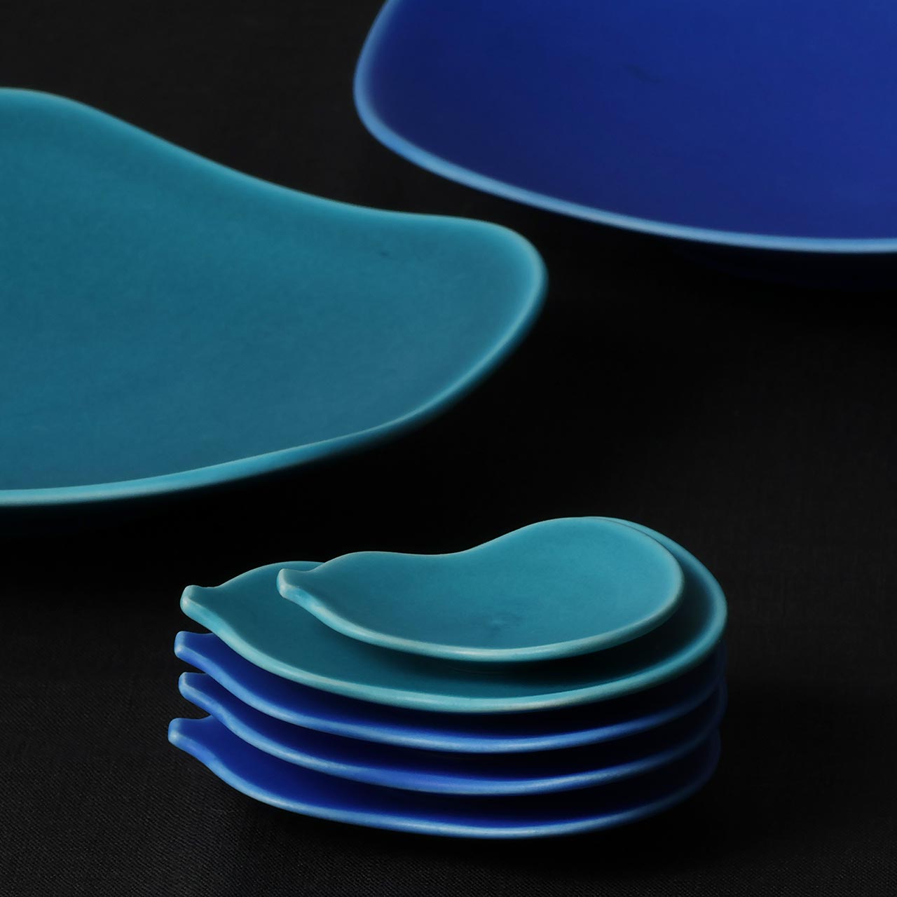 東一仁 ひょうたん型小皿 トルコブルーM