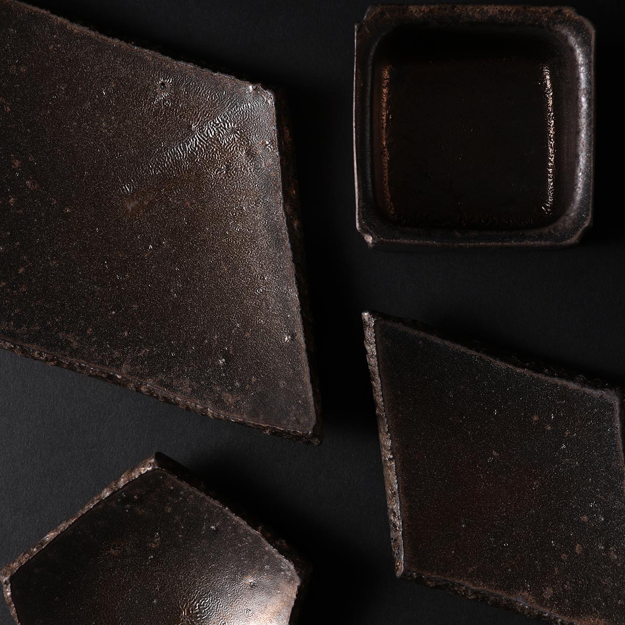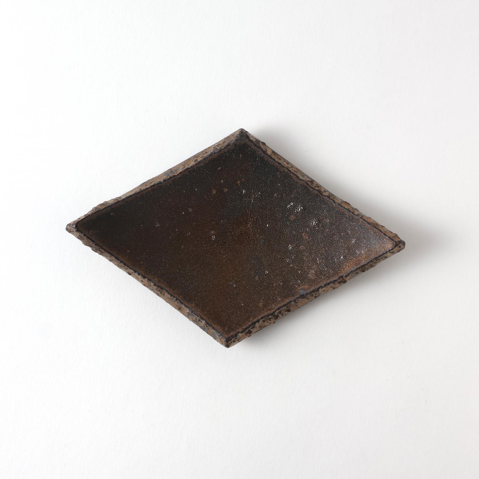 平岡仁 マンガン釉菱形皿黒いぶし(小)