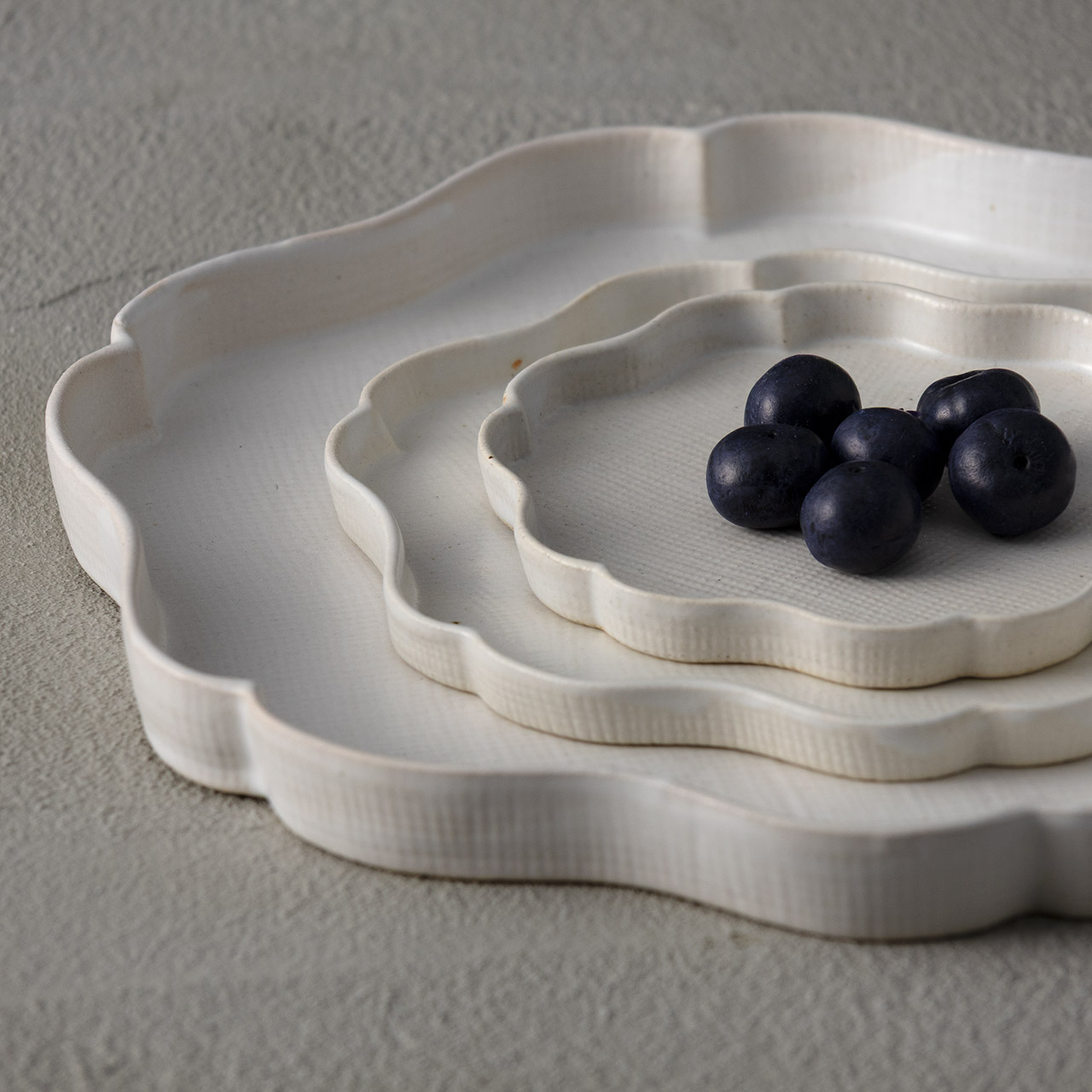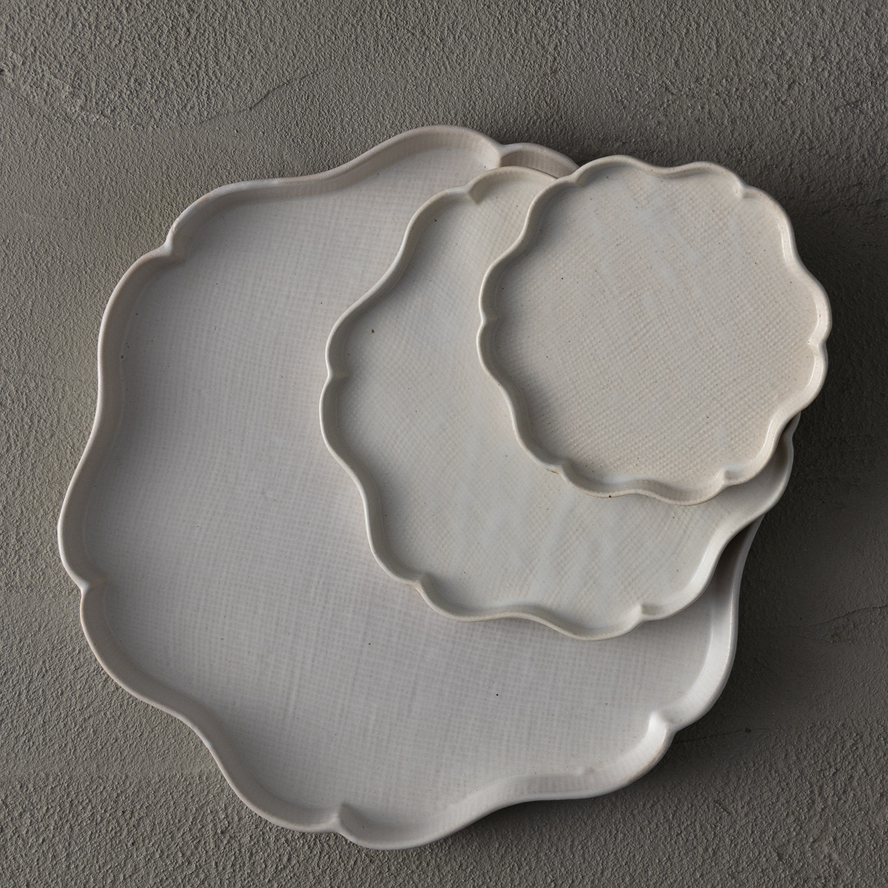 たたら輪花中皿16cm 白