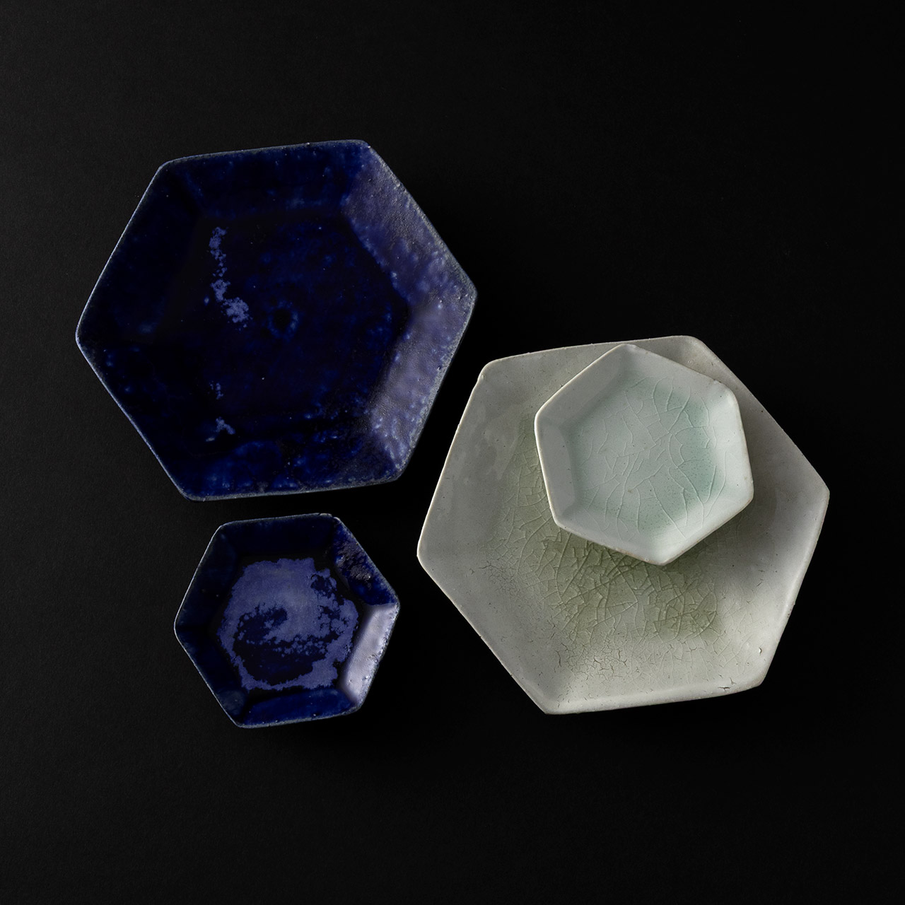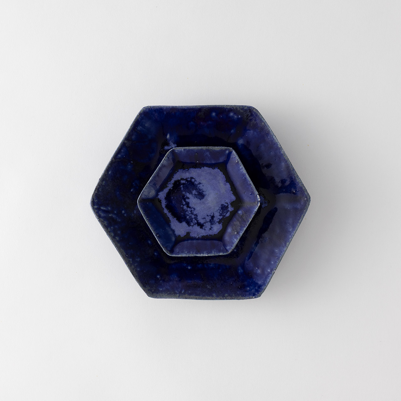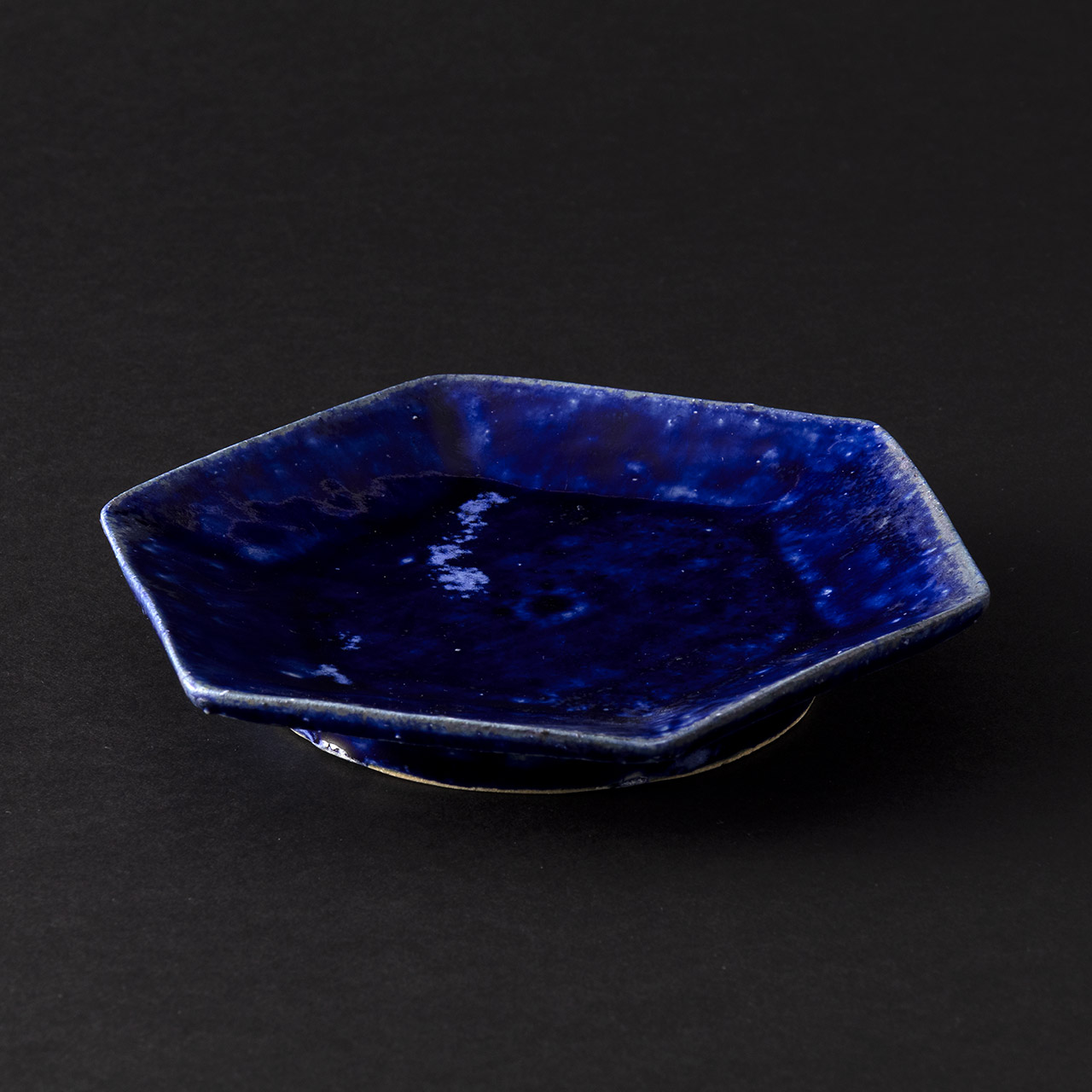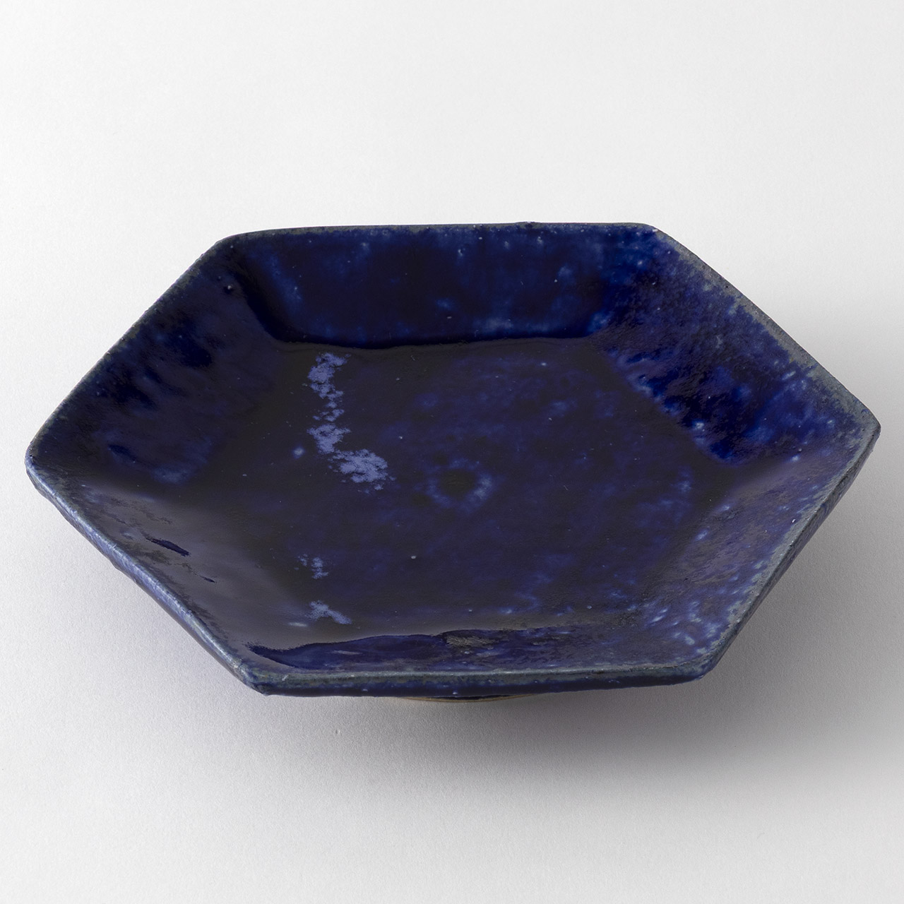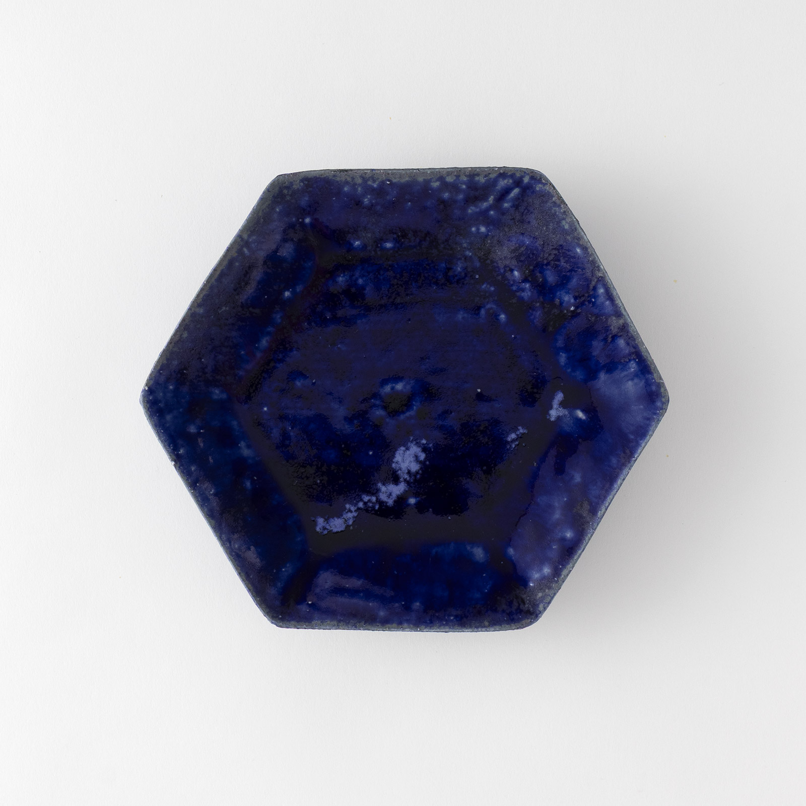 吉川仁 藍彩六角皿(中)