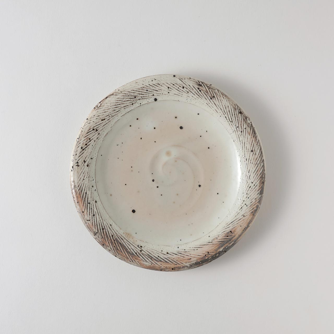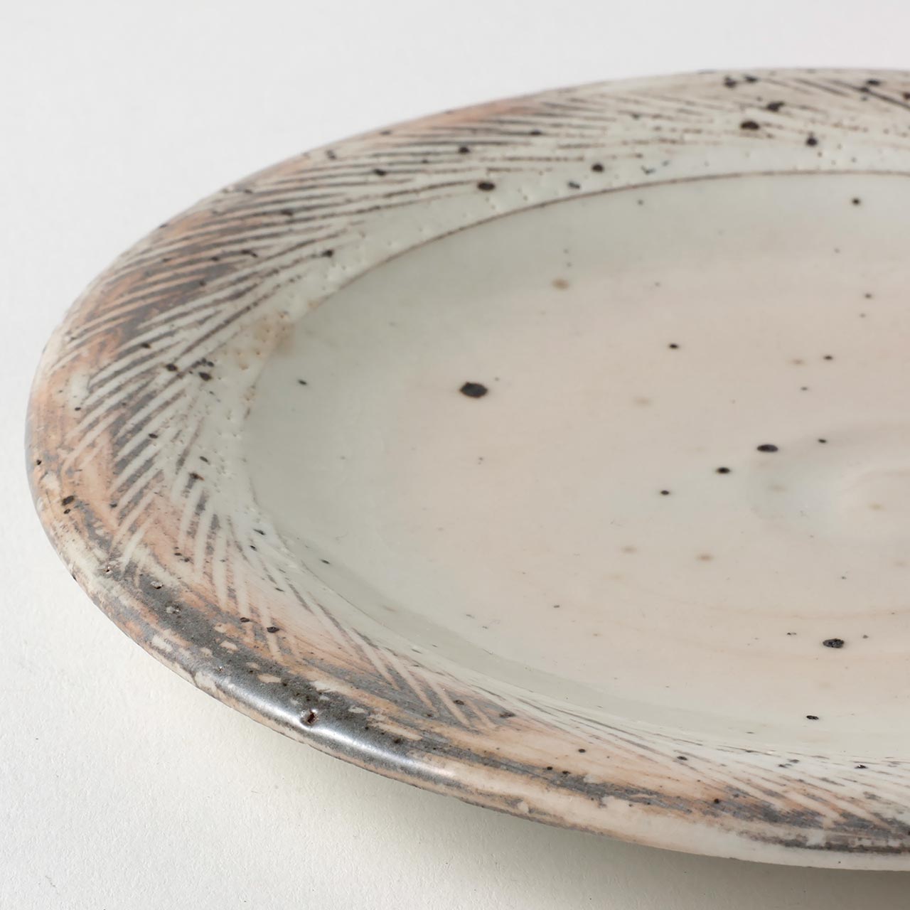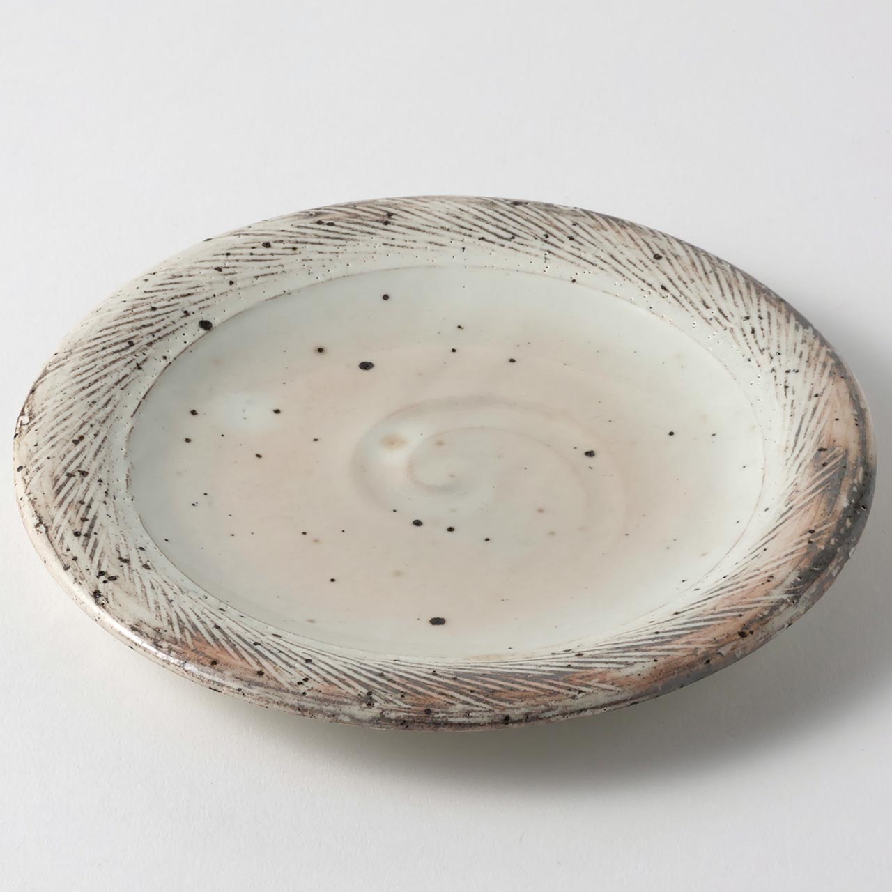 和)粉引くし目丸皿 17.5