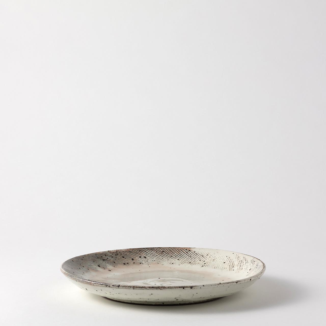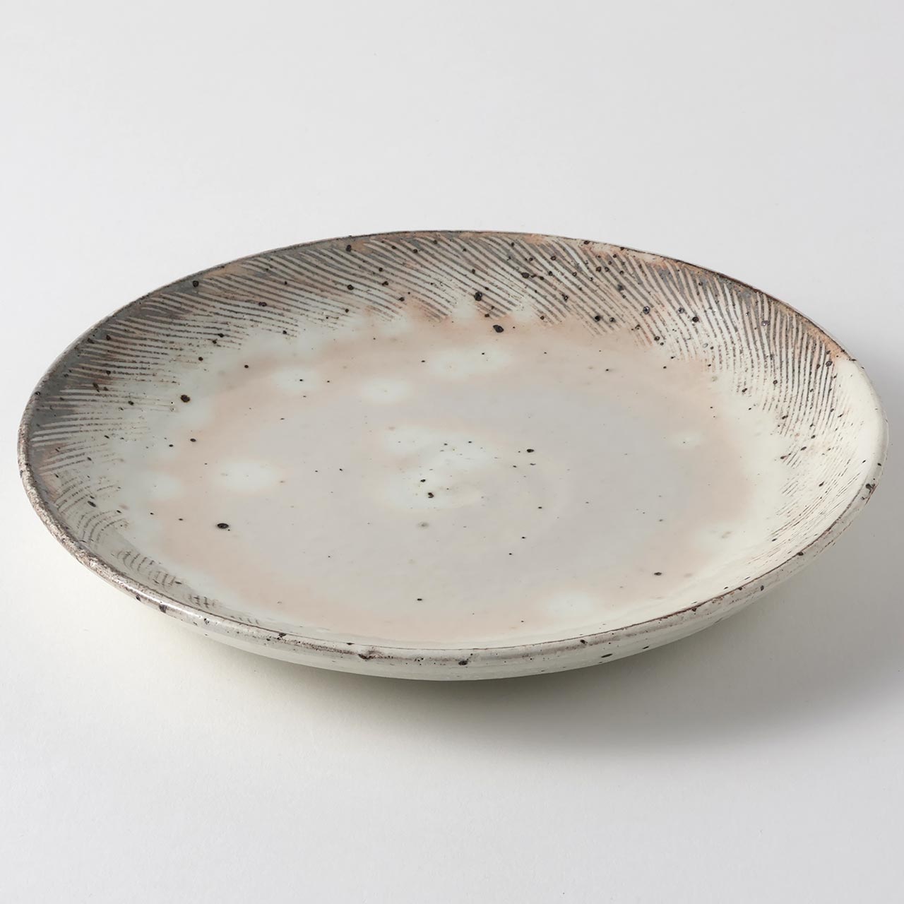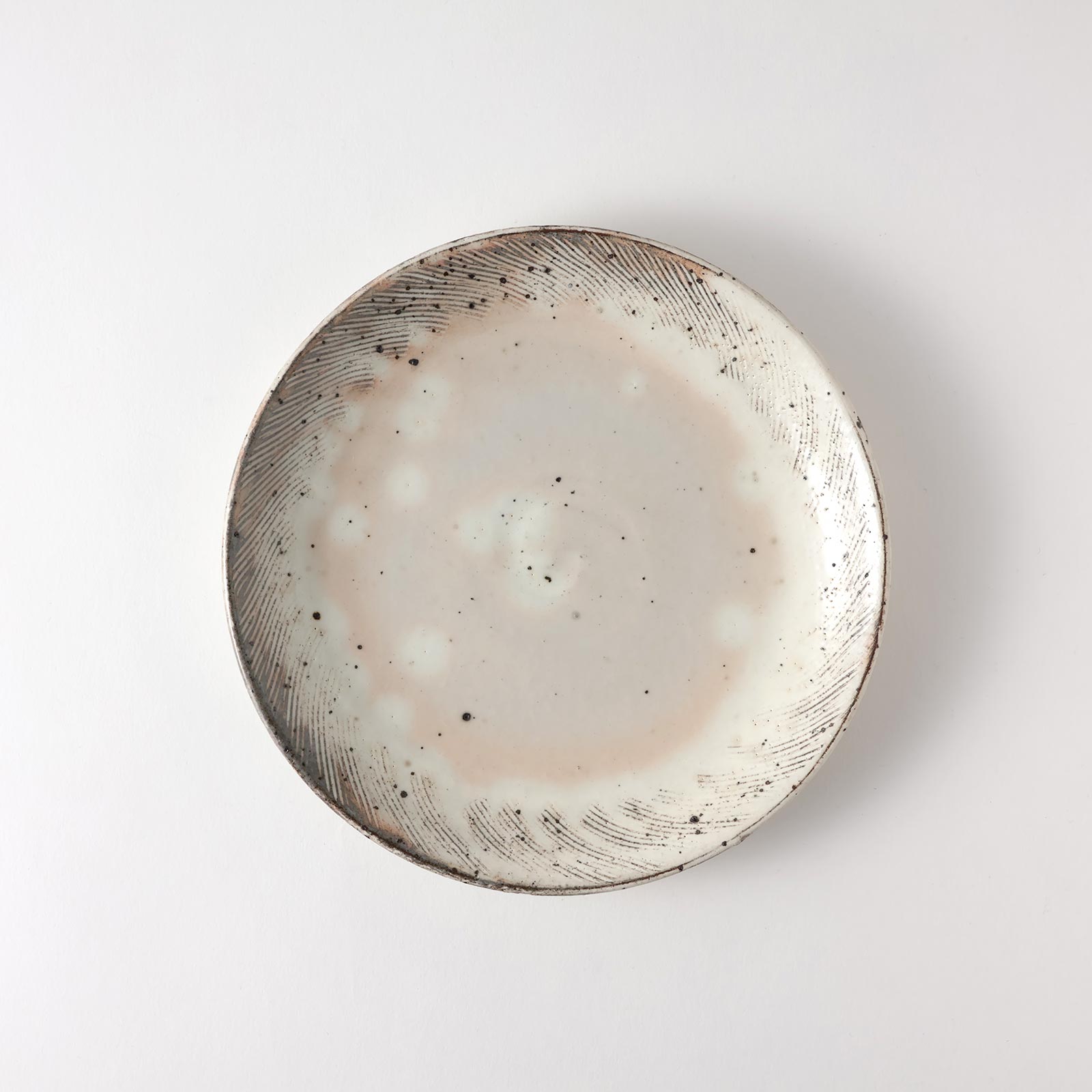 和)粉引くし目丸皿 22