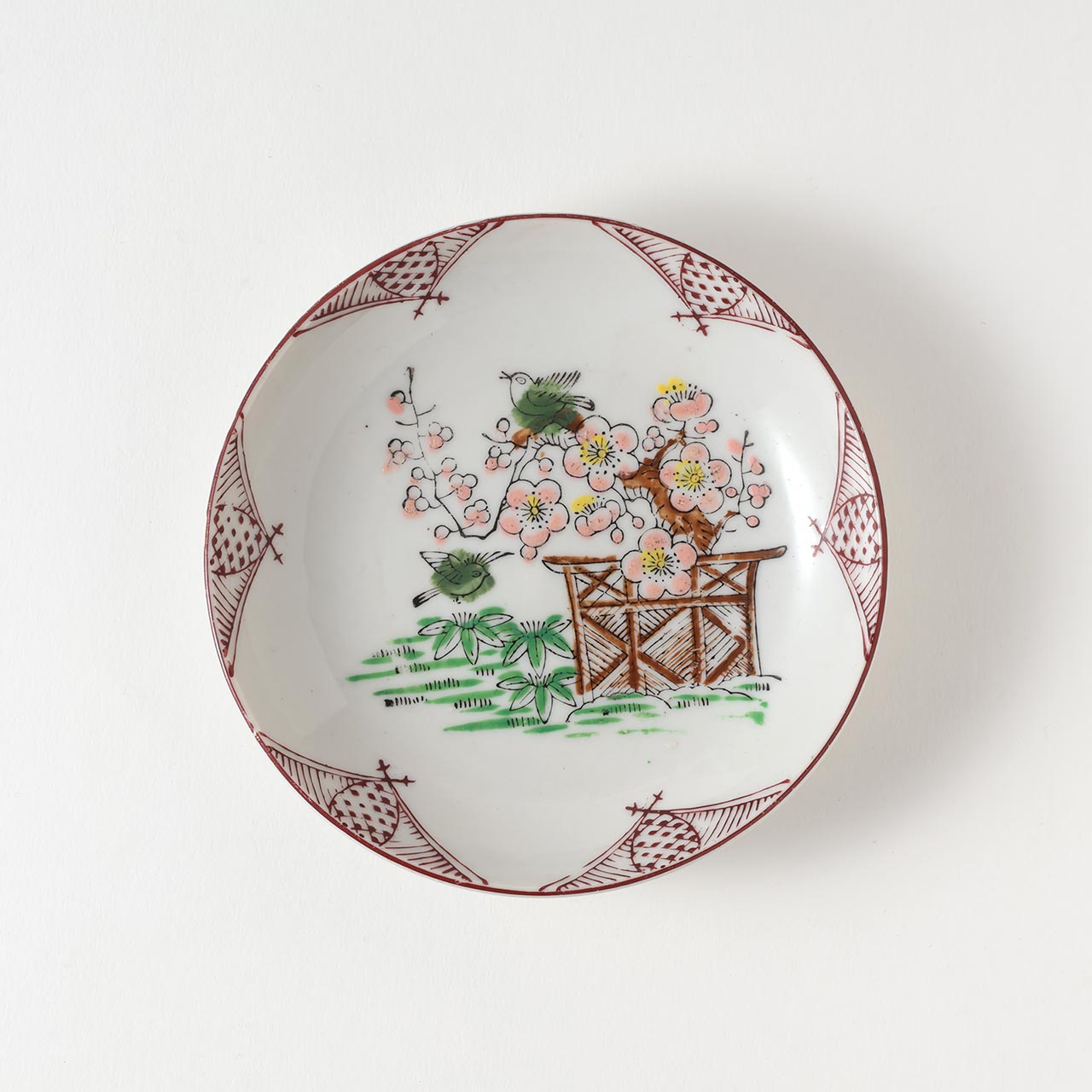 アンティーク 小皿 梅に鳥