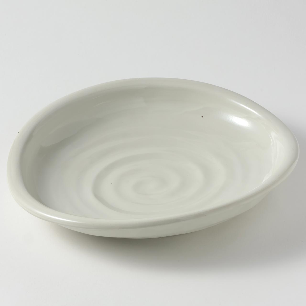 粉引楕円大皿 白/渦