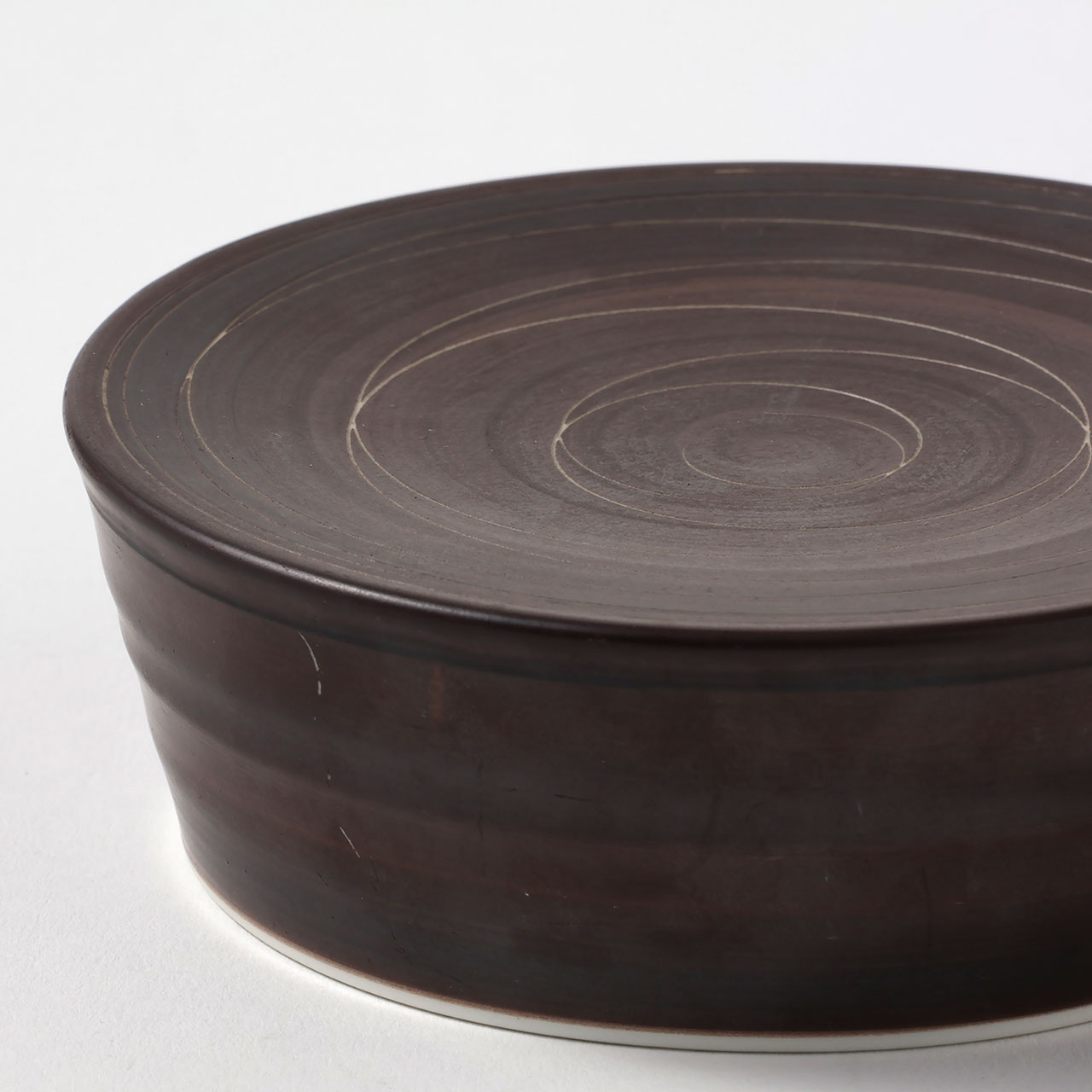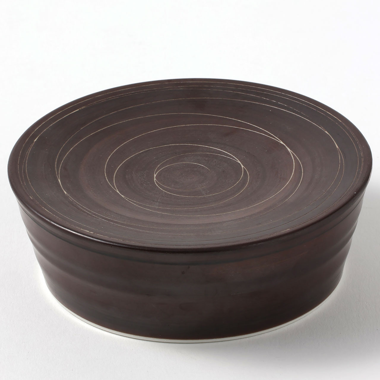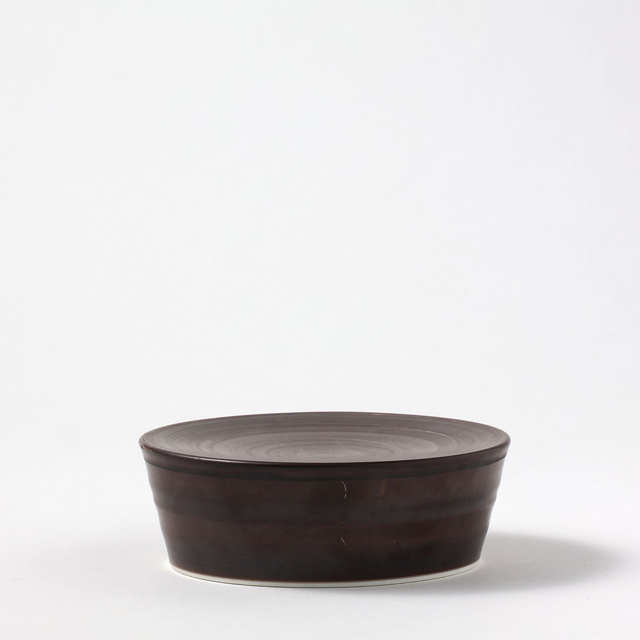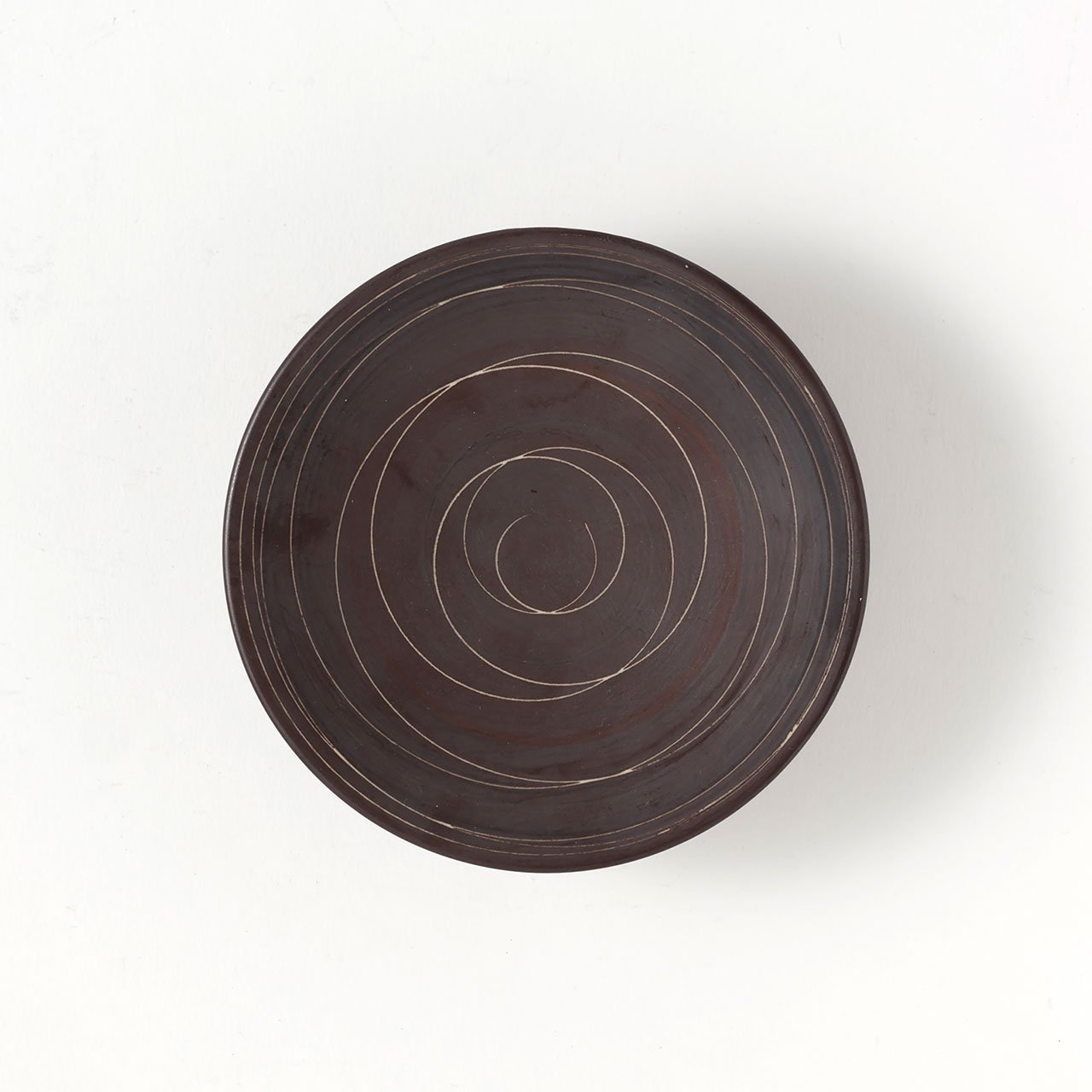 高台丸皿 茶に白の渦