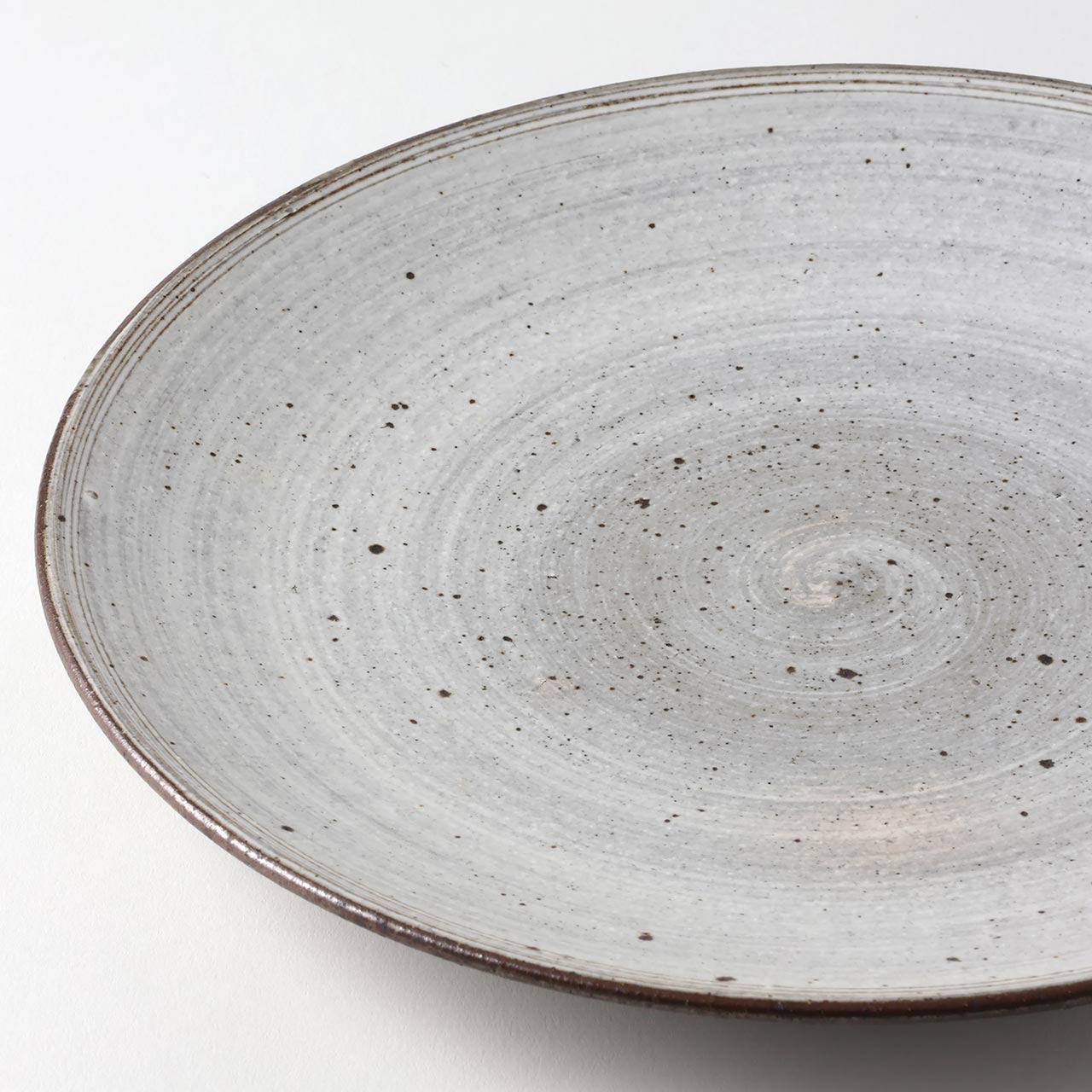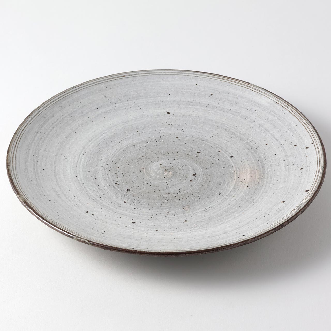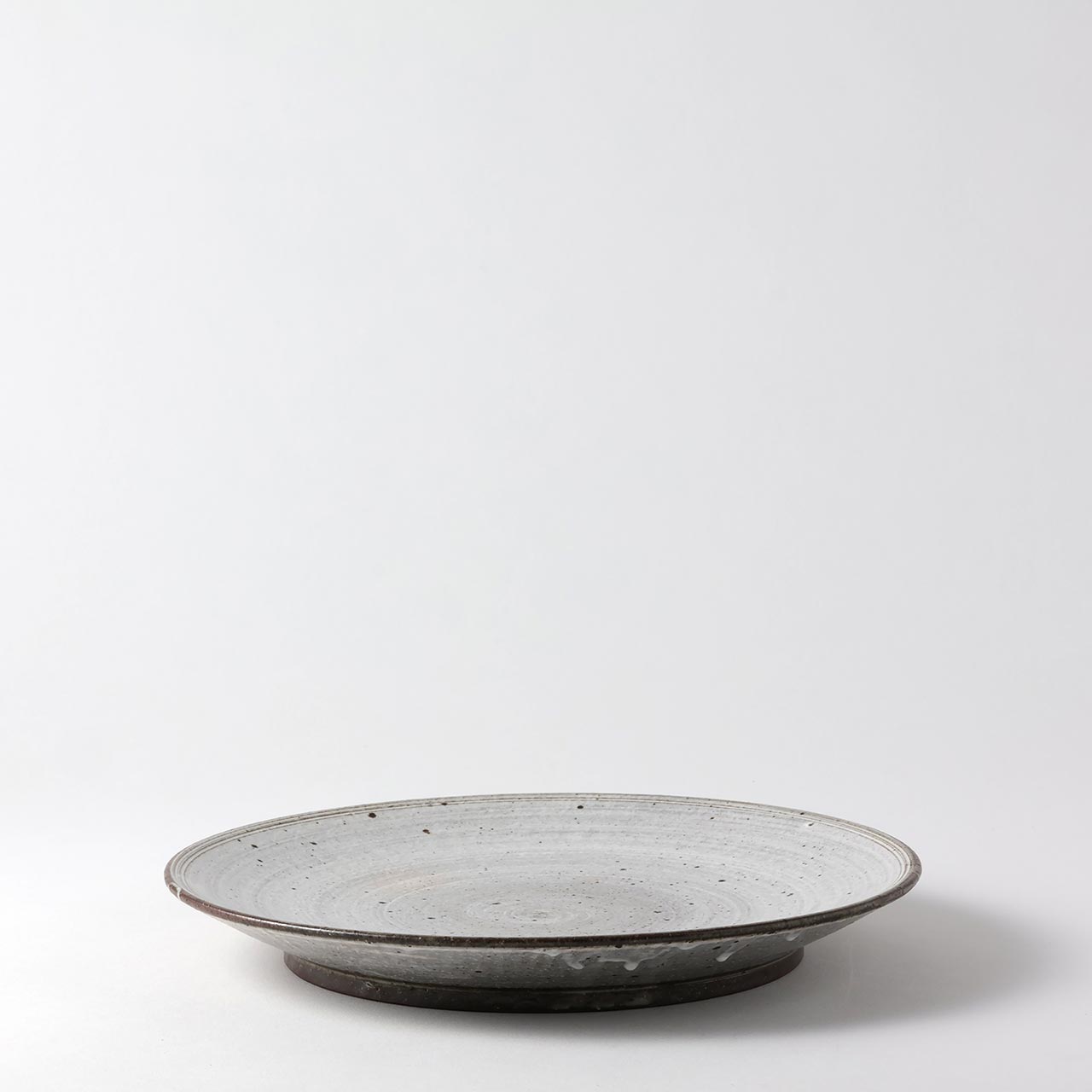 刷毛目 平丸皿 グレー/白(大) 25.5cm