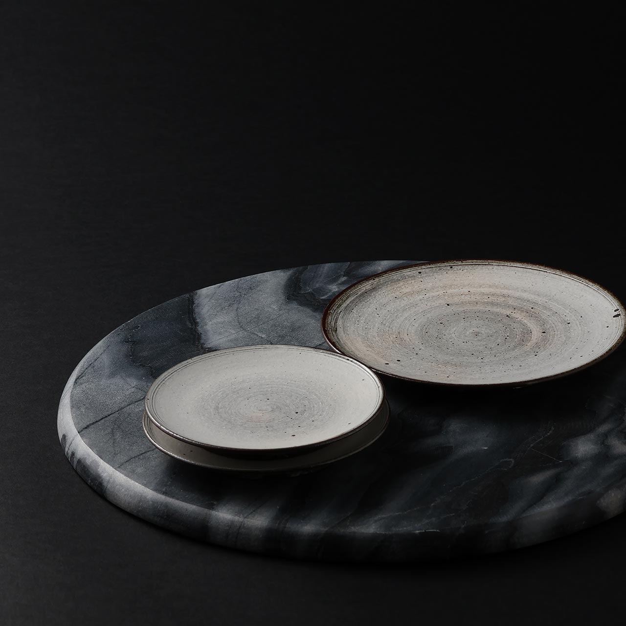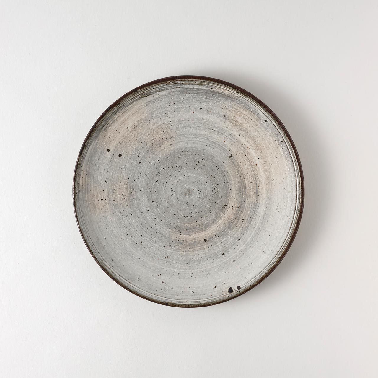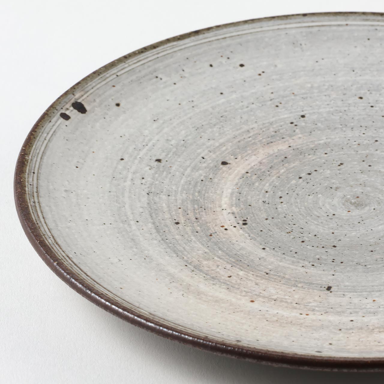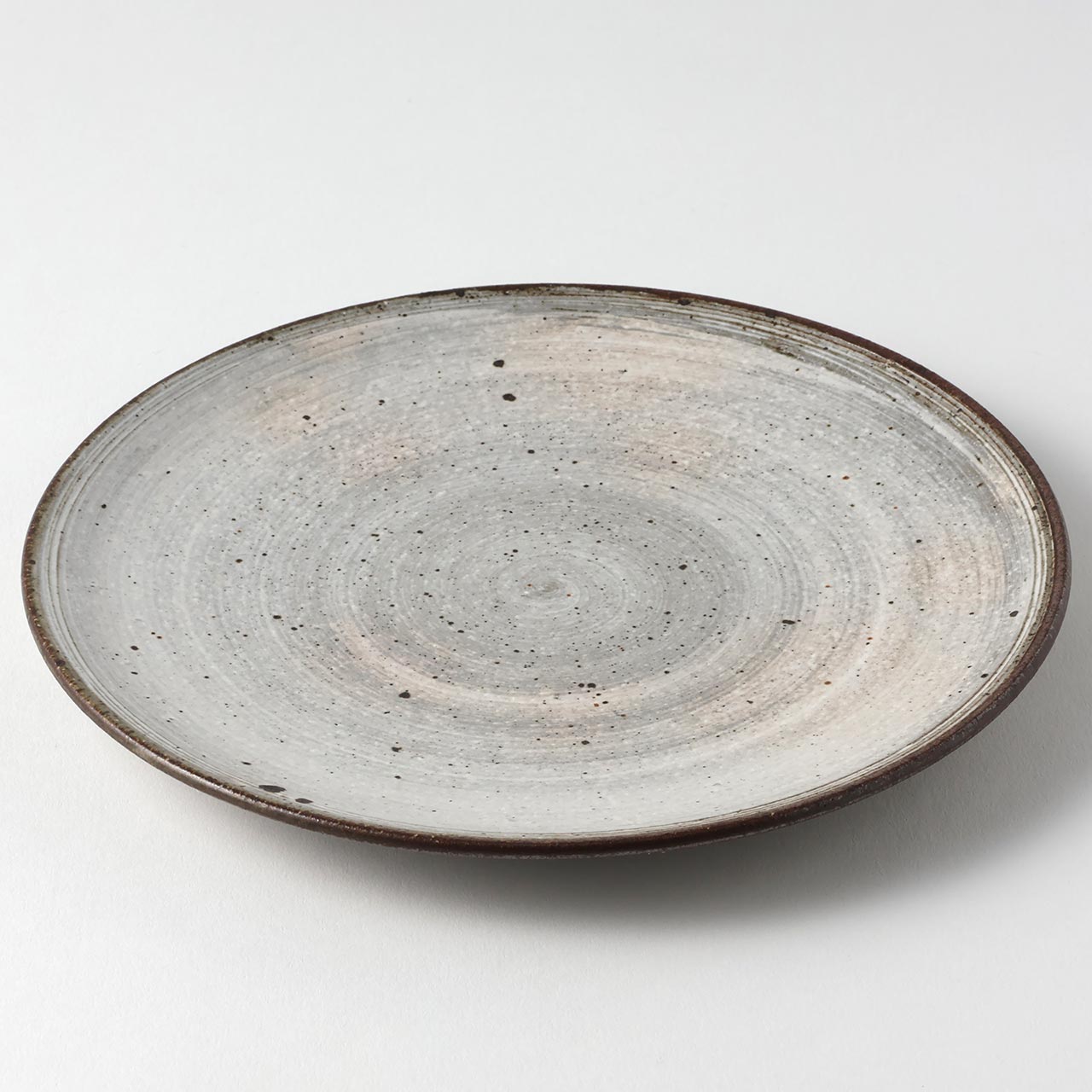 刷毛目 平丸皿 グレー/白(中) 19cm