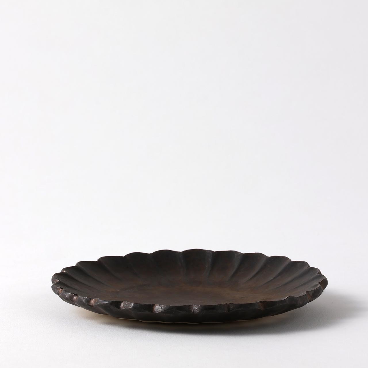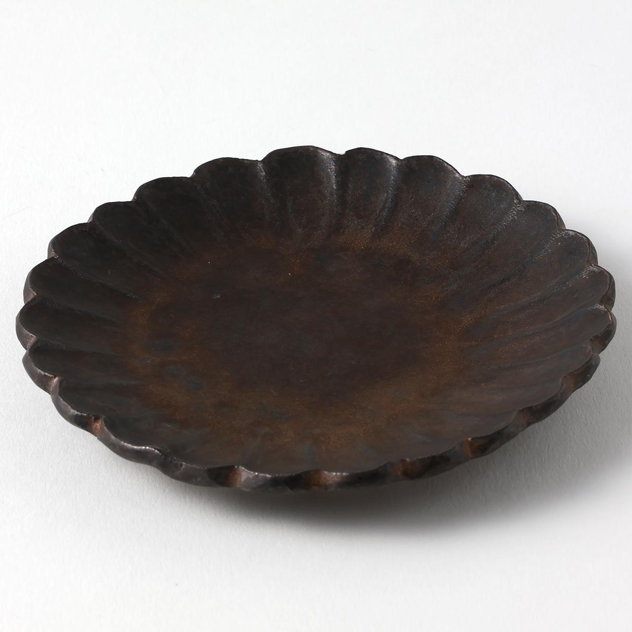 堂本正樹 黒錆丸花型皿 13cm