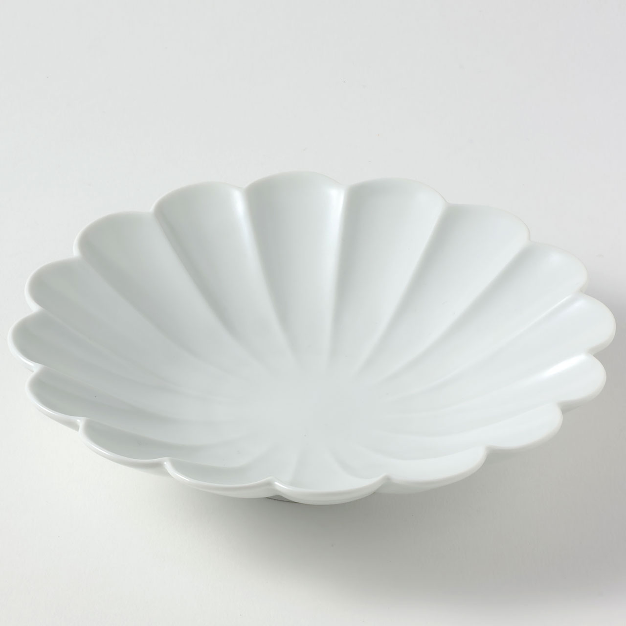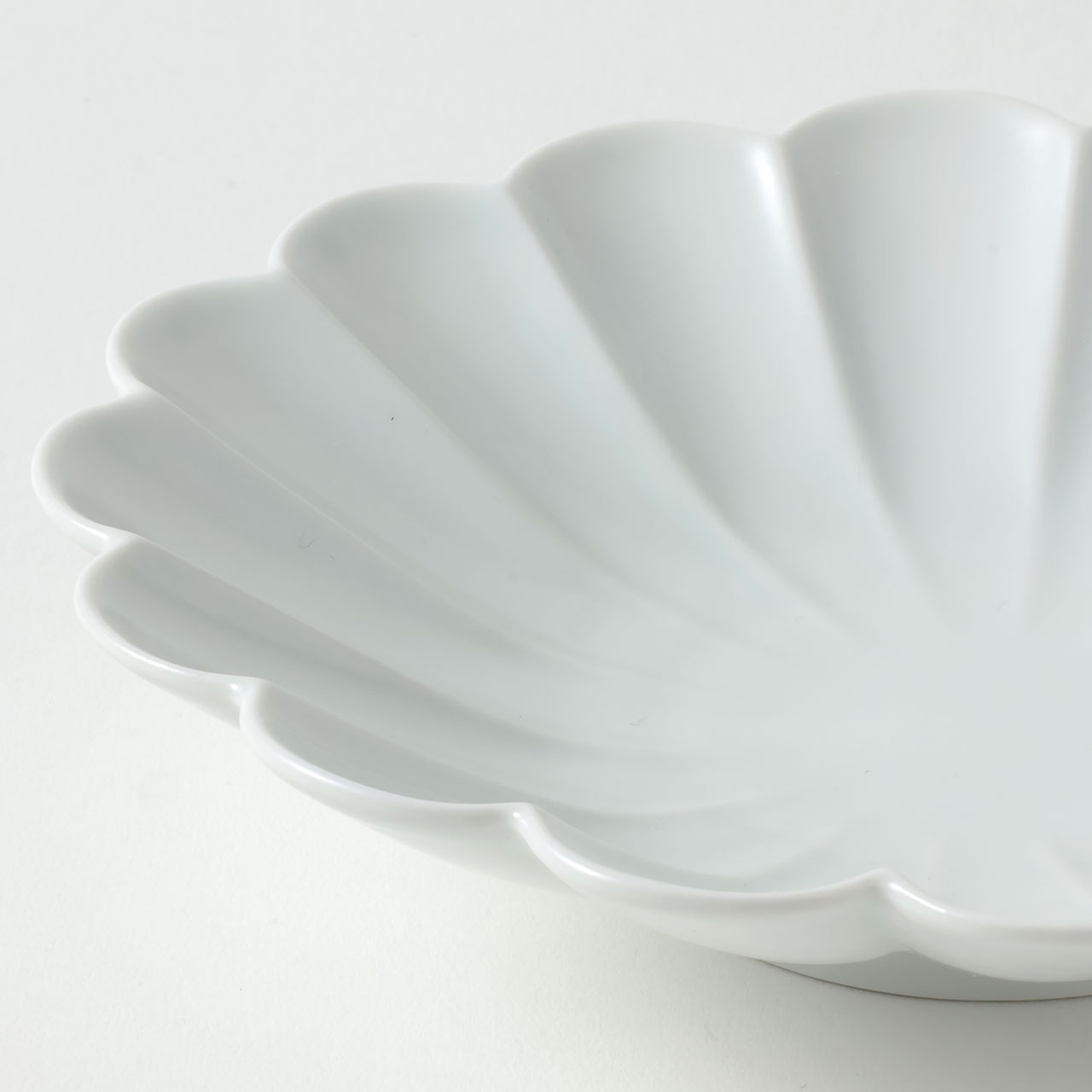 ホワイト輪花麻皿丸17cm