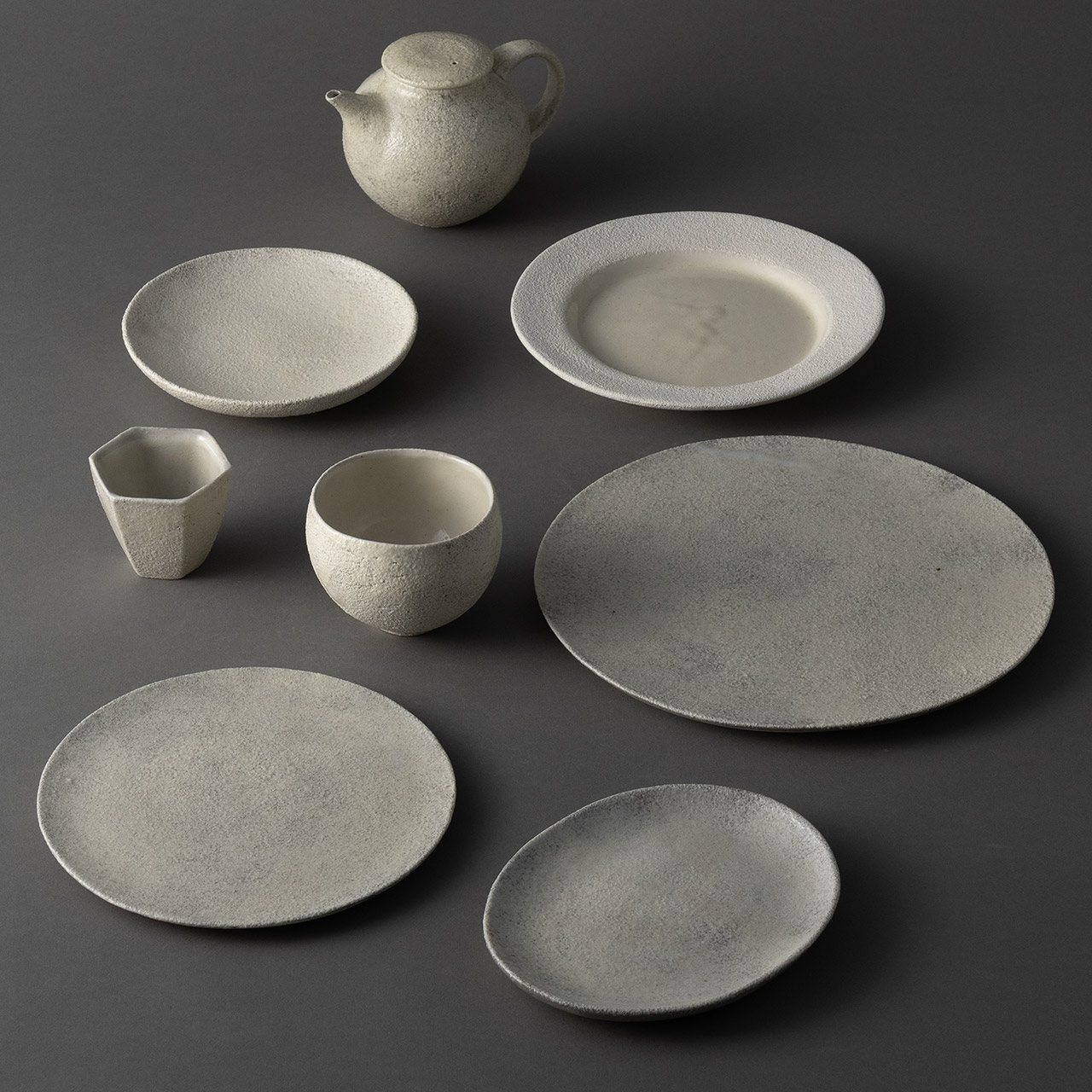 大橋睦 粉引き リム皿18cm