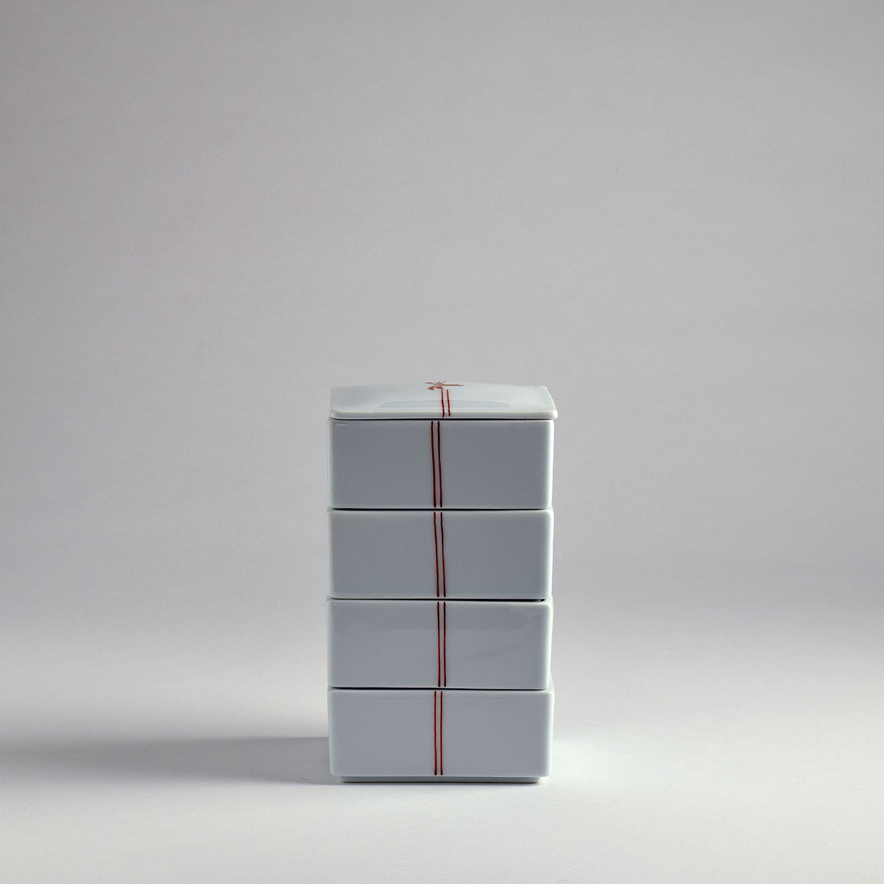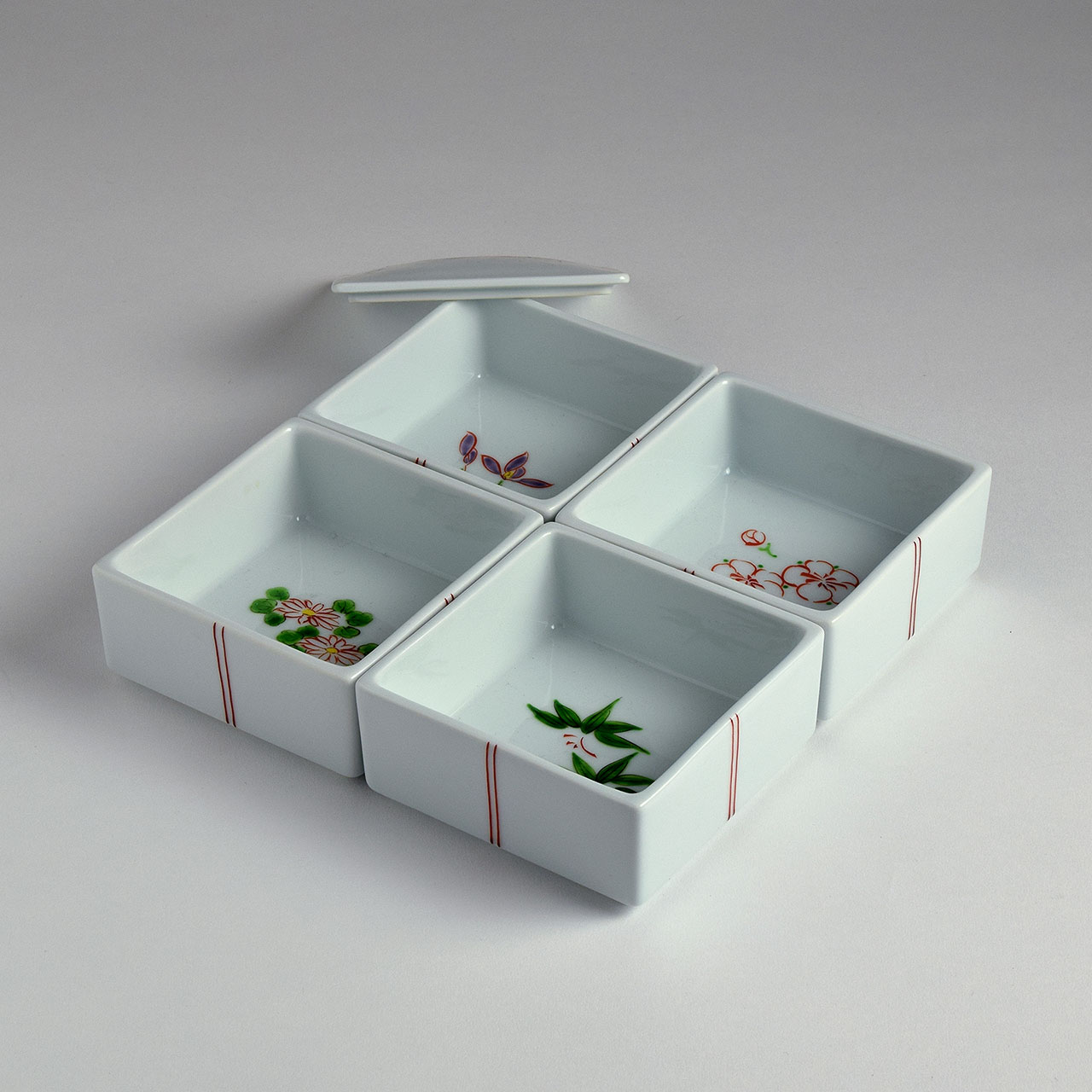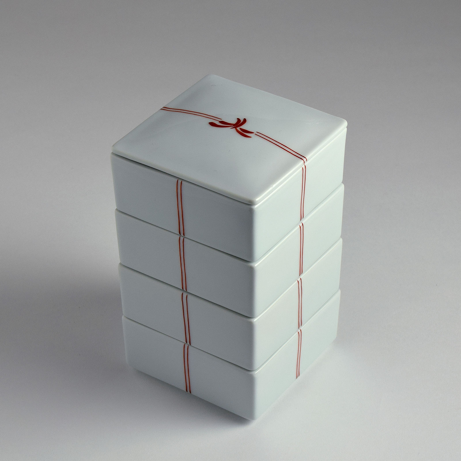 四君子 四段重 陶器 朱 結び