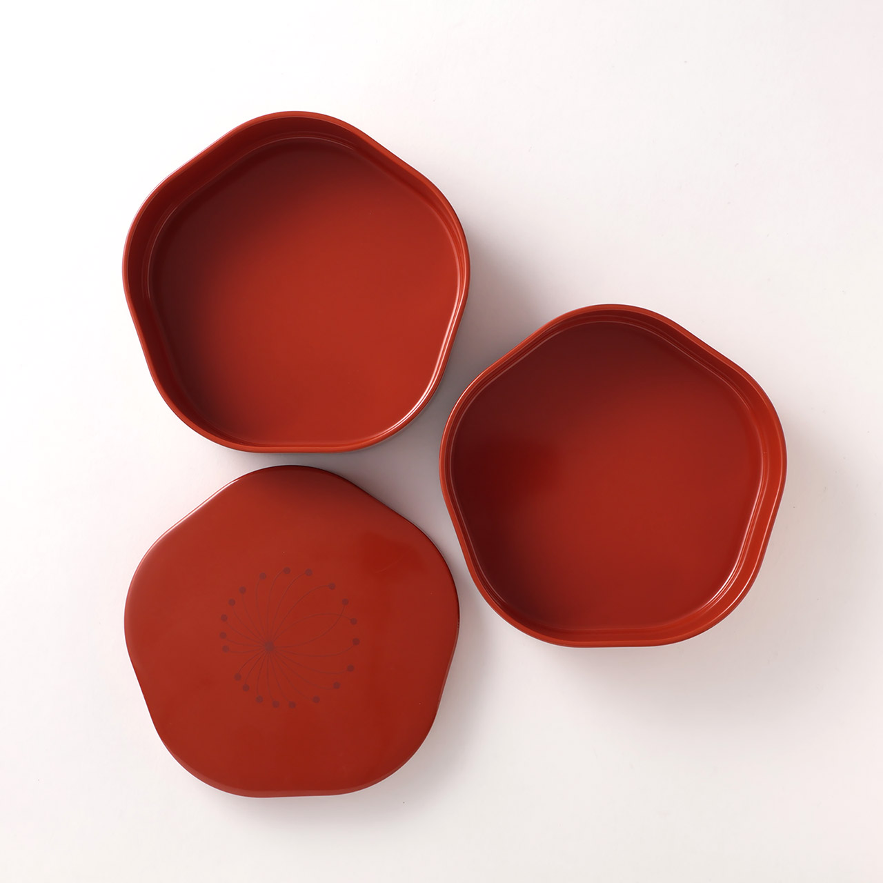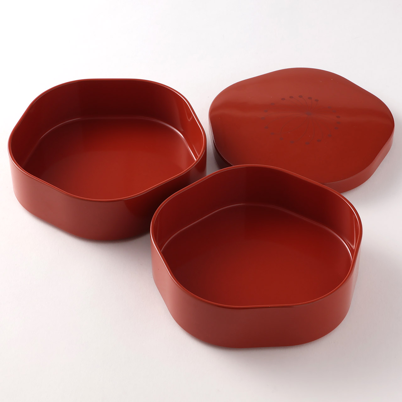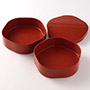 漆 五角形 福梅二段弁当箱 朱(フタ汚れのためOFF)