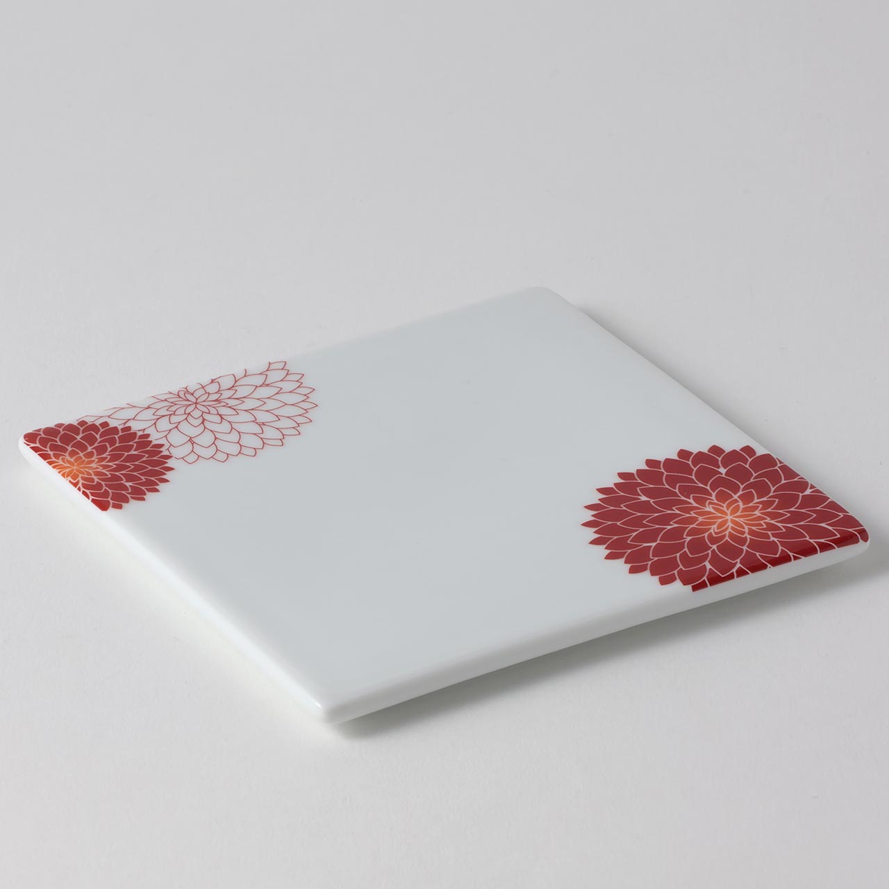 マム スクエア皿(小) 白地赤の花 13cm