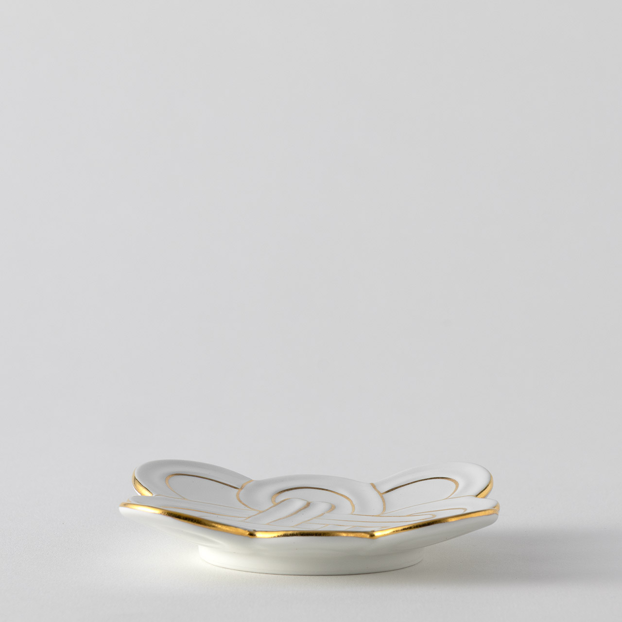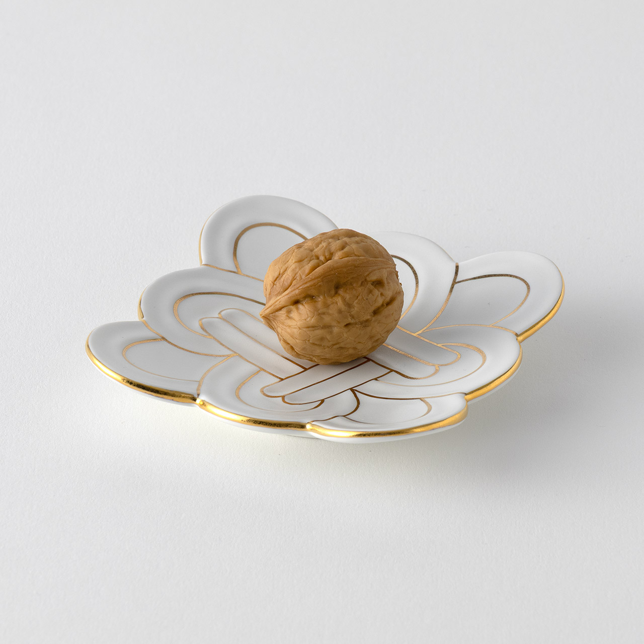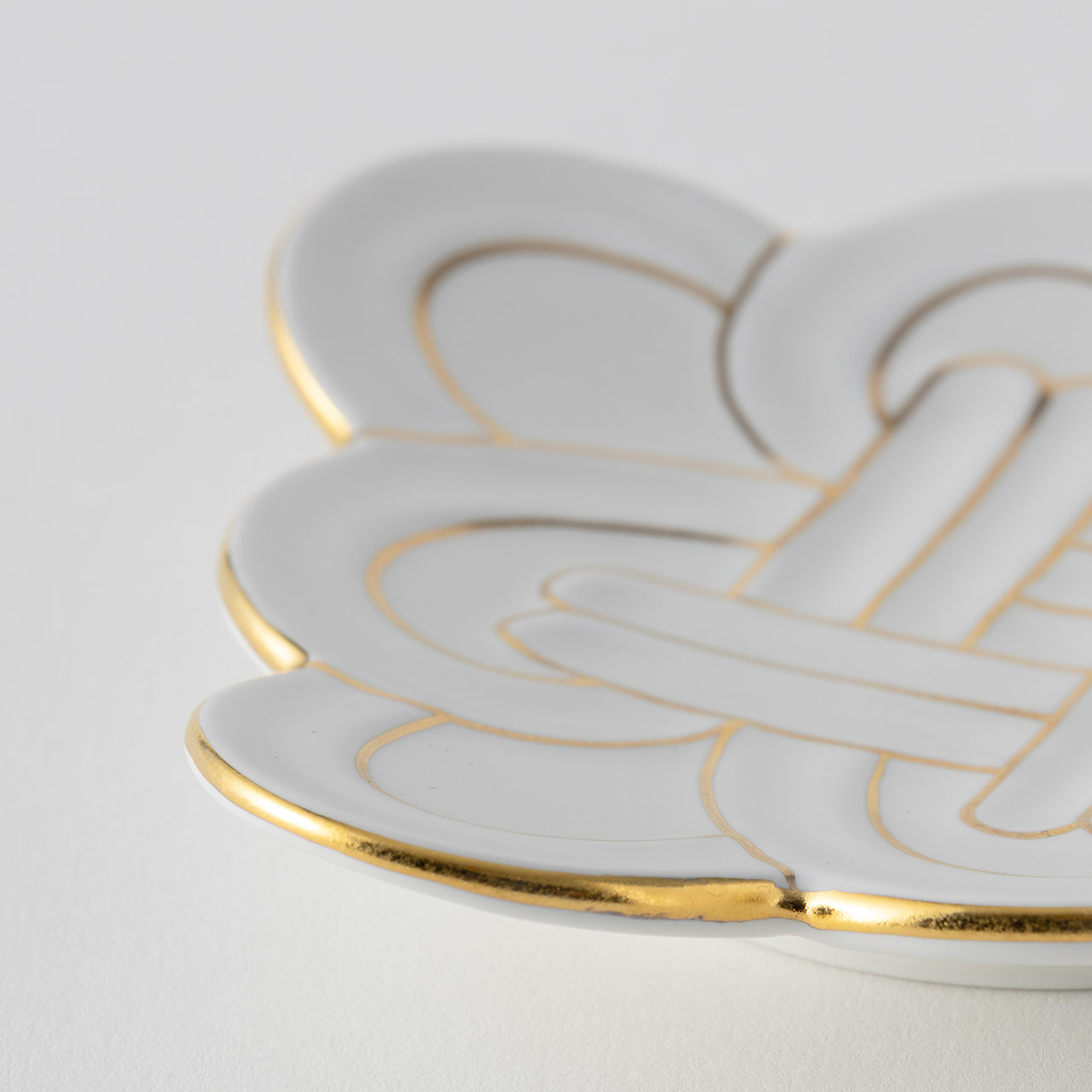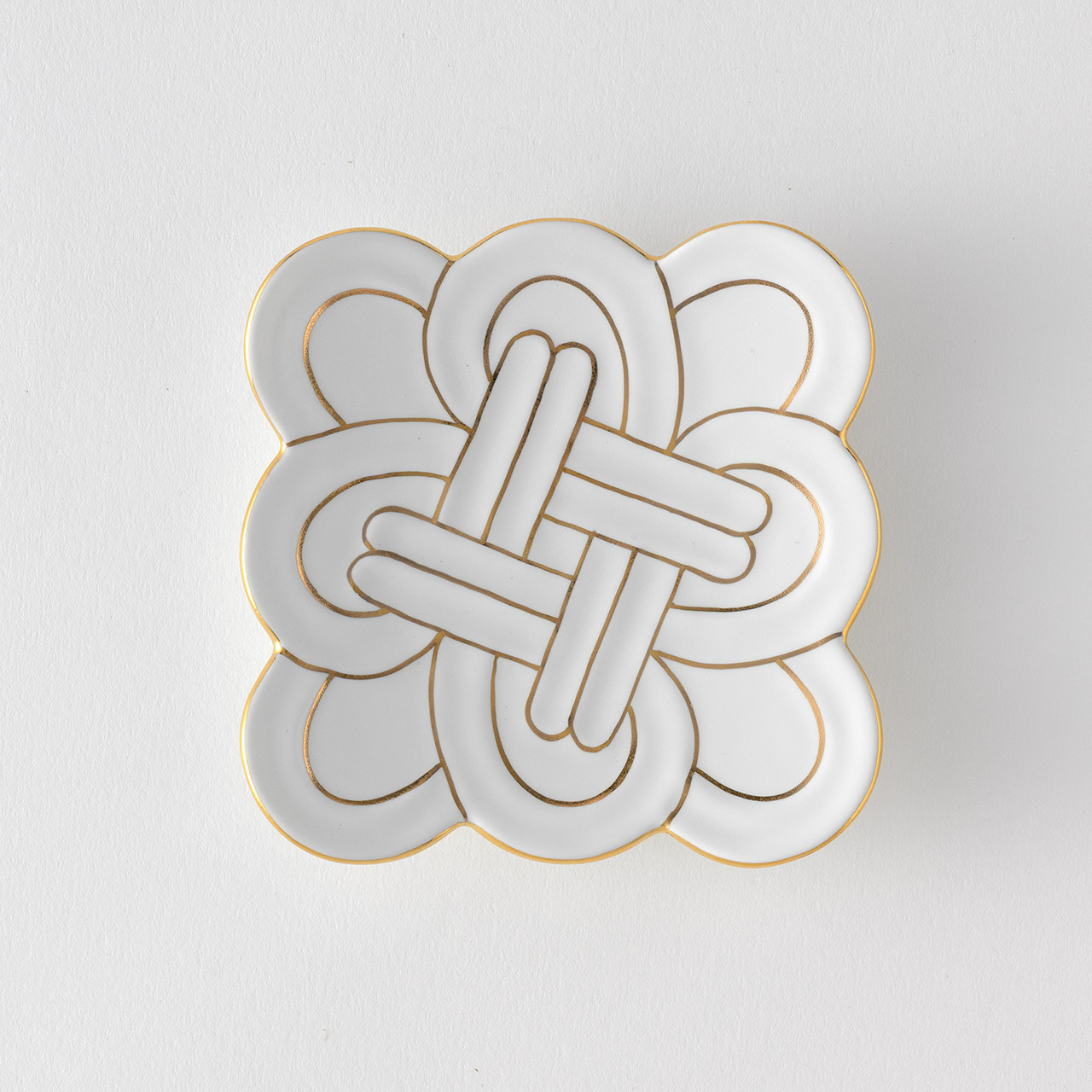 白マット金線吉祥むすび小皿