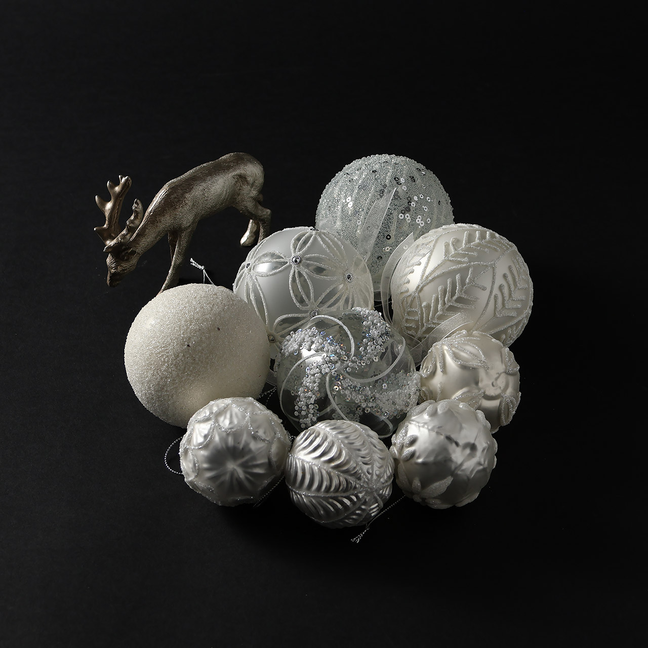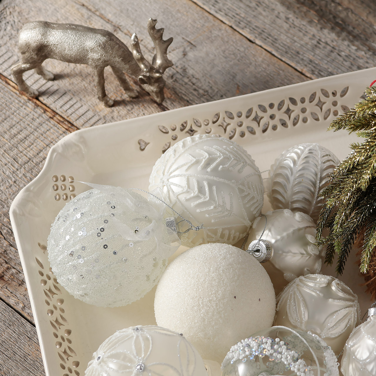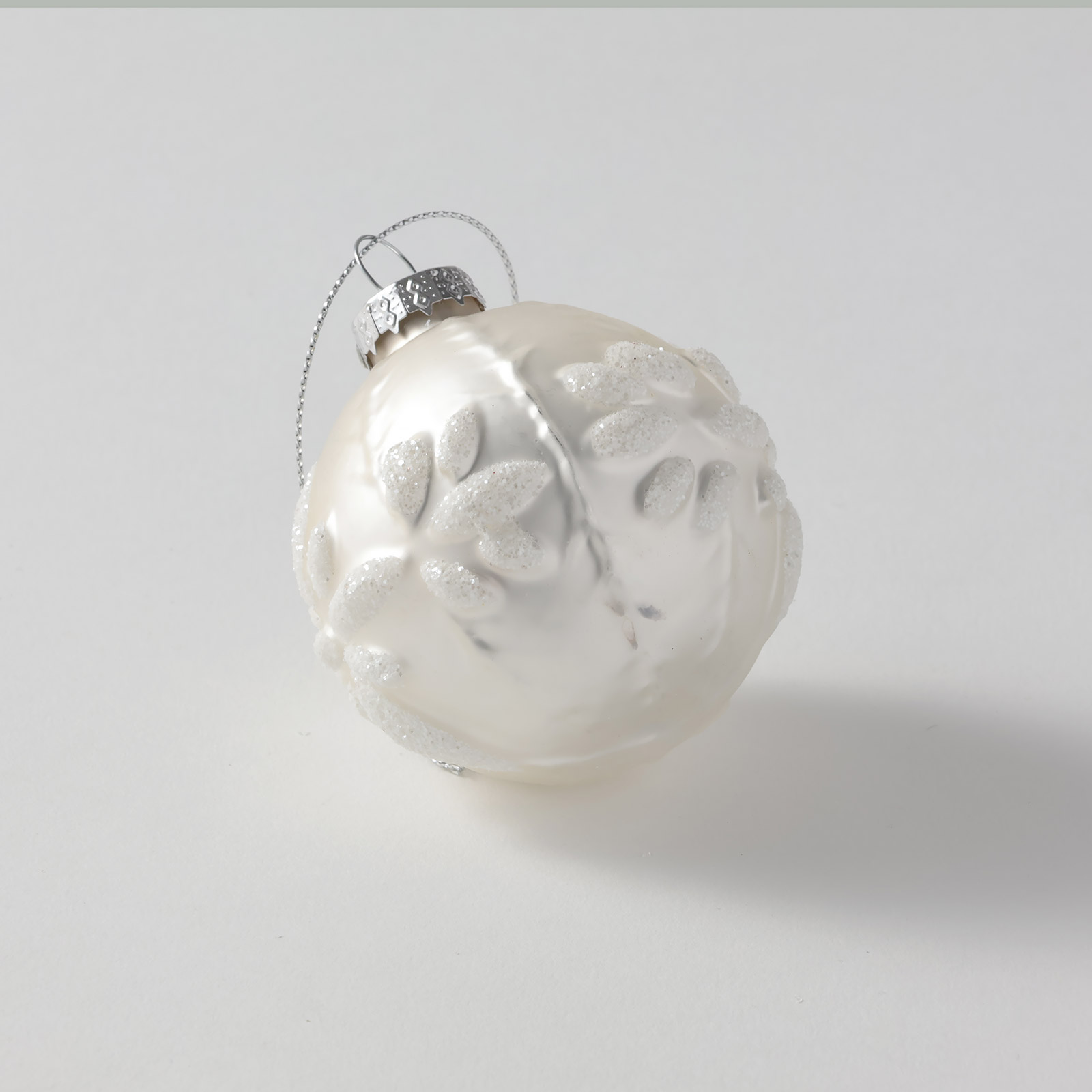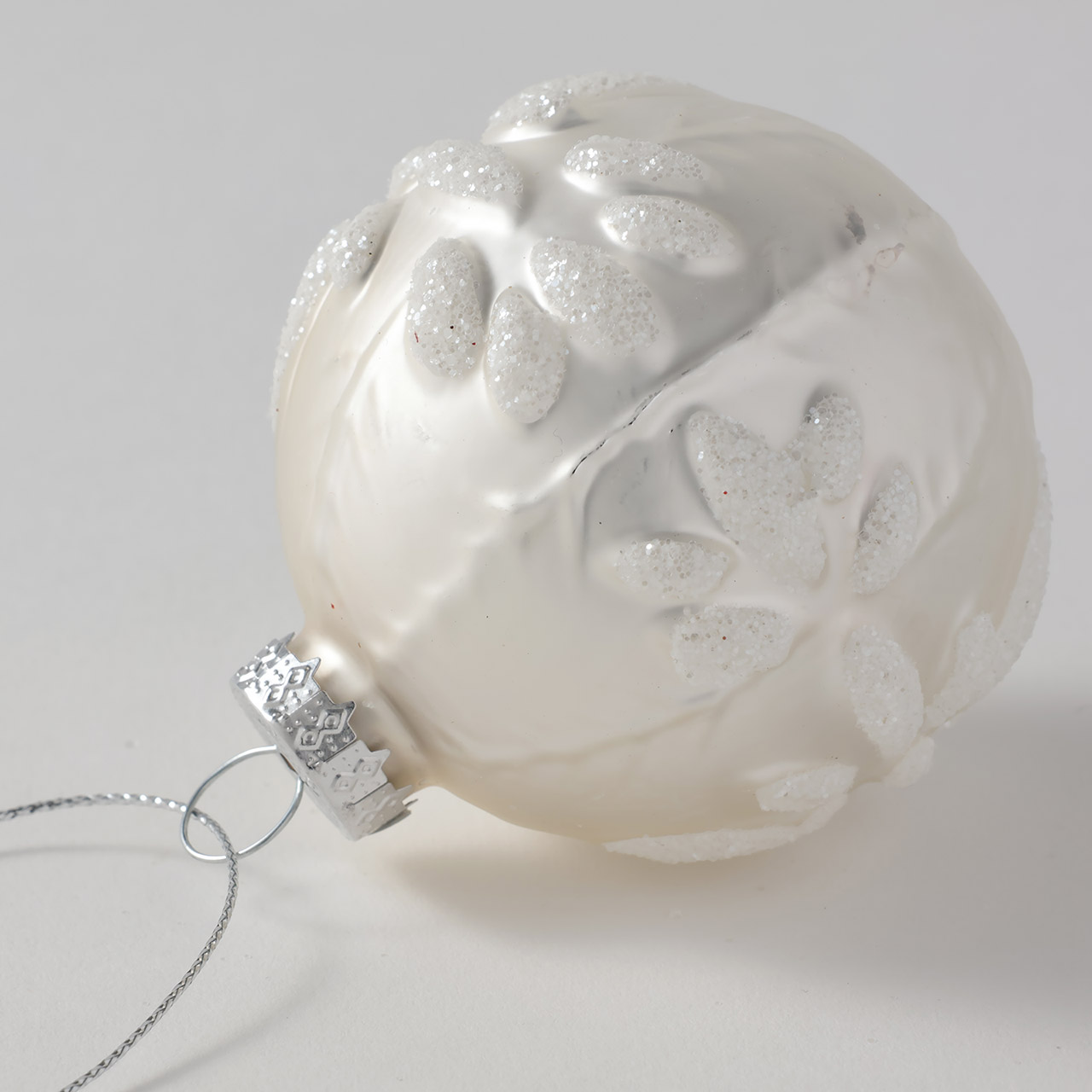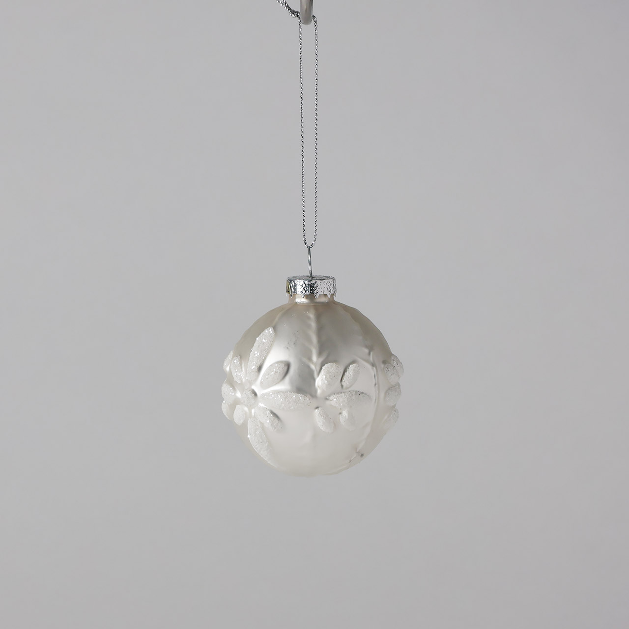 ガラスボール 銀/白フラワー6cm