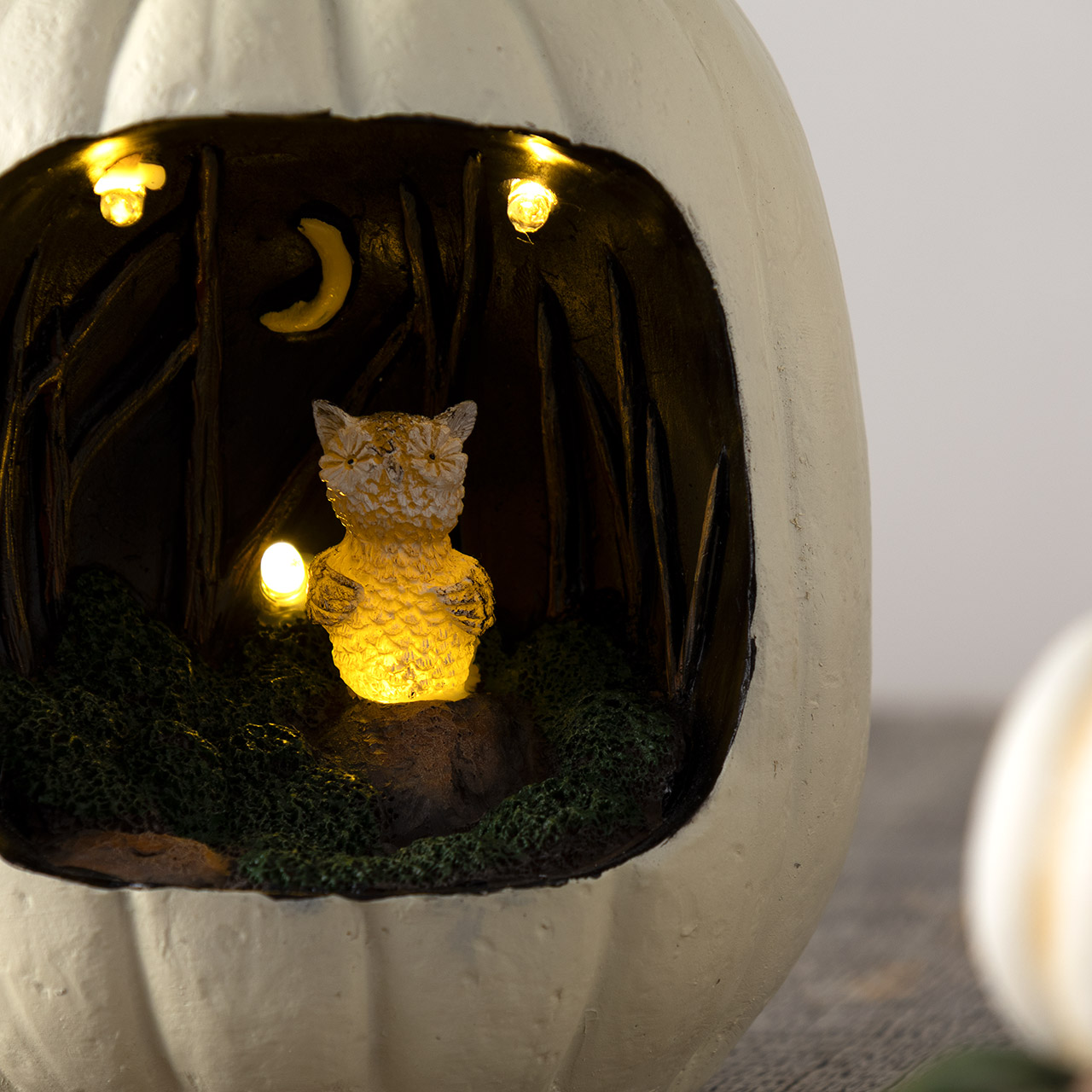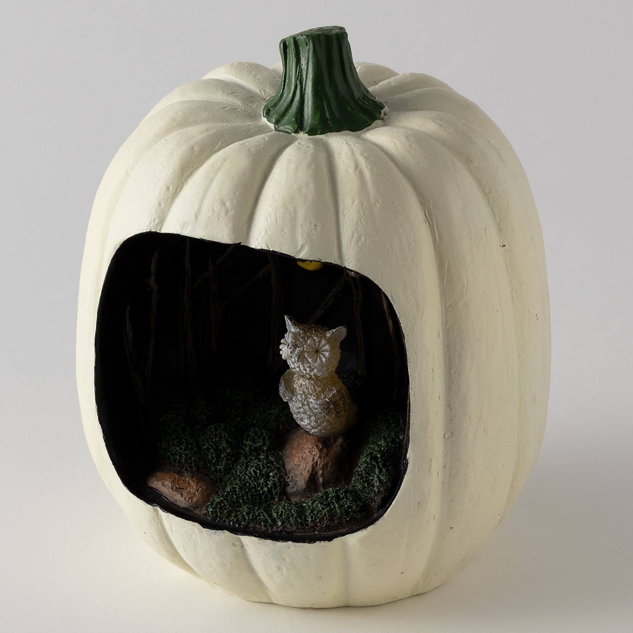 ハロウィン フクロウと月の白パンプキン