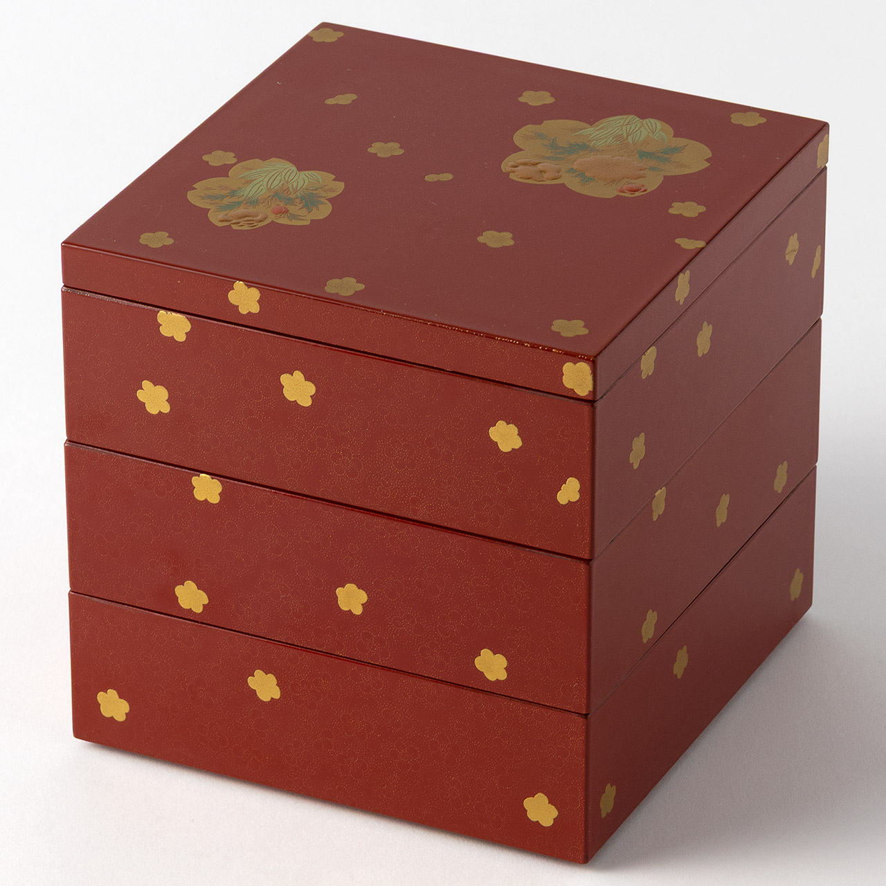 三段重箱 花友禅(朱)15×15