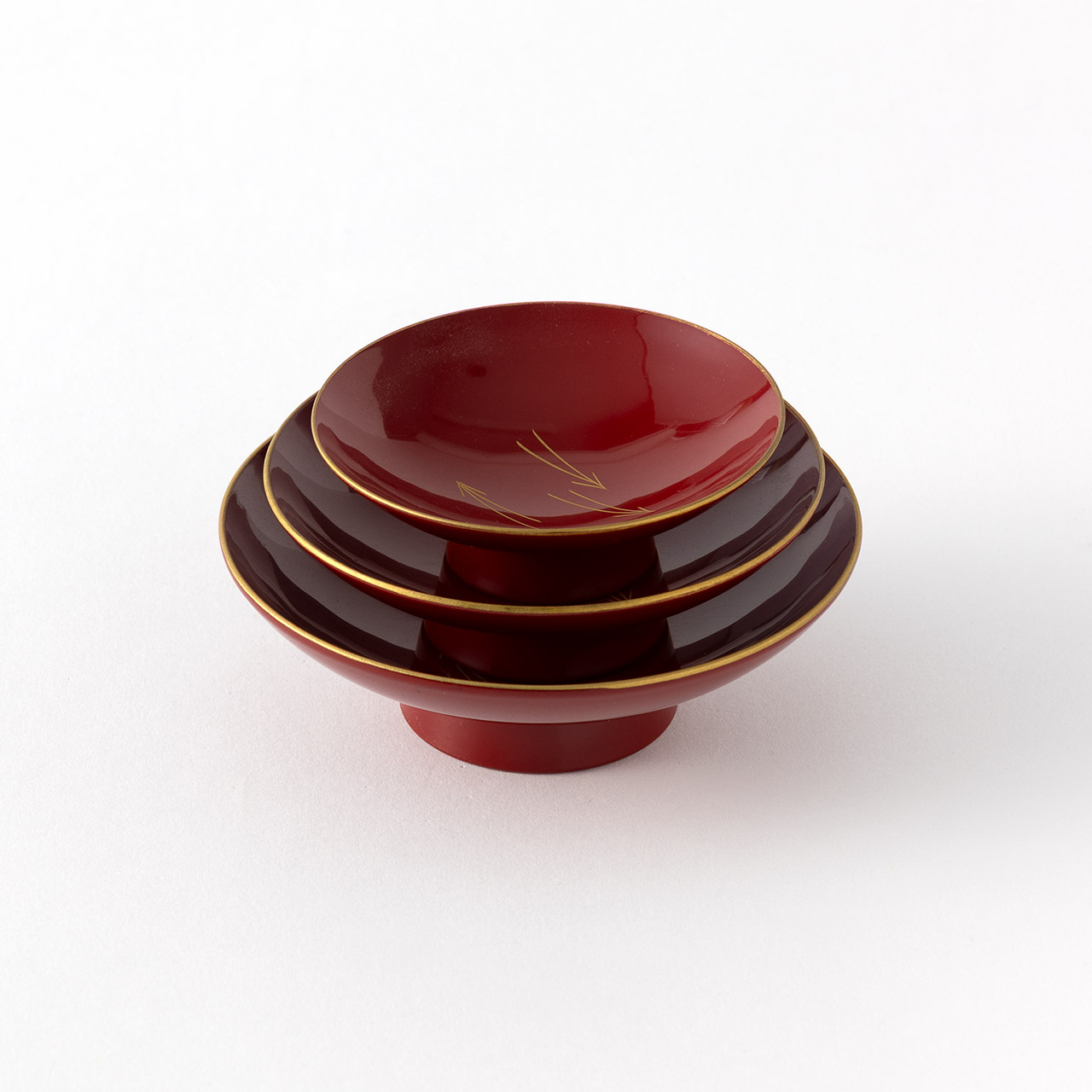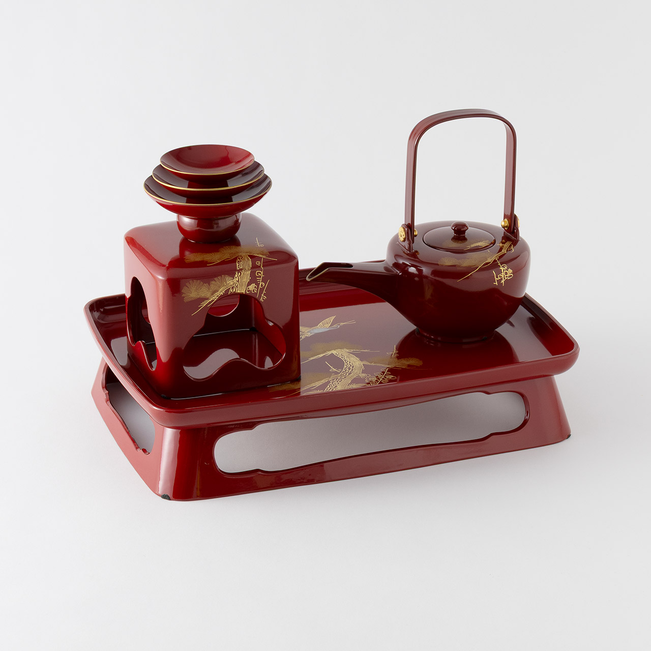 朱四つ揃屠蘇器松竹梅鶴沈金(盃)