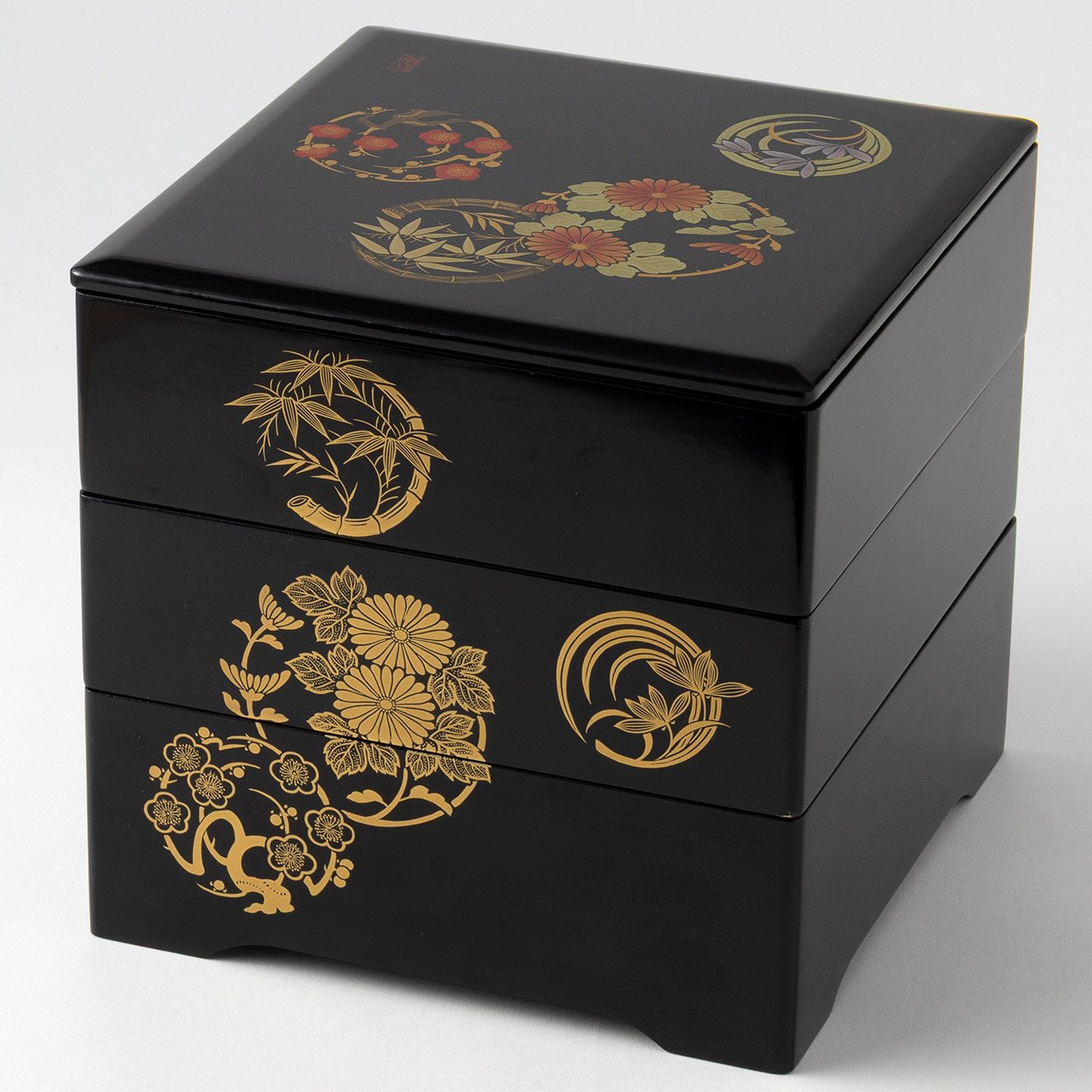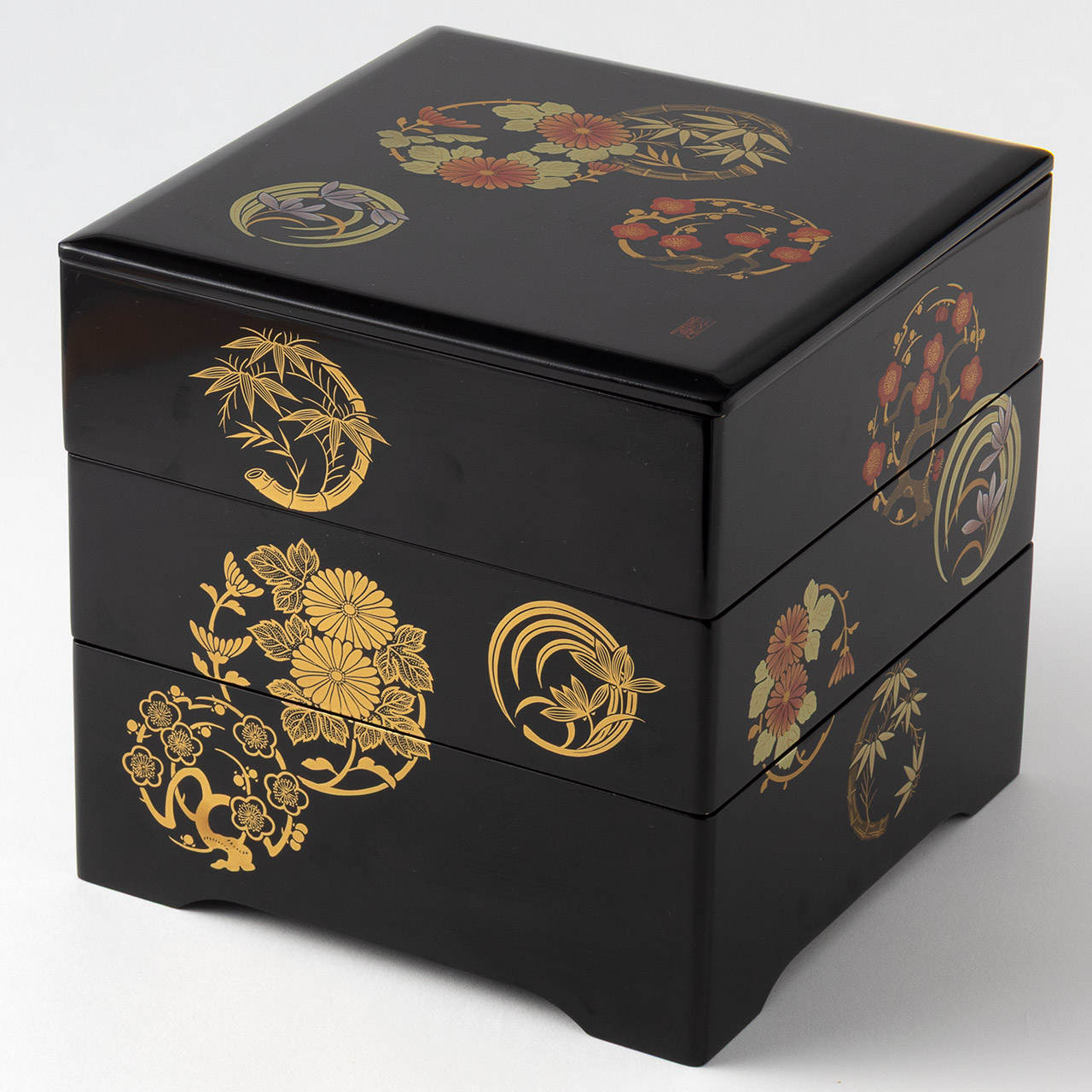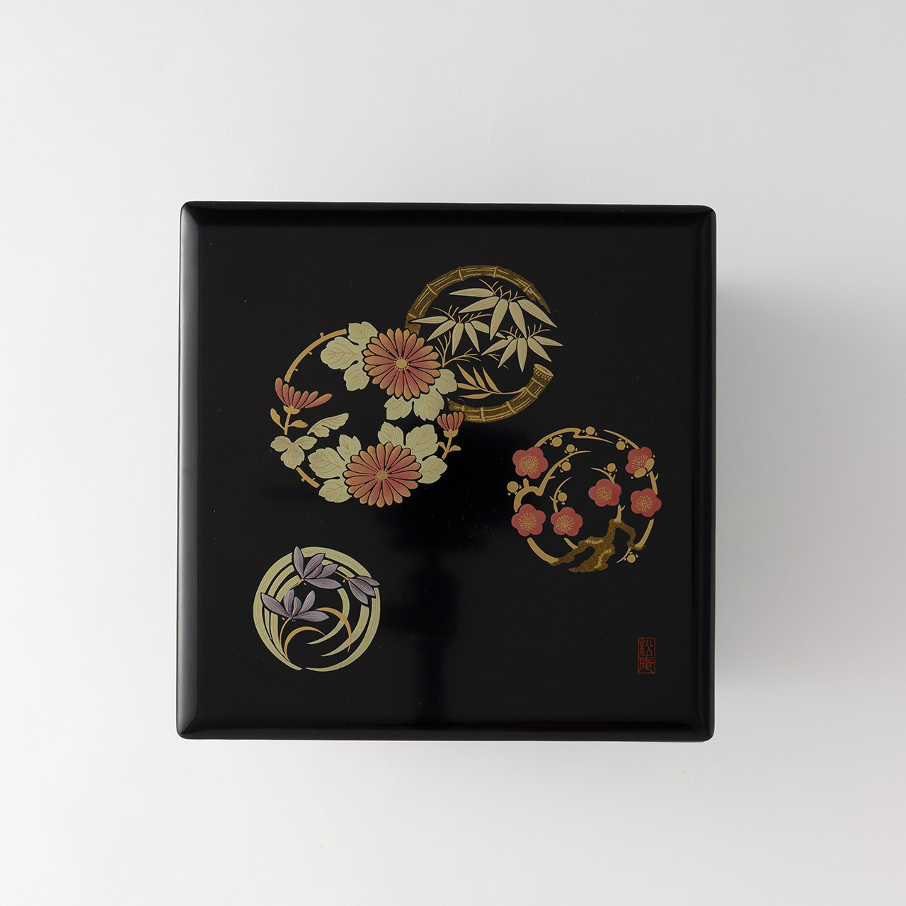 重箱花丸皿 君子 黒