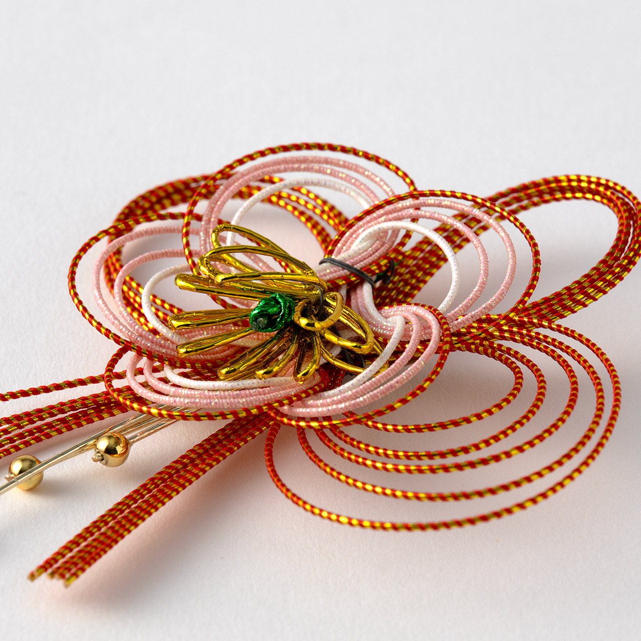 水引 金・赤ラメ花 センターグリーン