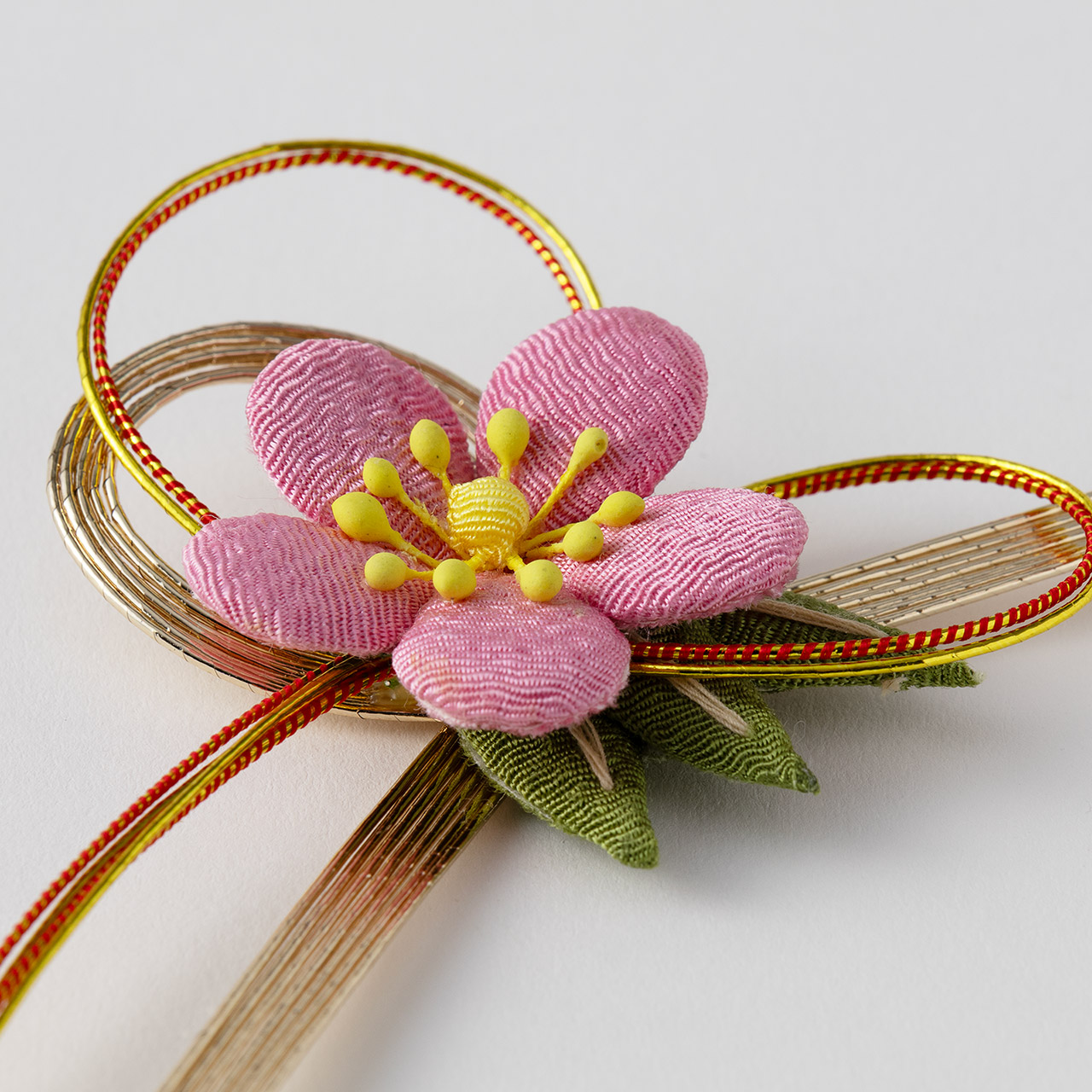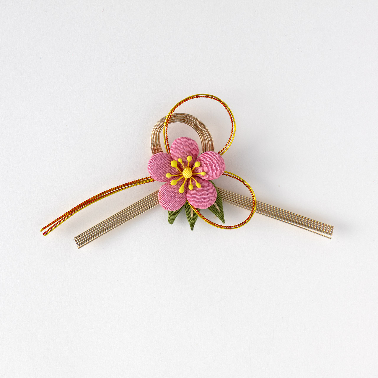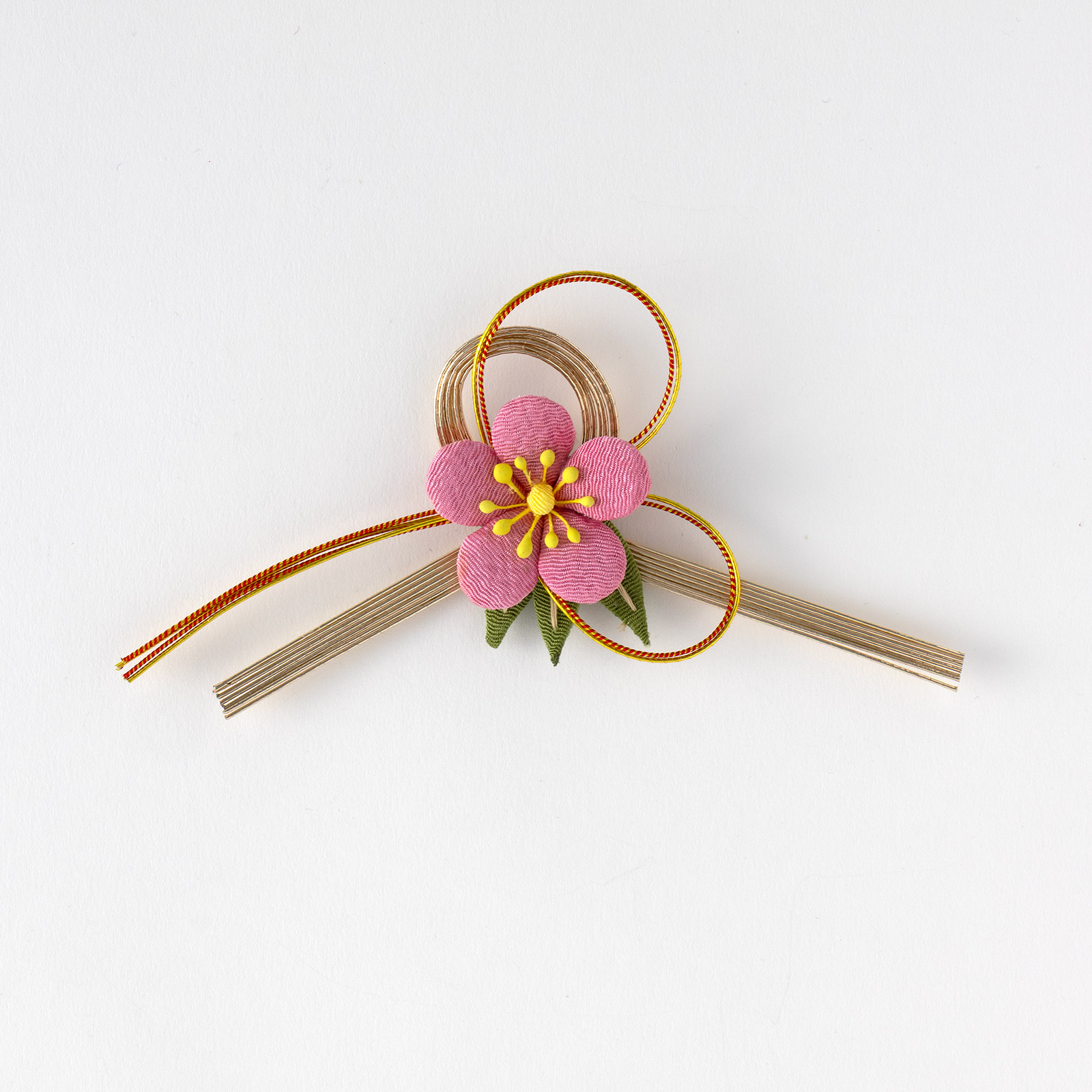 祝飾り ピンク花布 金/赤水引