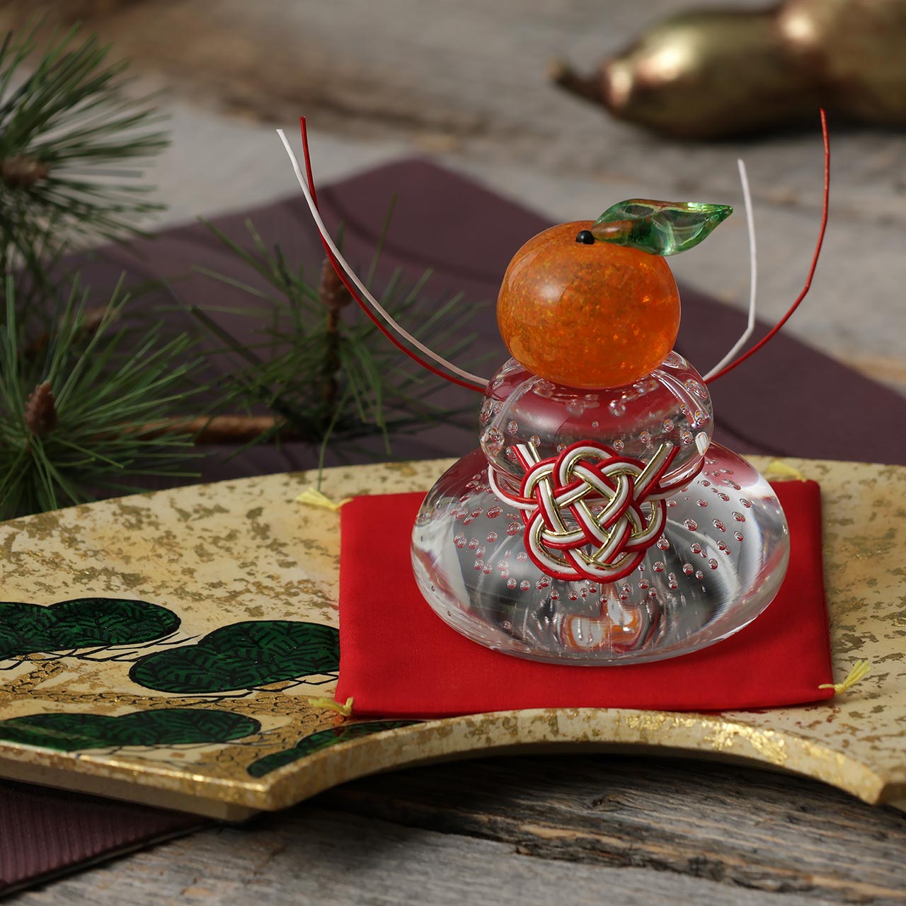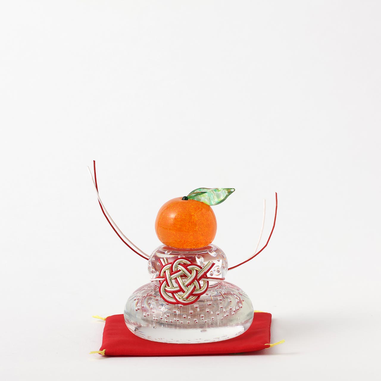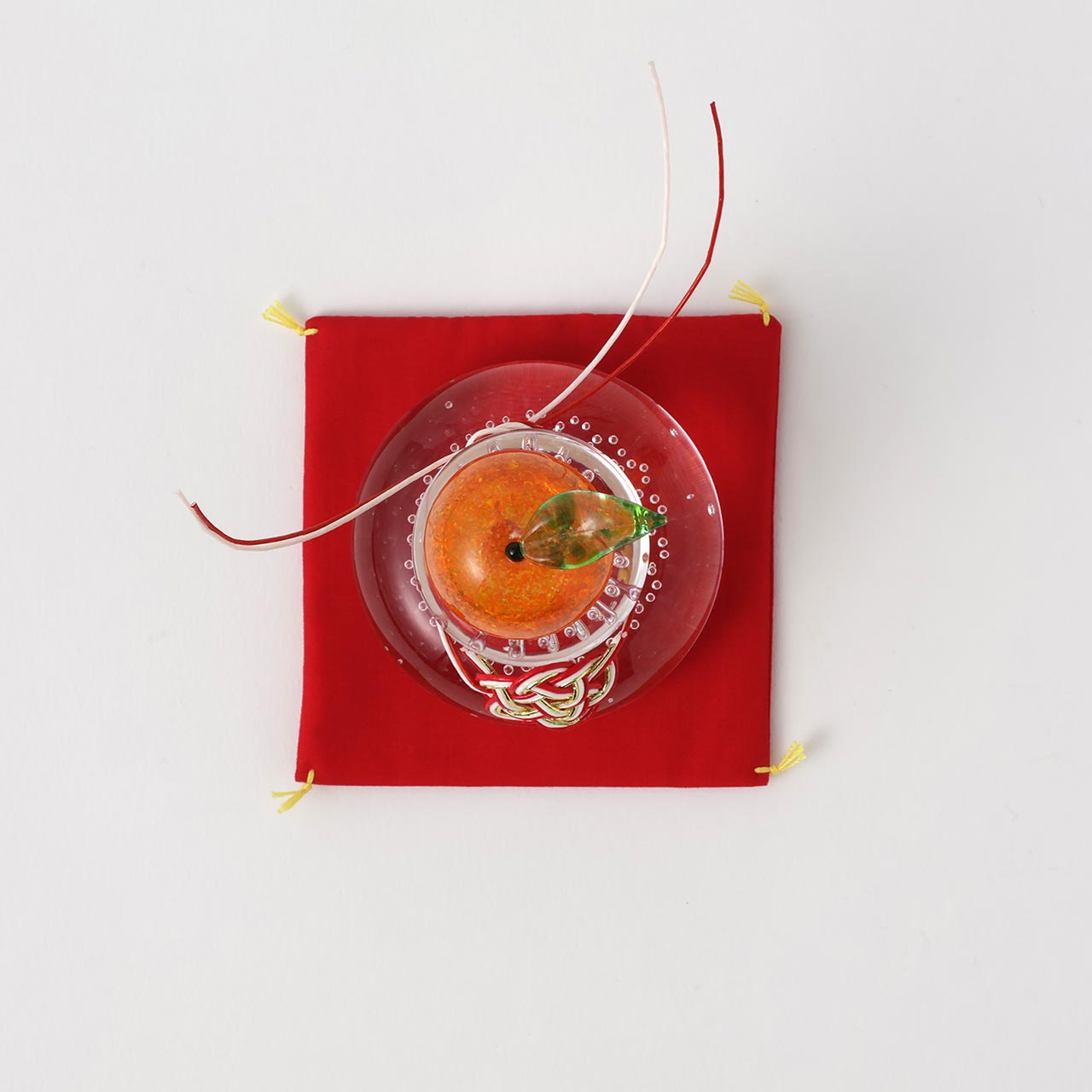 ガラス鏡餅福ぷく泡入り赤座布団