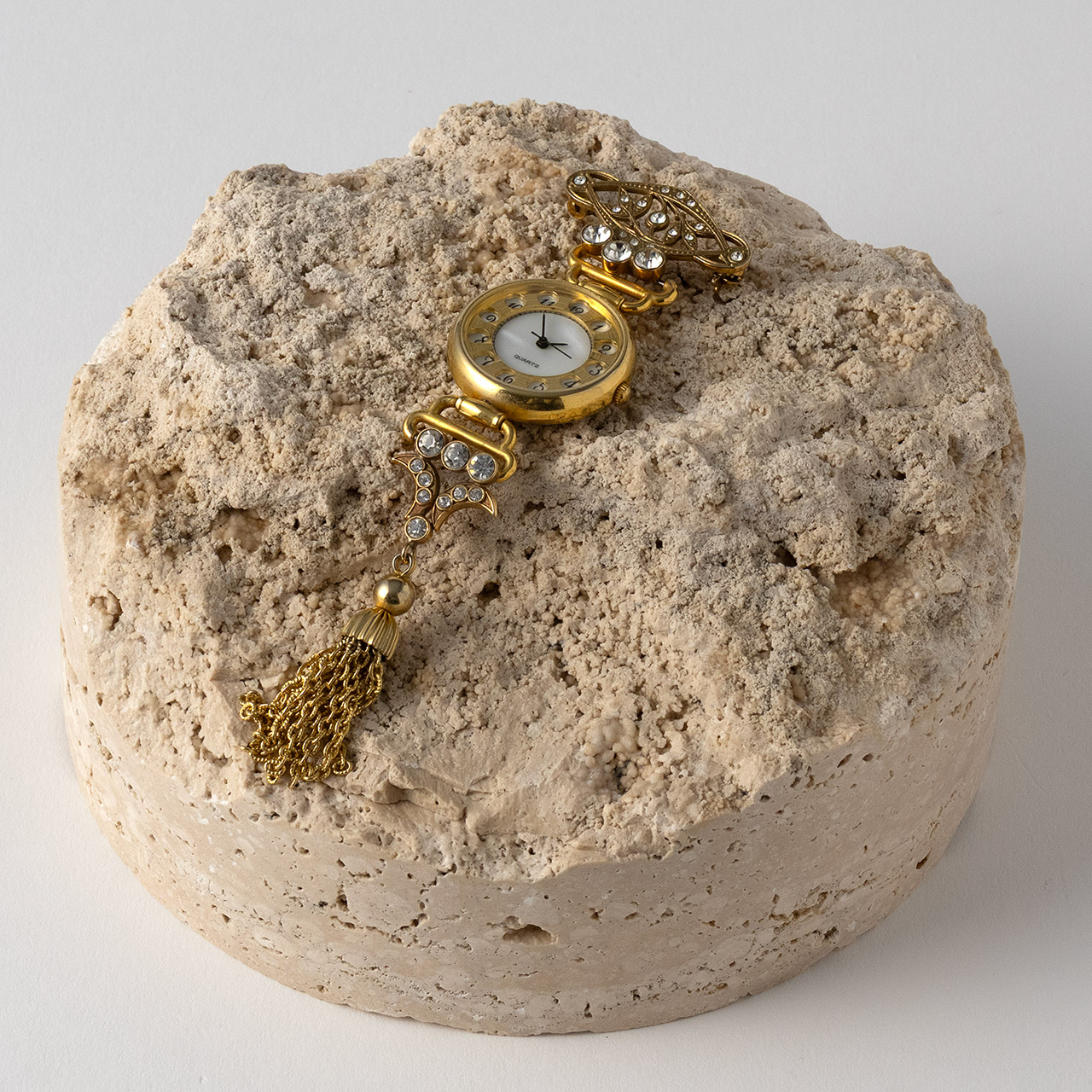 商品番号を示す金色のシールが貼付されていますが、撮影の妨げになる場合は自由に剥がしてください(剥がしたままご返却いただいて問題ございません)。