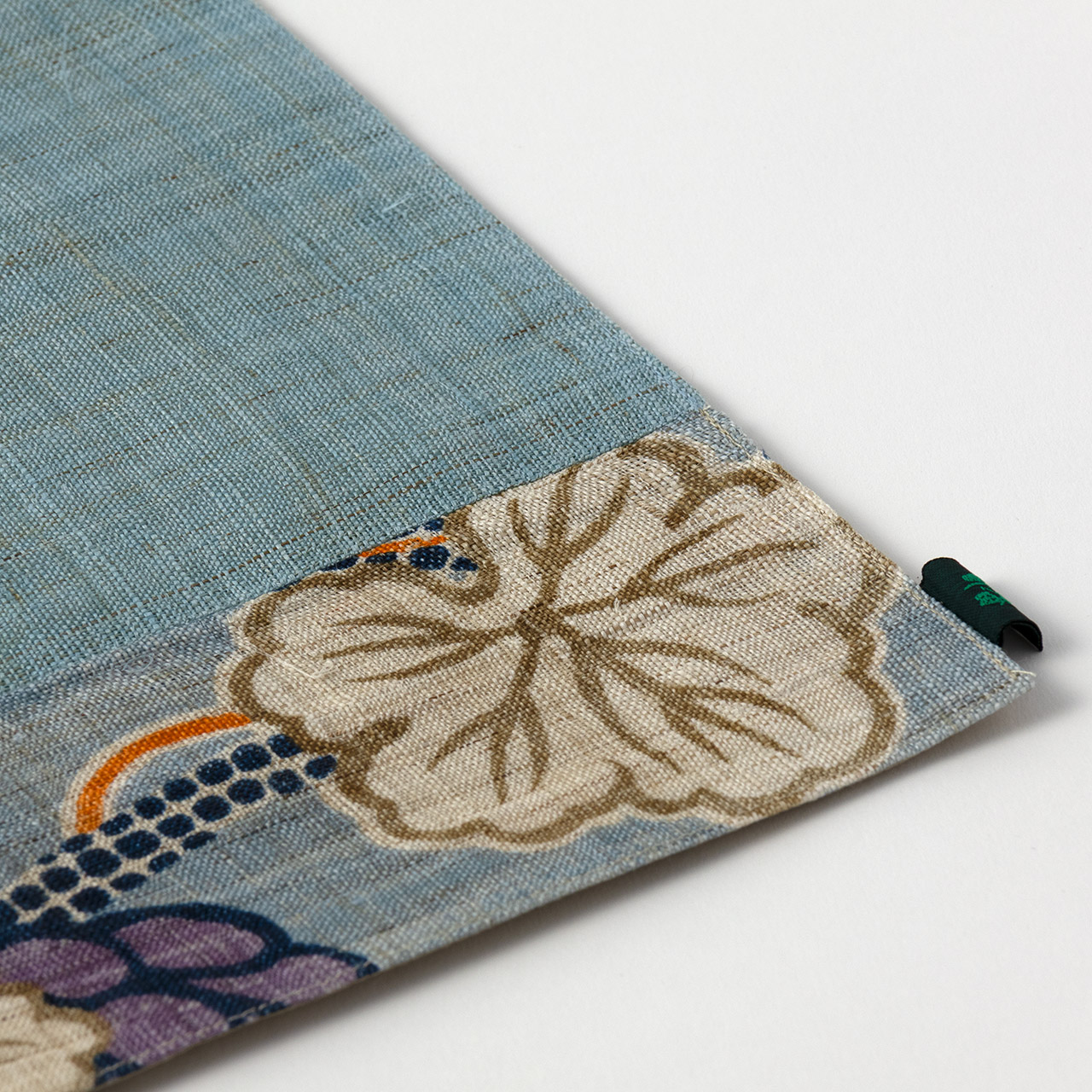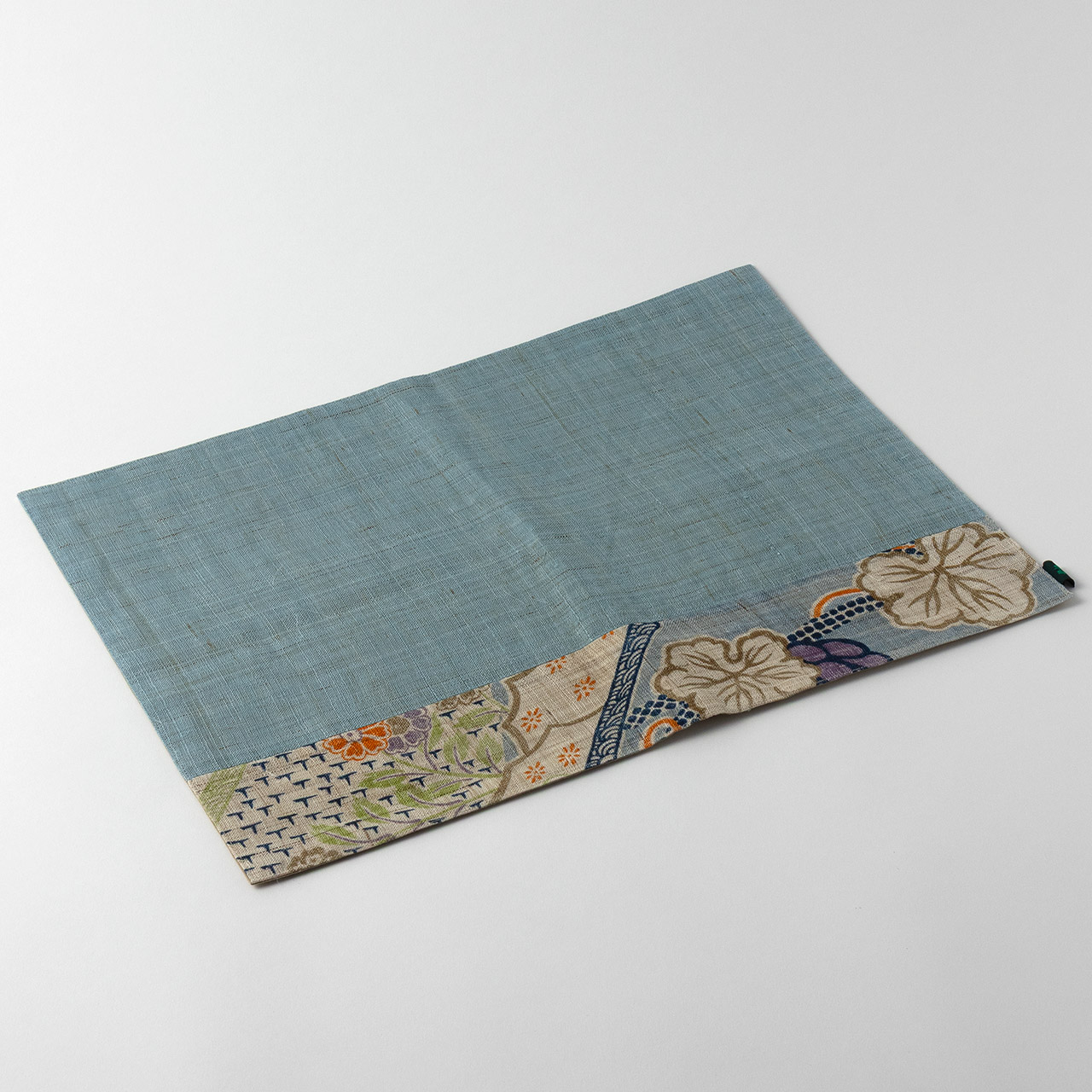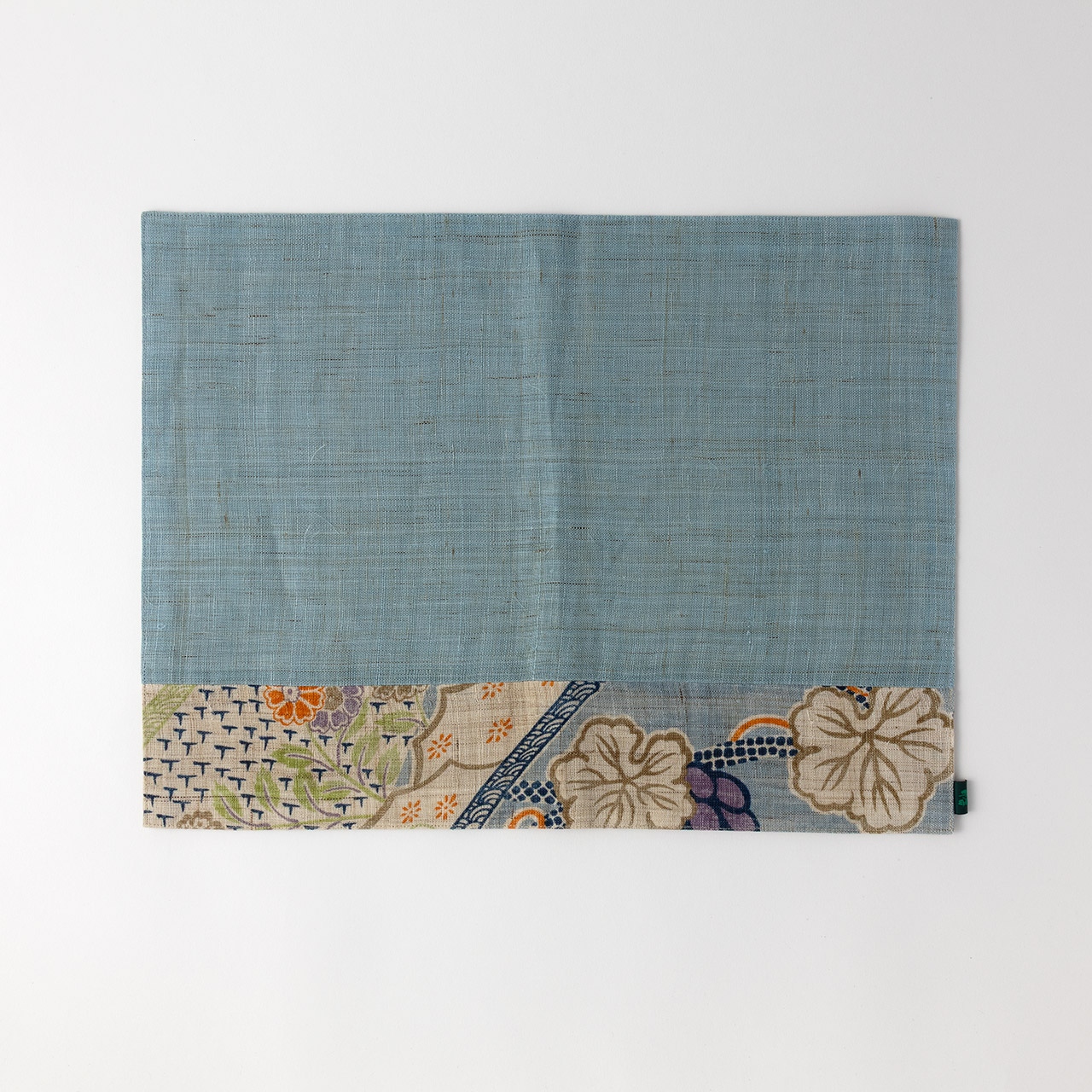 ランチョンマット 麻ブルー/花の帯