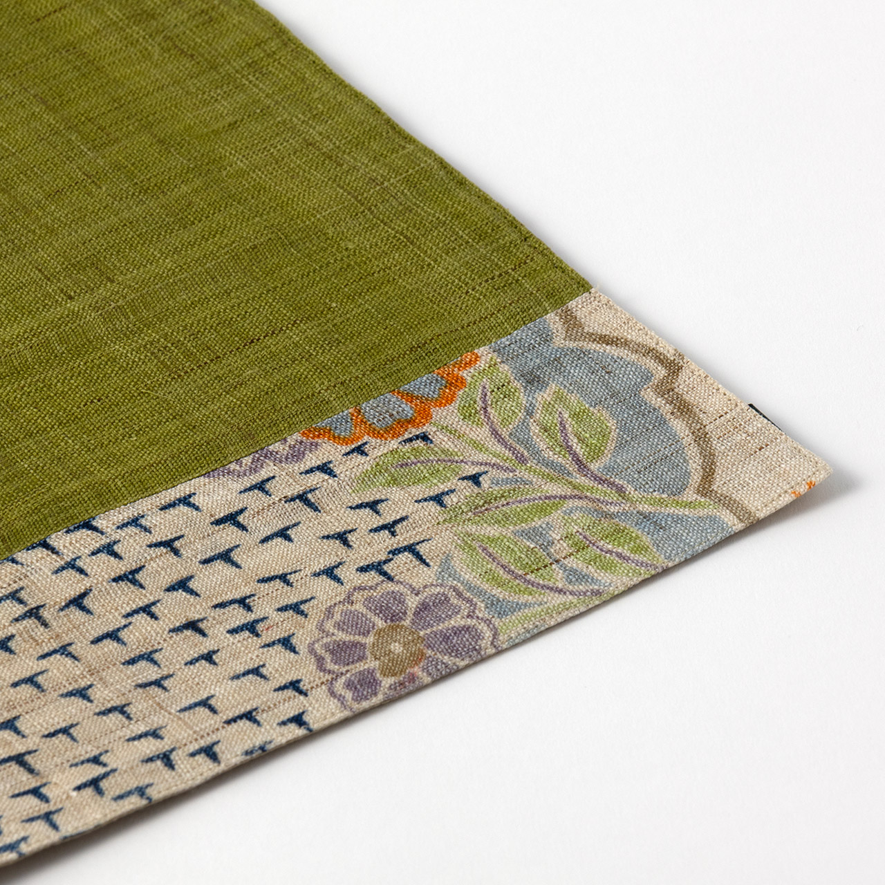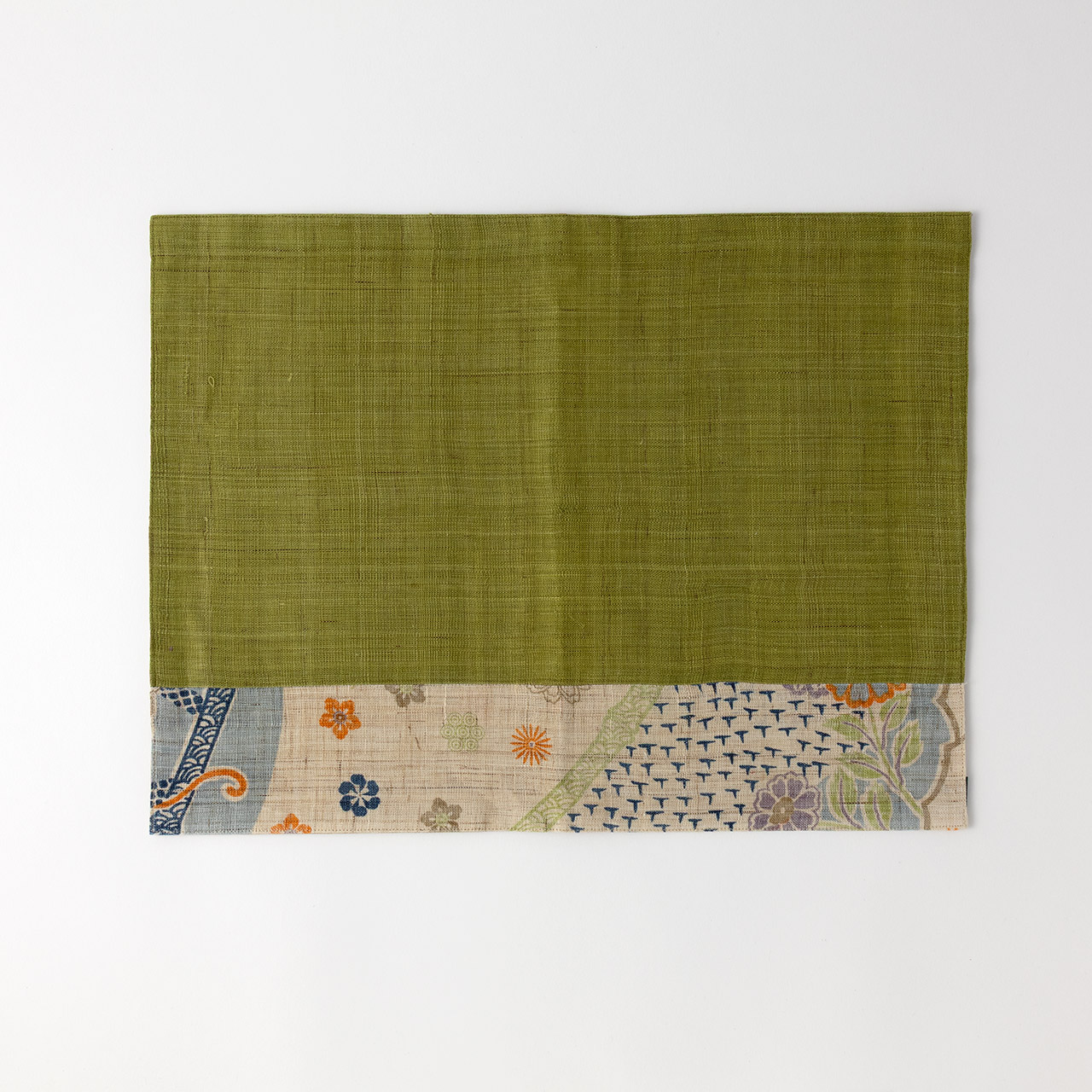 ランチョンマット 麻グリーン/花の帯