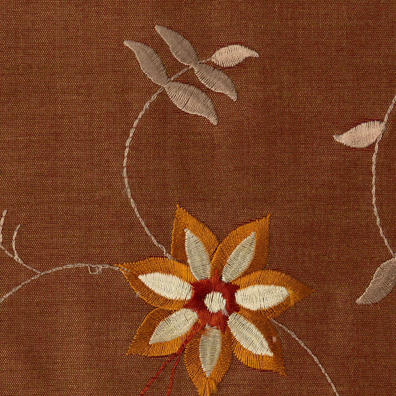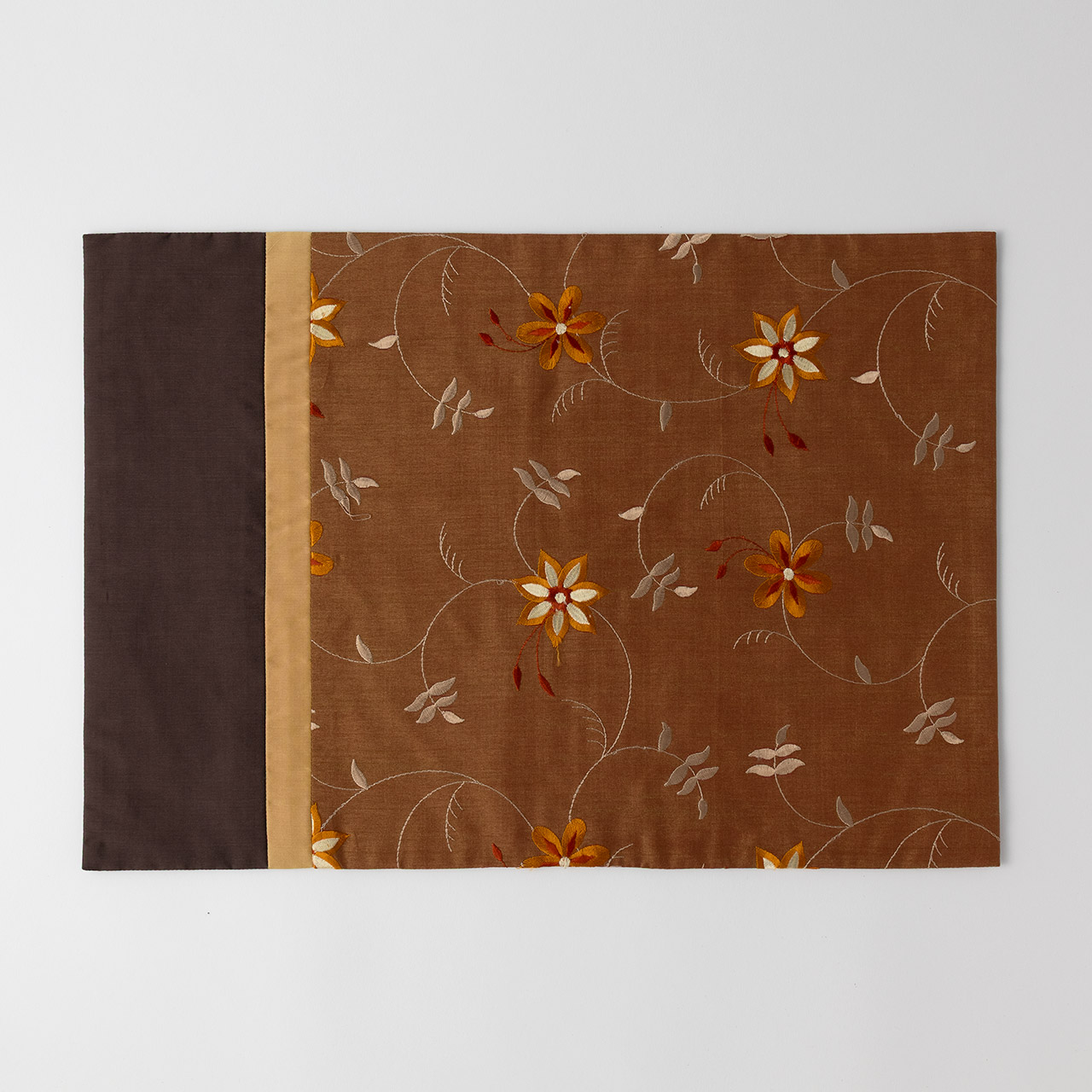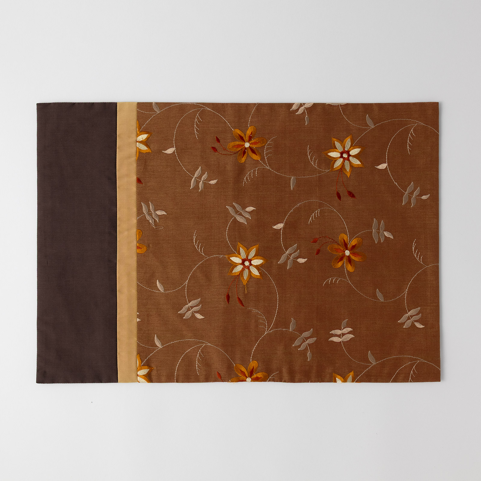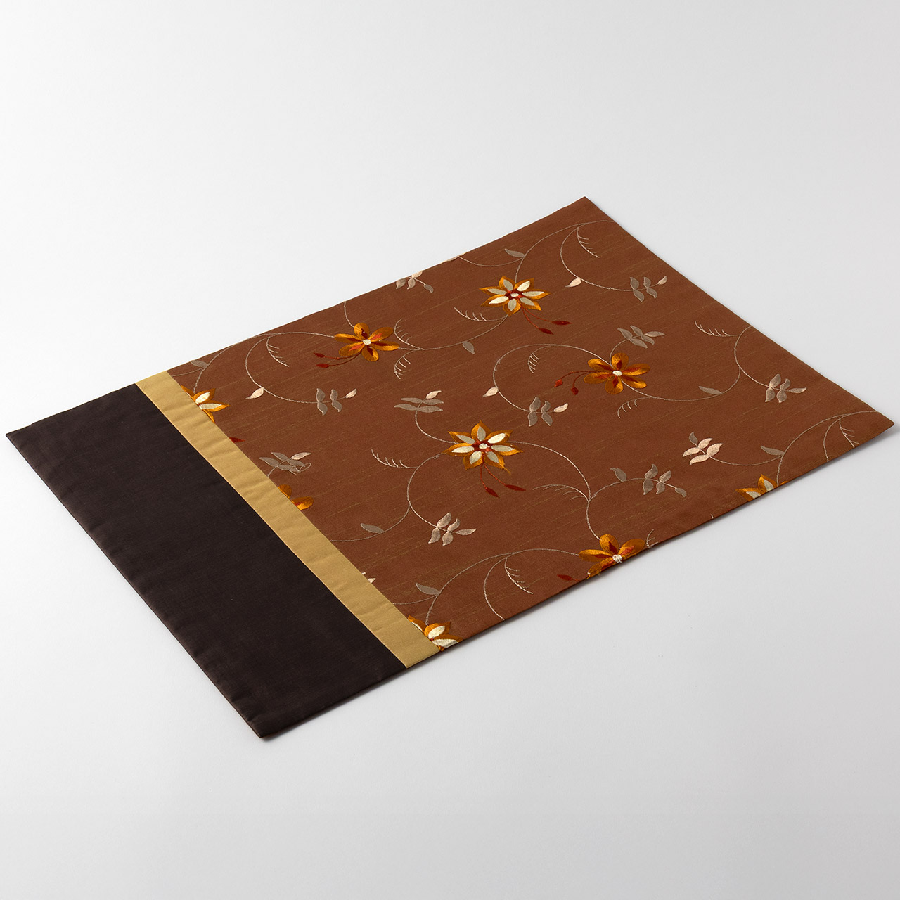 シルク 刺繍入りランチョンマット茶