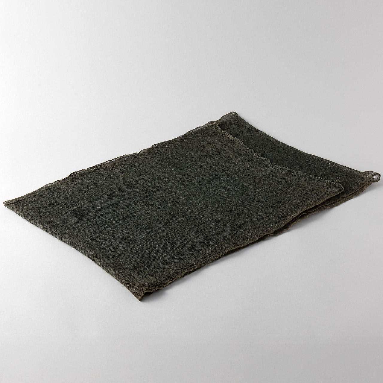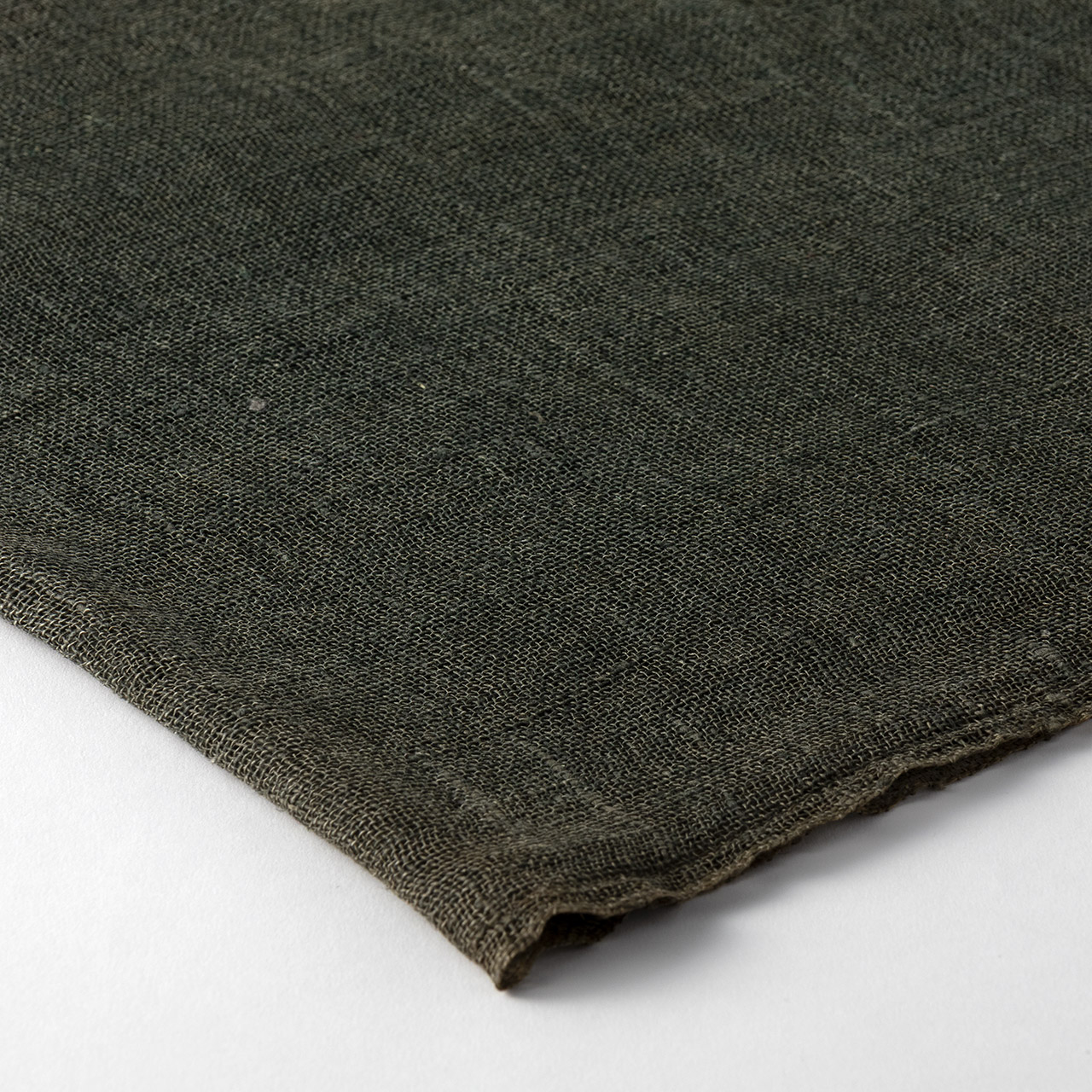 麻 テーブルランナー 深緑
