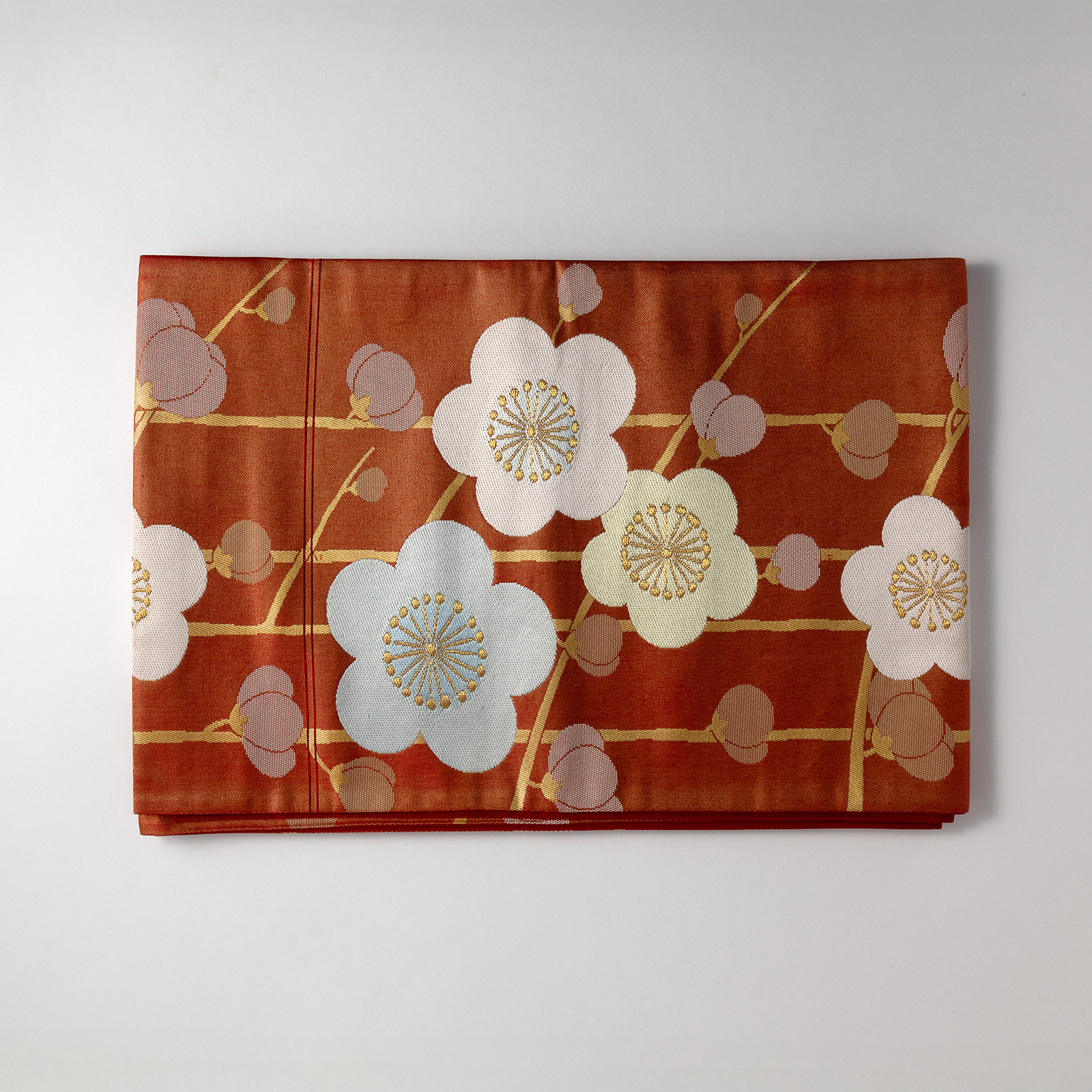 帯地ランナー 赤地 ブルー黄